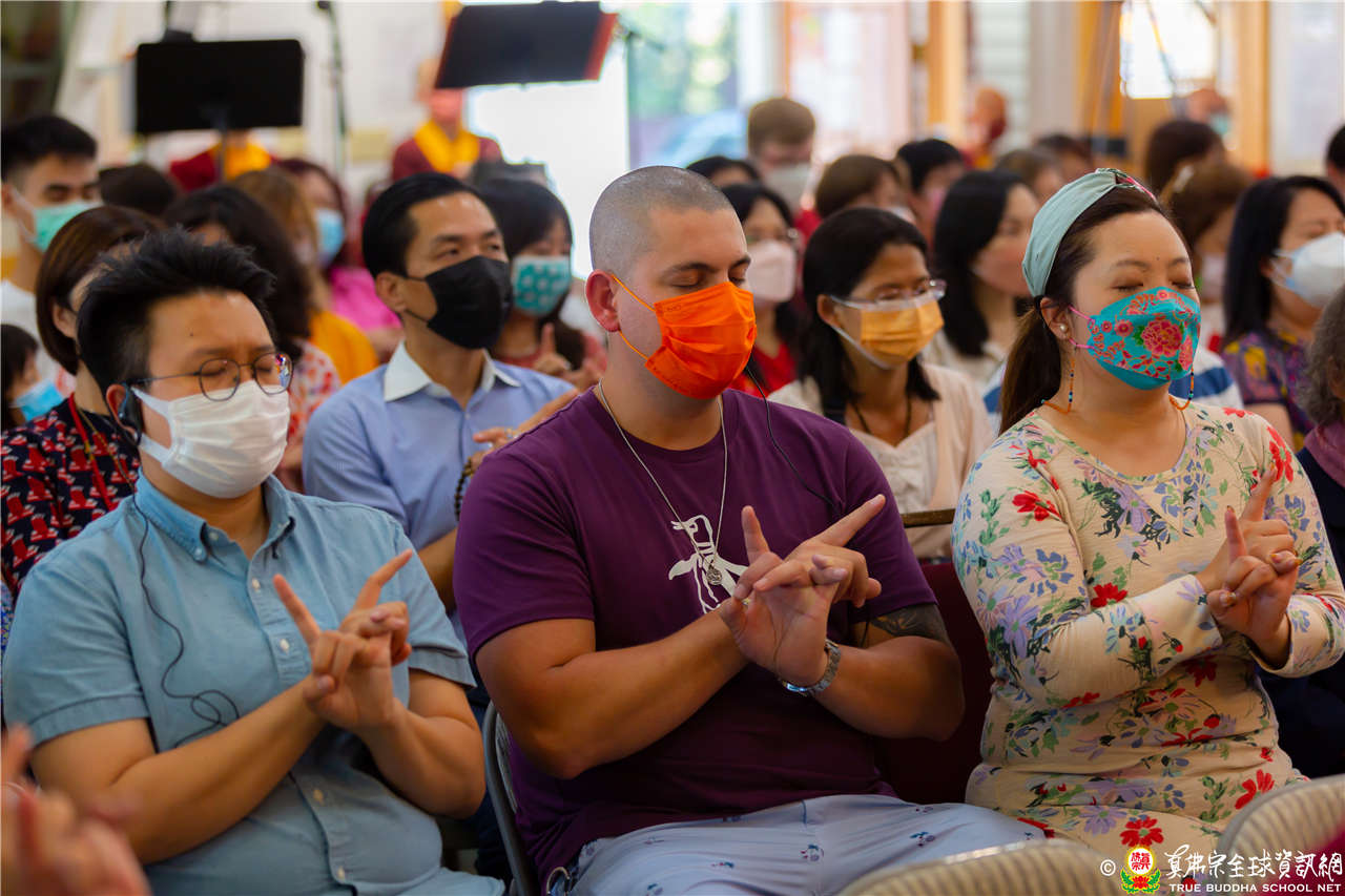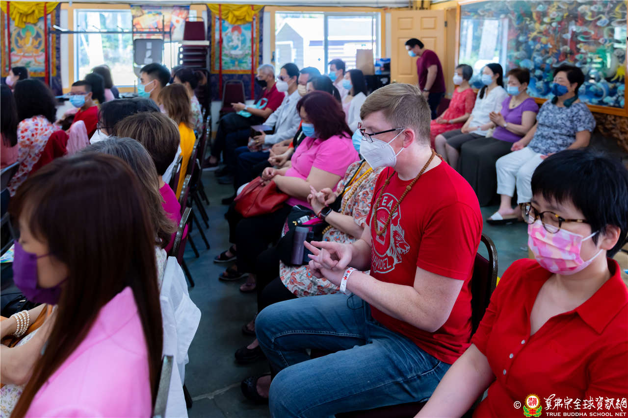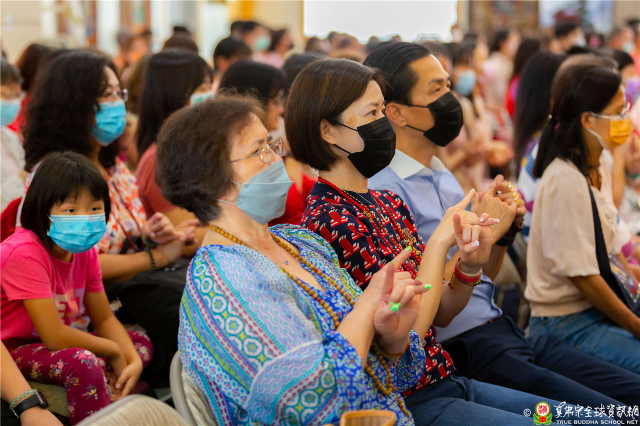 法王接著說,「眾生來到師尊這裏,師尊就是給他們甘露,給人家快樂,解決人家的苦,非常歡喜的做,而且平等無分別,這就是慈悲喜捨。這個『捨』,最重要,怨親平等。我們普施大眾,每個人都有佛性,都是平等的,這就是『法寶普照,而雨甘露』。」
