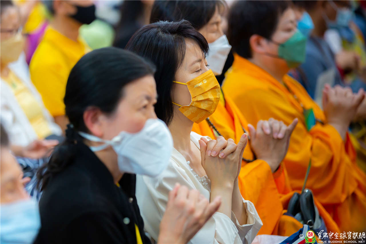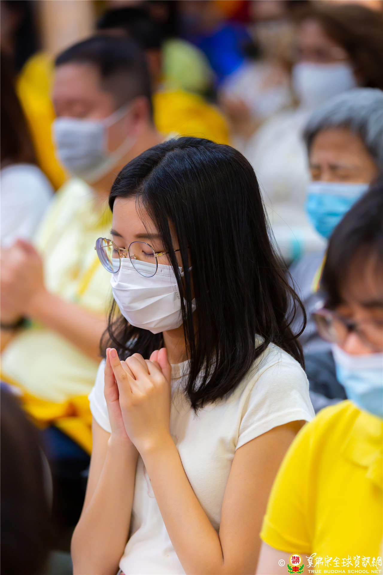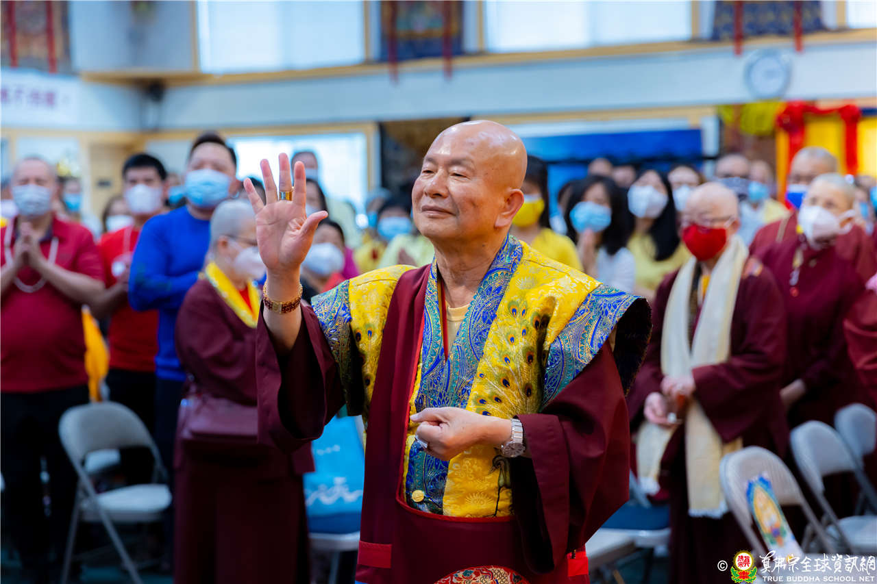 最後法王移駕到Zoom前接受弟子的感恩與祝福,弟子們紛紛在鏡頭前感謝法王。現場眾弟子接受法王的「孔雀明王」灌頂,法會圓滿結束。