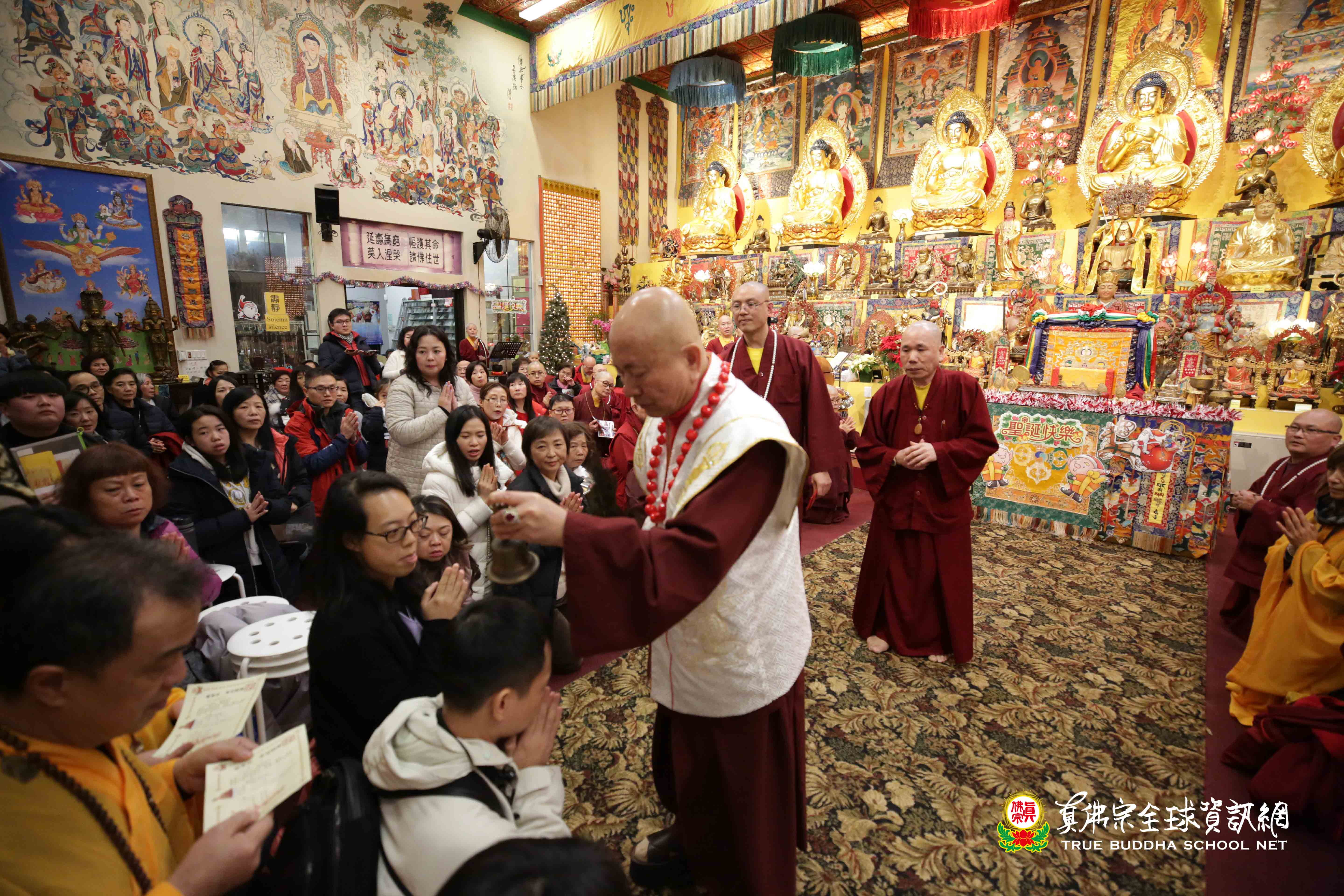 會後,師尊為求皈依的信眾賜授灌頂,並加持大悲咒水,以及開光佛像。臨行前還為雷藏寺裡所有的信眾一一摩頂加持滿願。感謝聖尊再次的法語教示,弟子深深明白,若修行要能有成就,一定要視師如佛才能得到佛的加持,行住坐臥皆不離根本上師,如此才能堅固屹立不動搖。一心頂禮大恩根本傳承上師。