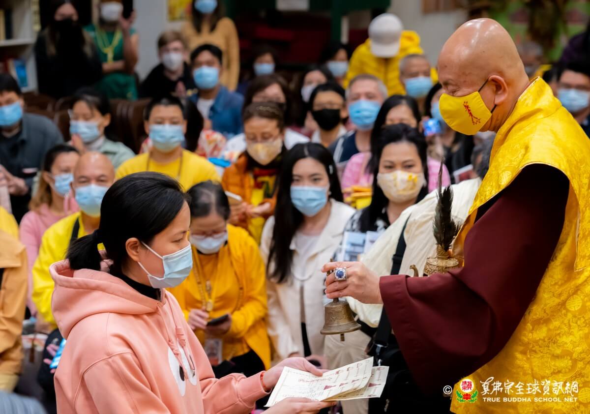 在精闢寶貴的法語開示結束後,聖尊慈悲為新皈依弟子做皈依灌頂並加持大悲咒水、開光佛像、加持眾弟子。圓滿結束了今晚的同修活動。