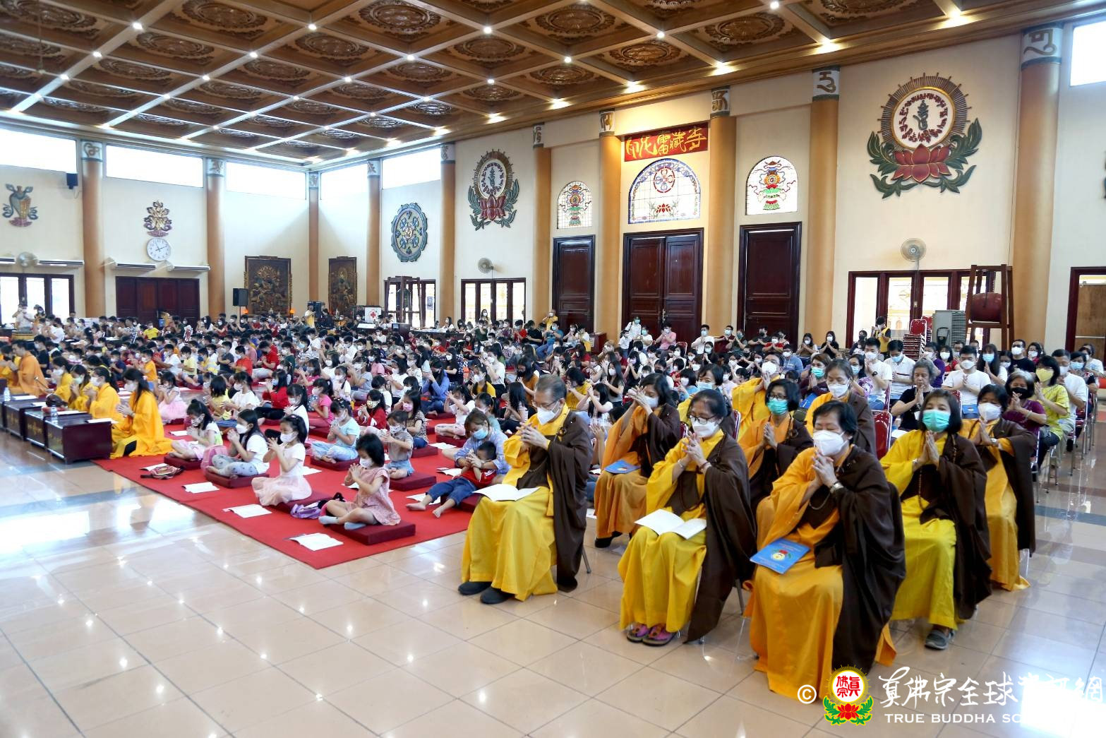 2022年10月16日印尼雷藏寺大殿聚集了青少年班真佛弟子,這是疫情緩解後第一次大活動,從小學到初中,再加上來寺裡共修的信眾,把真佛殿坐得滿滿的,只為了參加供僧大會。