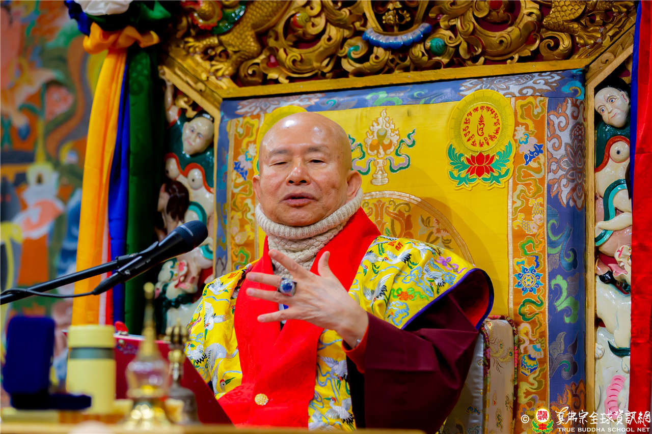 解答弟子的提問後,法王繼續講解【維摩詰經】中的「金髻菩薩、珠髻菩薩、彌勒菩薩、文殊師利法王子菩薩,如是等三萬二千人。」