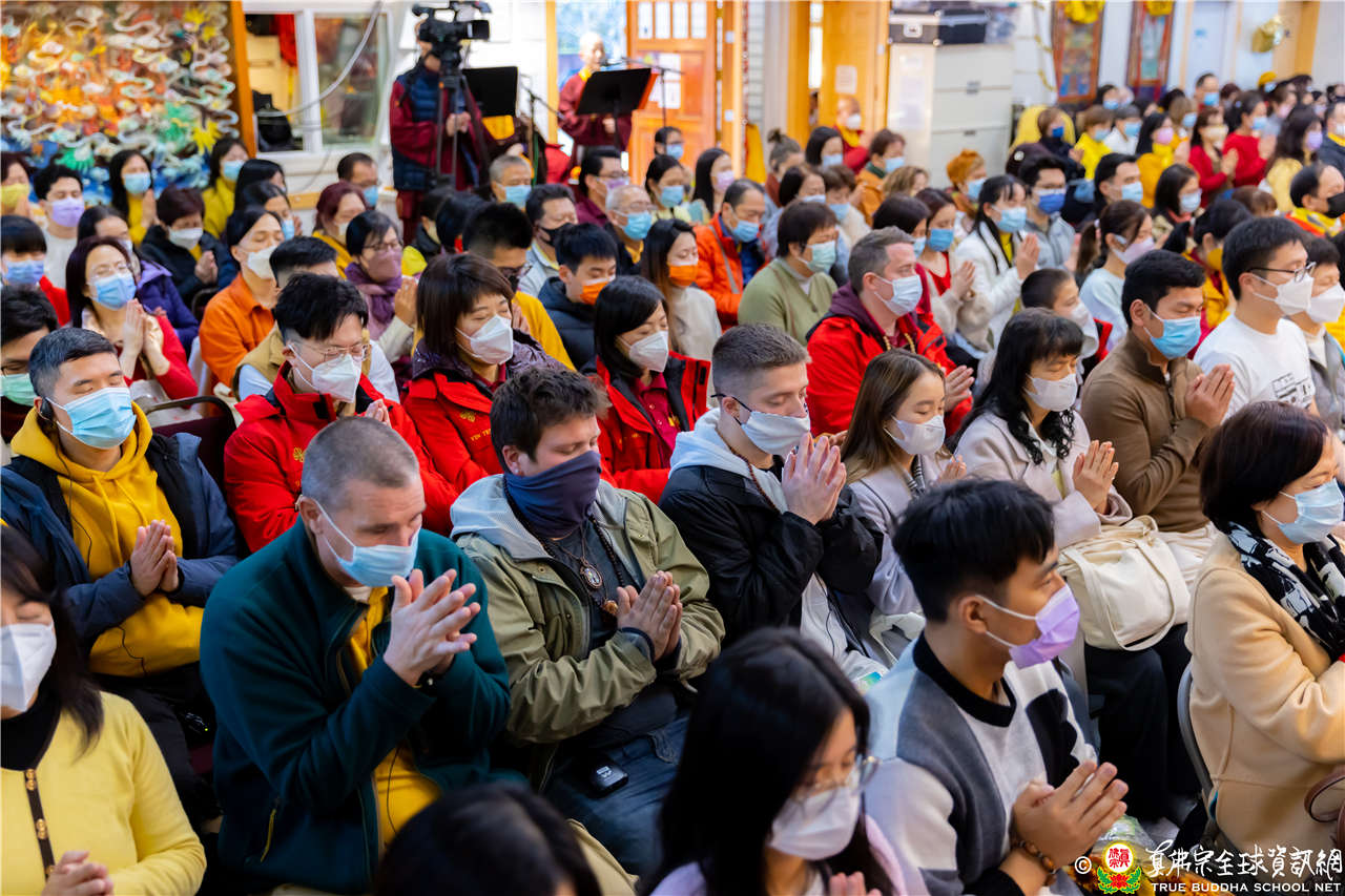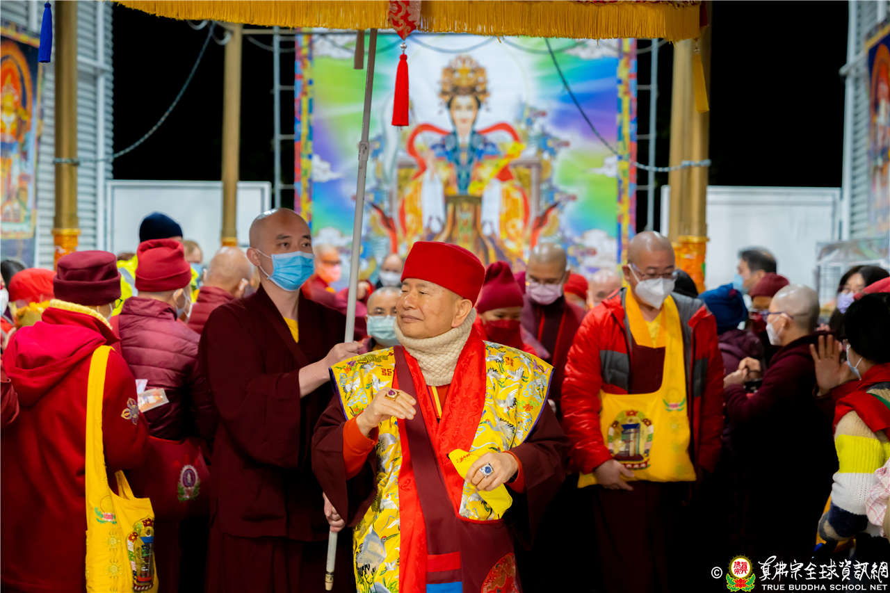 法王也讚歎十方同修會供養的天女型瑤池金母雕刻得非常美麗細緻、年輕莊嚴。每次頂禮祂時都除了感到莫名感動,同時也肅然起敬,仔細一看彷彿變成活的。法王曾說若無瑤池金母,就沒有盧師尊,也不會有真佛宗,大家也不會在這裡。因此,真佛宗與瑤池金母緣份甚深。同時,法王表示因即將返回台灣,這次是今年在彩虹雷藏寺的最後一場佛法開示。