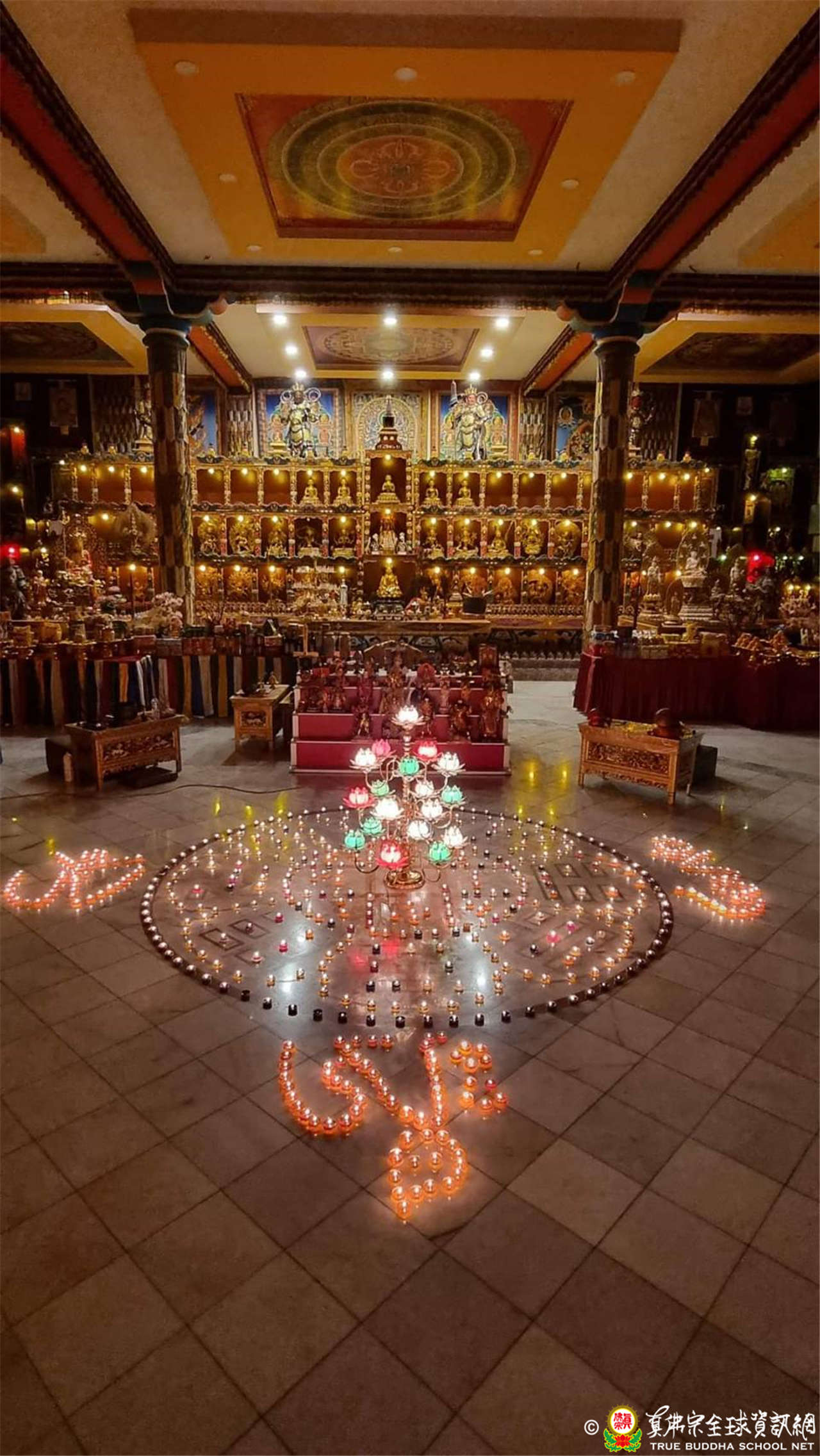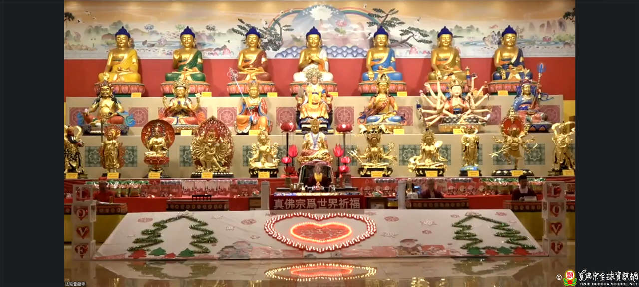 參與的道場並以愛心圖案點燈為世界祈福,希望這份愛心與咒力,讓這世界有多一點光明、驅散黑暗。秉持著真佛宗根本傳承上師教導的菩提大愛,宇宙的大光明海與燈火互相交融、真佛宗同門以共同的念力同修,咒音遍佈了全球角落。