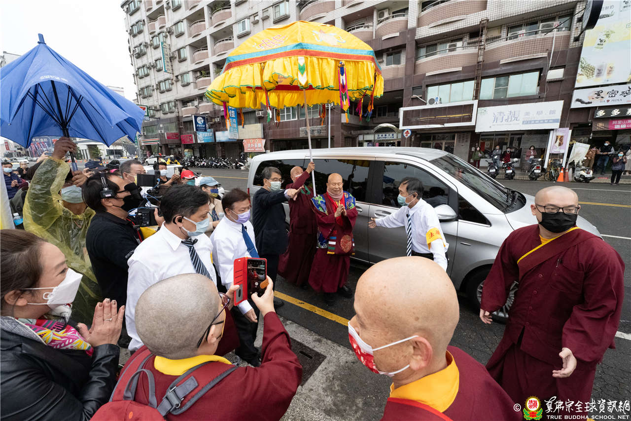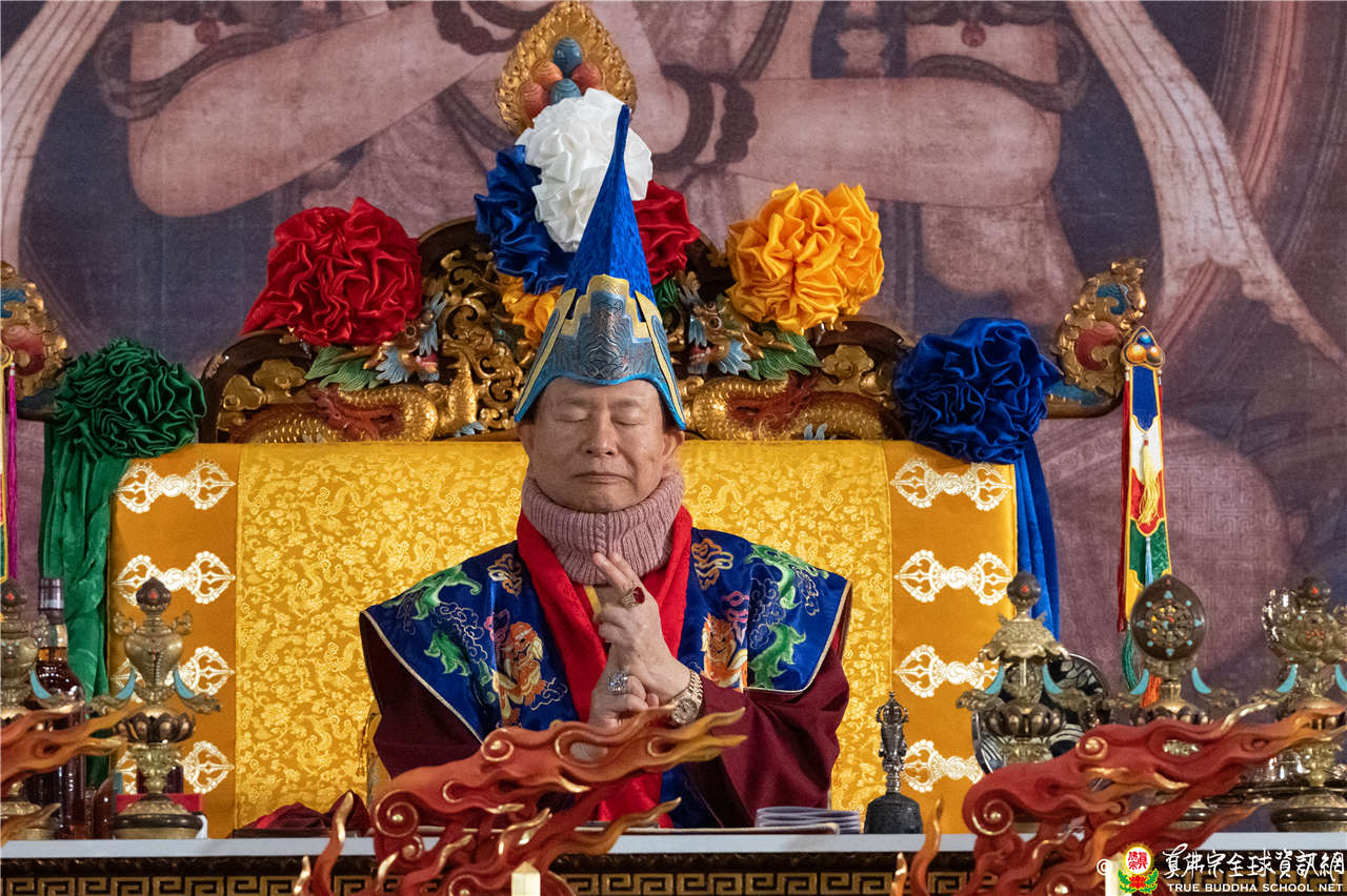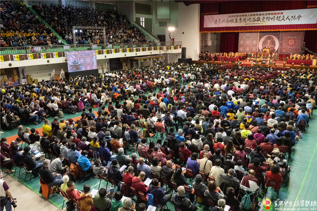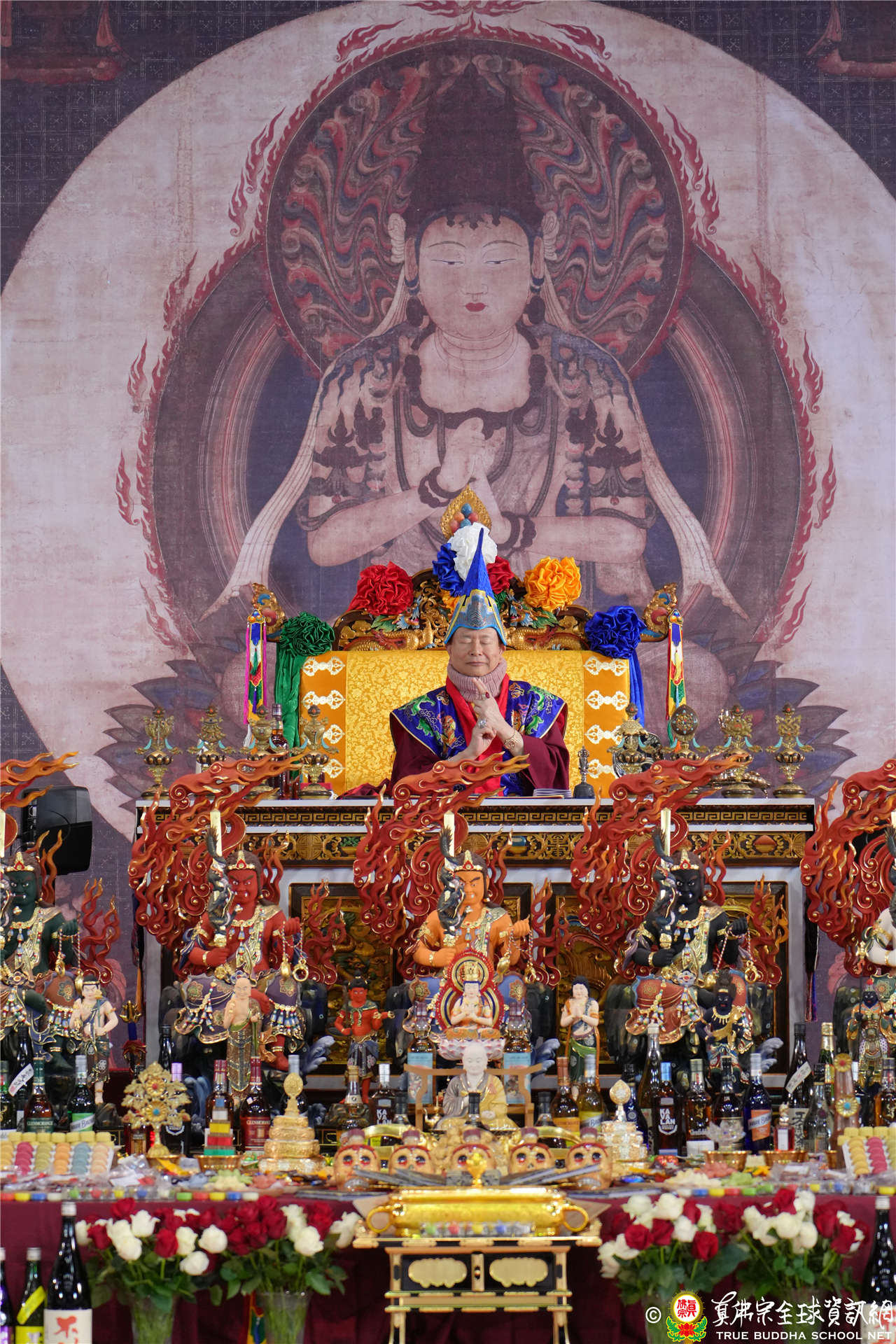 2023年元旦,人人歡喜迎接新一年的來臨。在這人人普慶的一天,台灣嘉義市真佛宗法華堂恭請蓮生法王到嘉義市立港坪運動中心體育館主持「五色不動明王息災增益敬愛除障超度大法會」,首傳「五色不動明王不共大法」。法會現場莊嚴殊勝,台上除了有巨幅的大日如來唐卡,更有金剛界曼荼羅及胎藏界曼荼法相圖。原來「不動明王」是八大明王首座,也是金胎兩部部主「大日如來」的變化身及教令輪。下午兩點,法會開始,大會迎師組恭迎蓮生法王入道場。