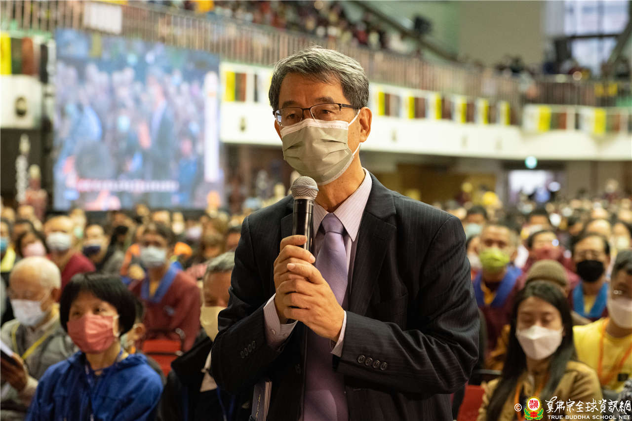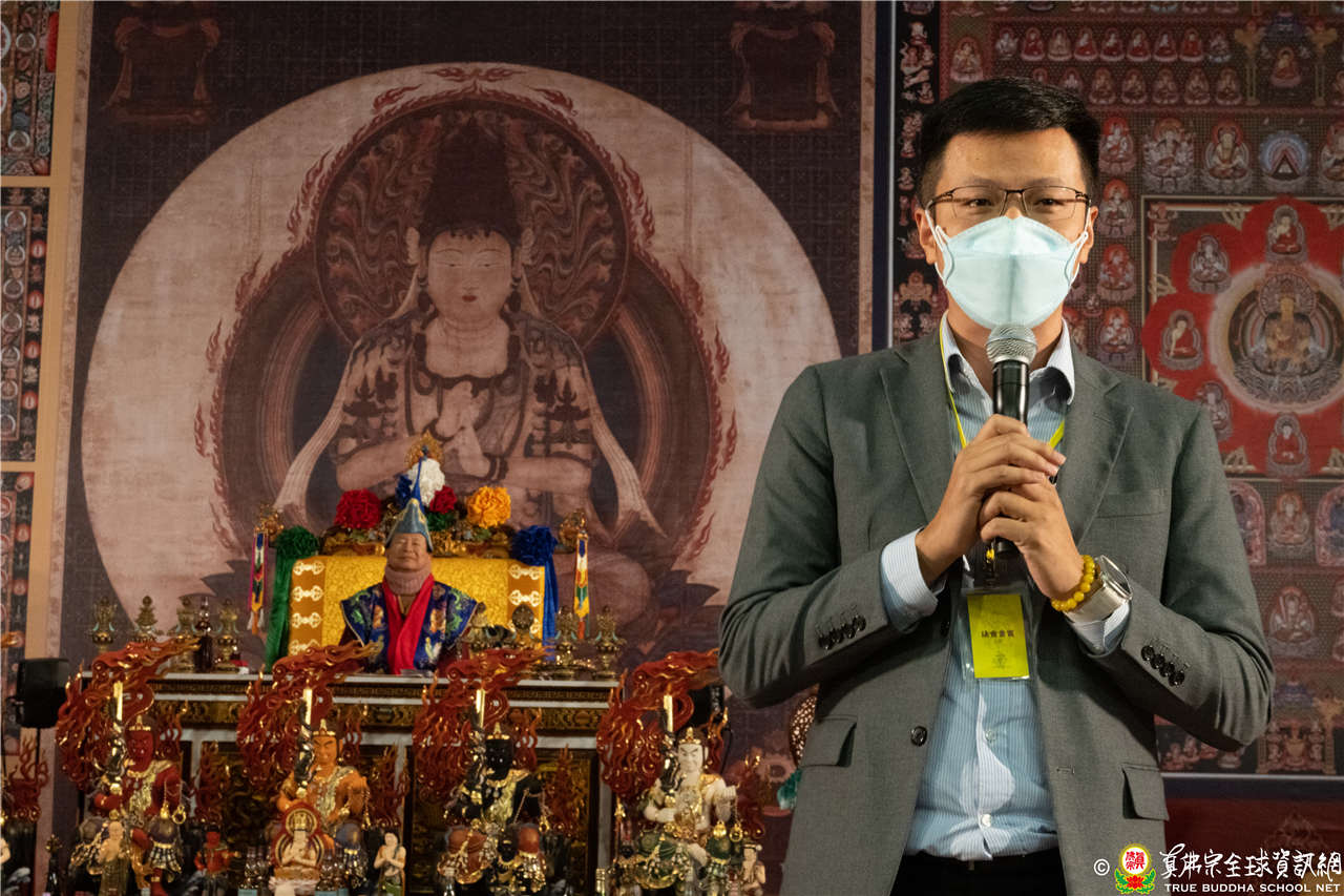 接著,法王提到自己小時候很難養,於是父親帶自己到嘉義城隍廟收為義子。因此,法王便認嘉義城隍廟的城隍爺為義父。此次在嘉義舉辦法會,內心也感波濤洶湧。法王告訴眾人其祖父有一個為善不為人知的功德:當年祖父經營米行時有許多貧苦人家,因沒錢買米只能賒賬或寫借條。祖父在每年新年時,會將賒賬收據全部集合起來一起燒毀,從不向他們追討。這是母親在米行擔任會計時,親眼所見。後來,祖父到了「天河勝景處」的「紫霞宮」擔任「掌燈使者」。