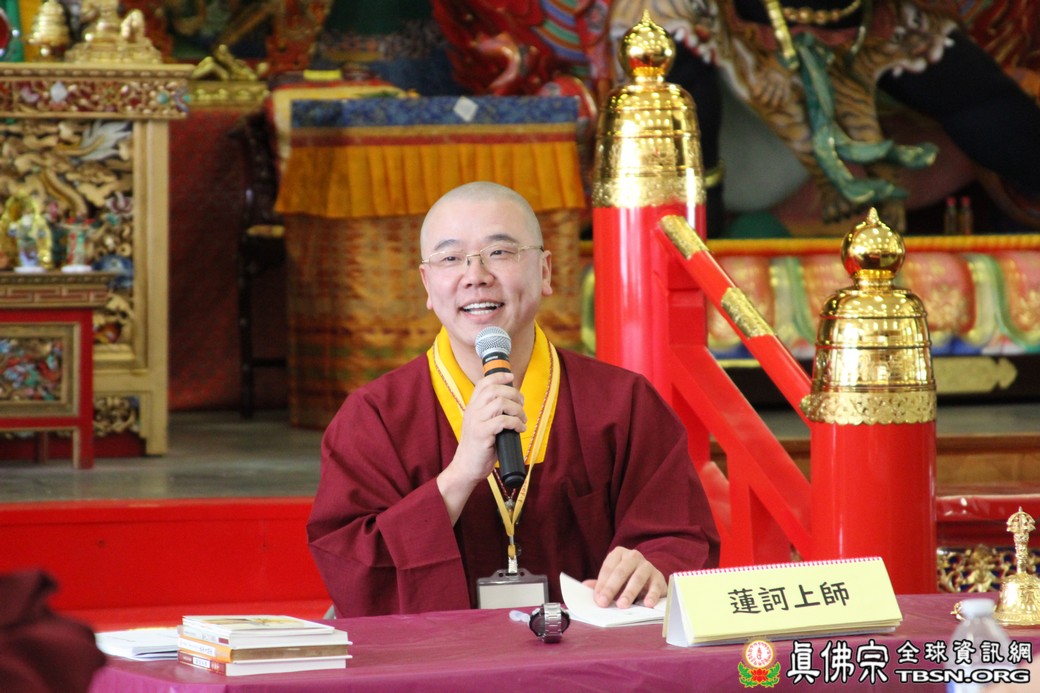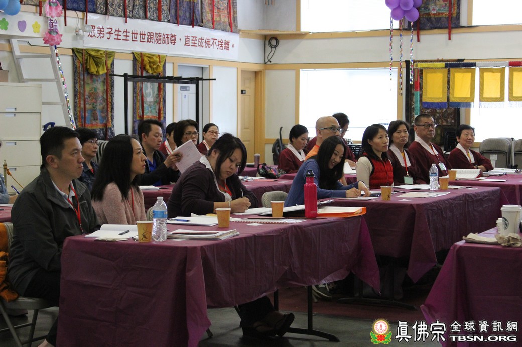 17日上午9時,中英文同步翻譯的培訓課由會長蓮花程祖上師致歡迎詞後正式開始。各位授課的上師為了幫助應考生掌握教材重點,順利通過筆試、面試、梵唄考試成為合格的講師助教,可謂傾囊相授毫無保留給予應考生們最大的支持!上師們以不同的實例及各種寶貴的經驗分享,非常詳細地向應考生講解了講師助教應具備的學佛正念、守戒律的重要、隨時可以向他人介紹根本傳承上師聖尊蓮生活佛的修持成就的經歷、真佛宗的傳承、真佛密法的殊勝、日後在法務時遇到的實際狀況該如何正確應對、成為講師助教如何主持同修、主持法事及梵唄唱誦的技巧要點。