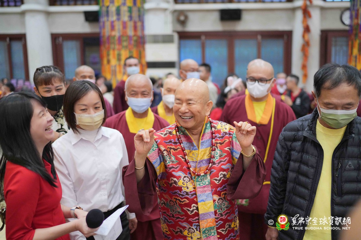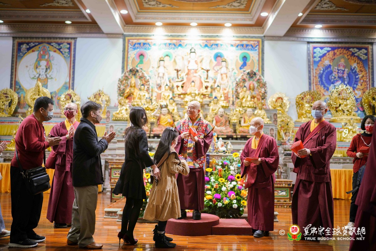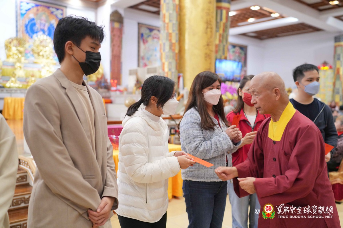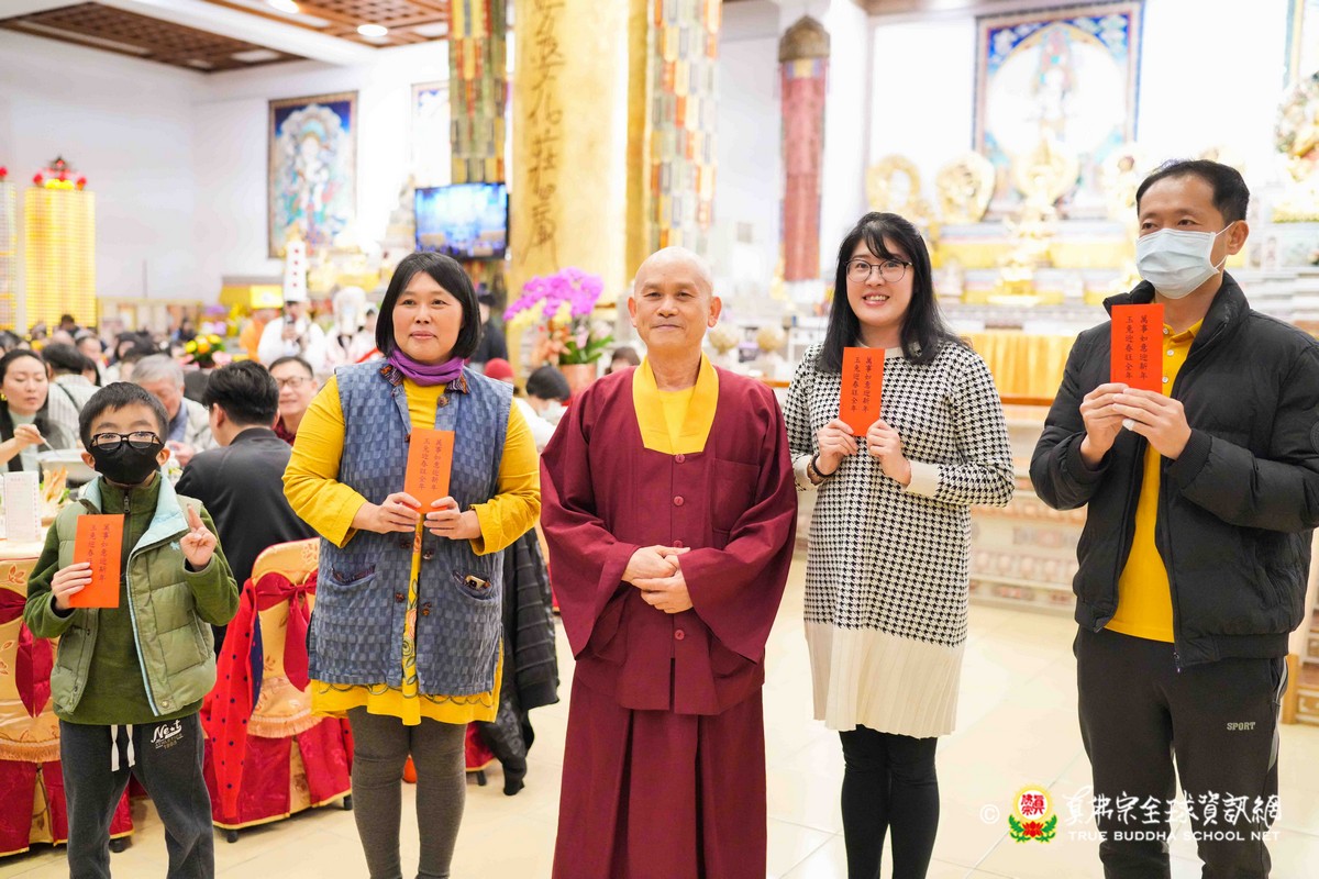師母很衷心的說出心聲,大家能夠再見到師母,真是喜極而泣!最後師尊一一為大眾賜福紅包,相隔三年的一聚,今年的圍爐分外令人珍惜!