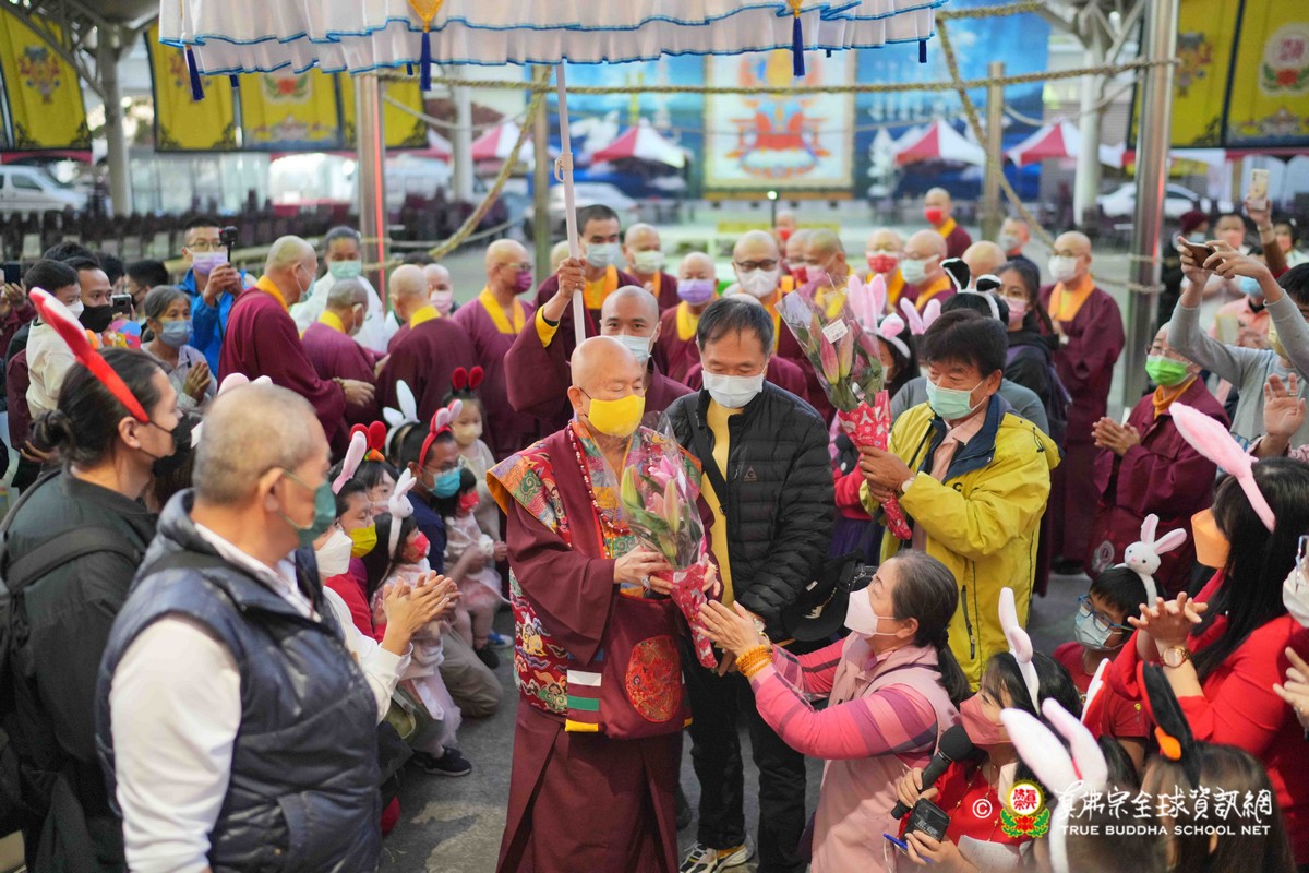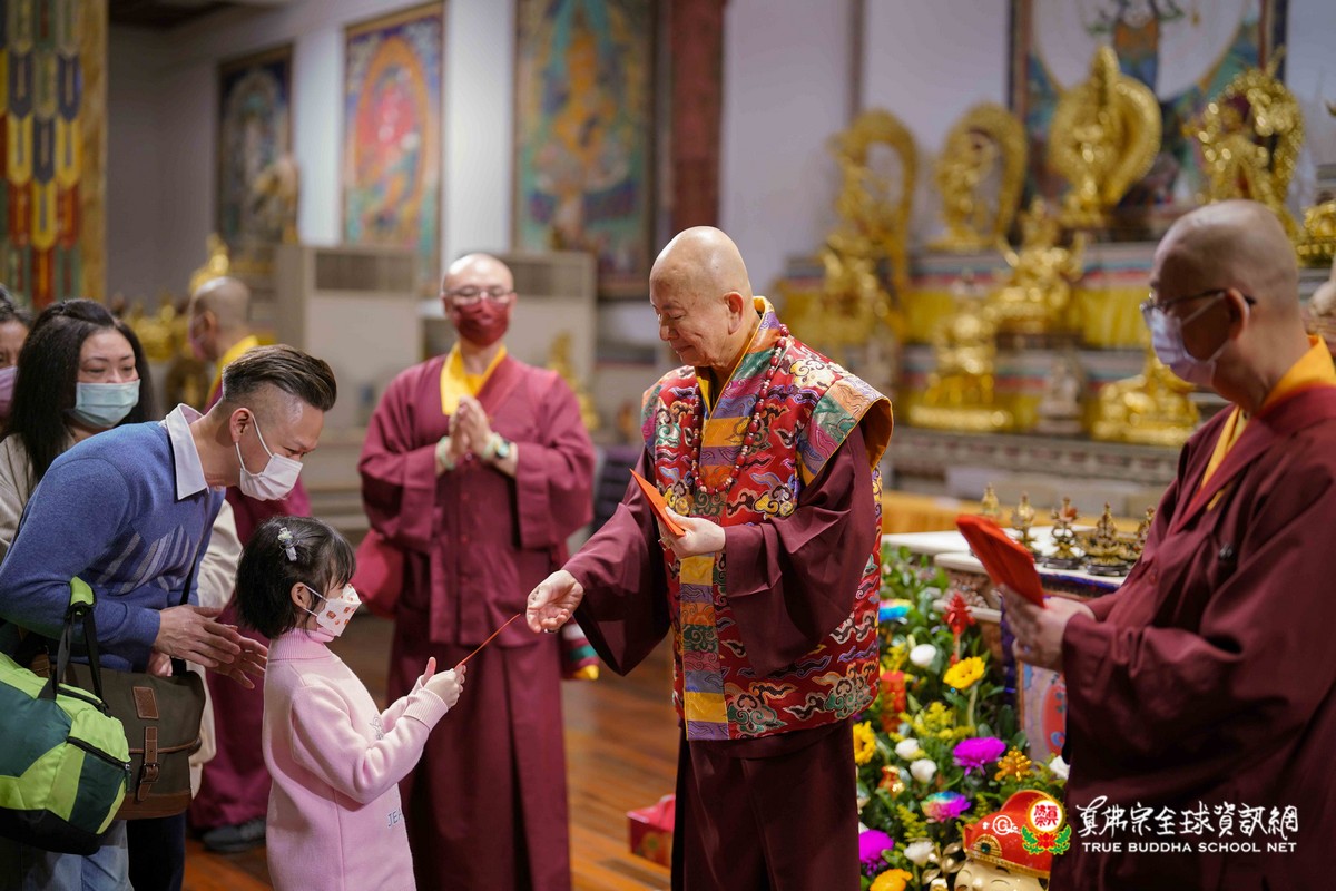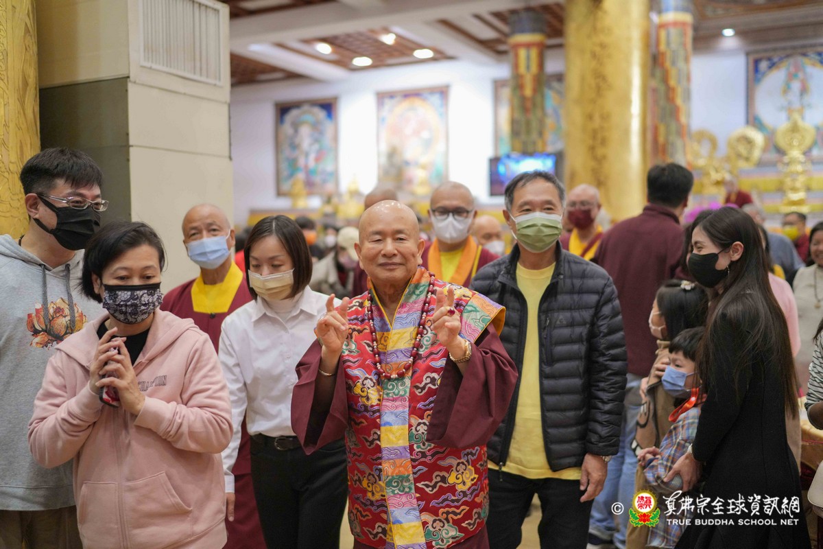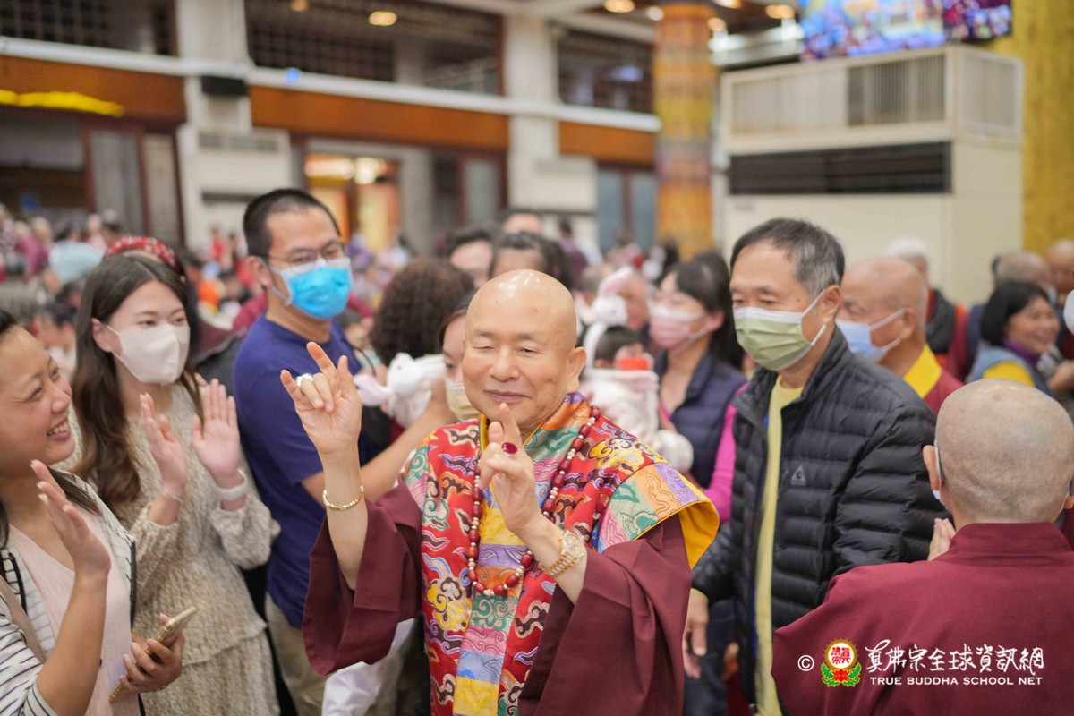 師母很衷心的說出心聲,大家能夠再見到師母,真是喜極而泣!最後師尊一一為大眾賜福紅包,相隔三年的一聚,今年的圍爐分外令人珍惜!
