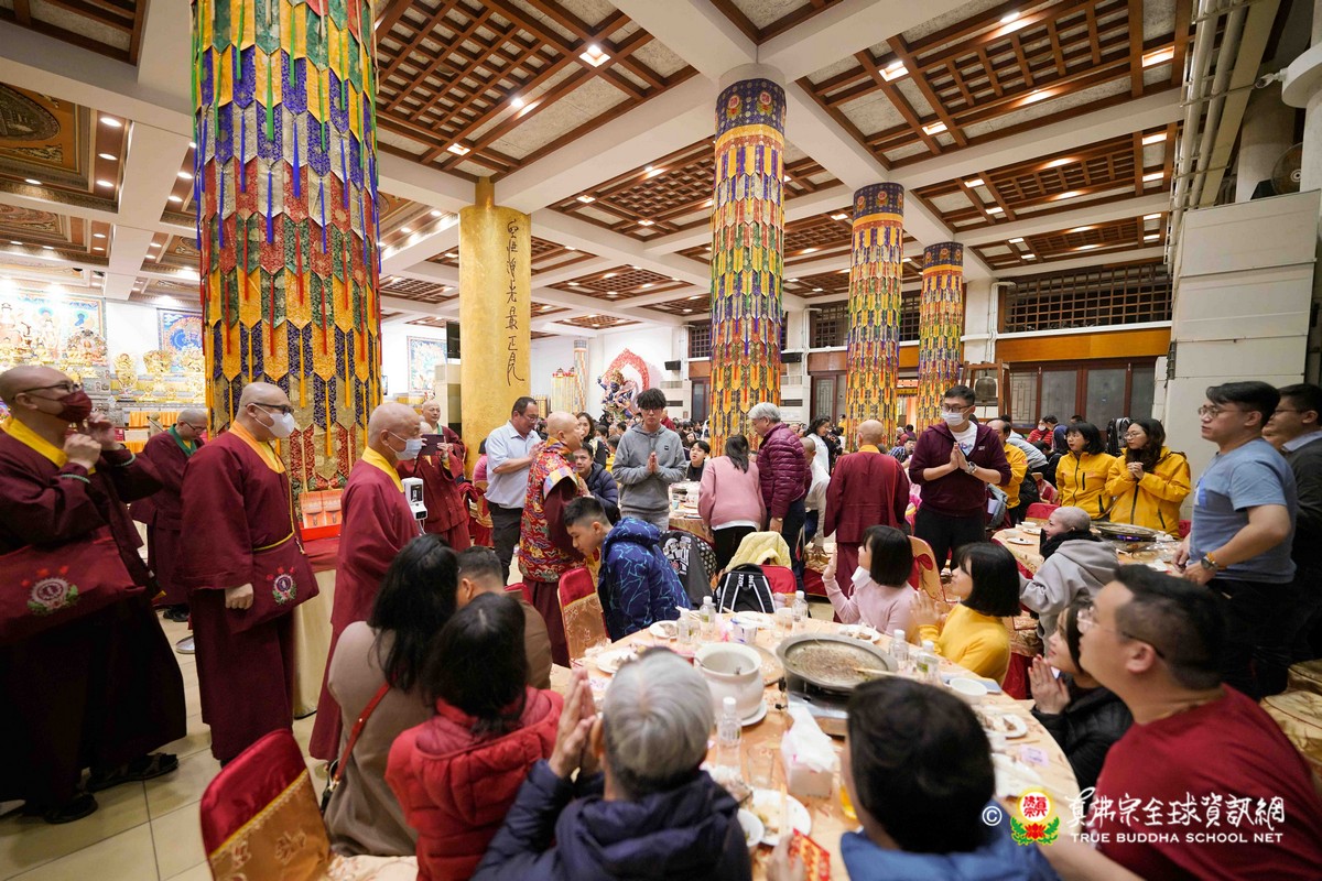 2023年1月21日除夕,台灣雷藏寺舉辦圍爐餐會,盧師尊與眾弟子蒞臨,大家歡天喜地一起與師尊吃年夜飯!