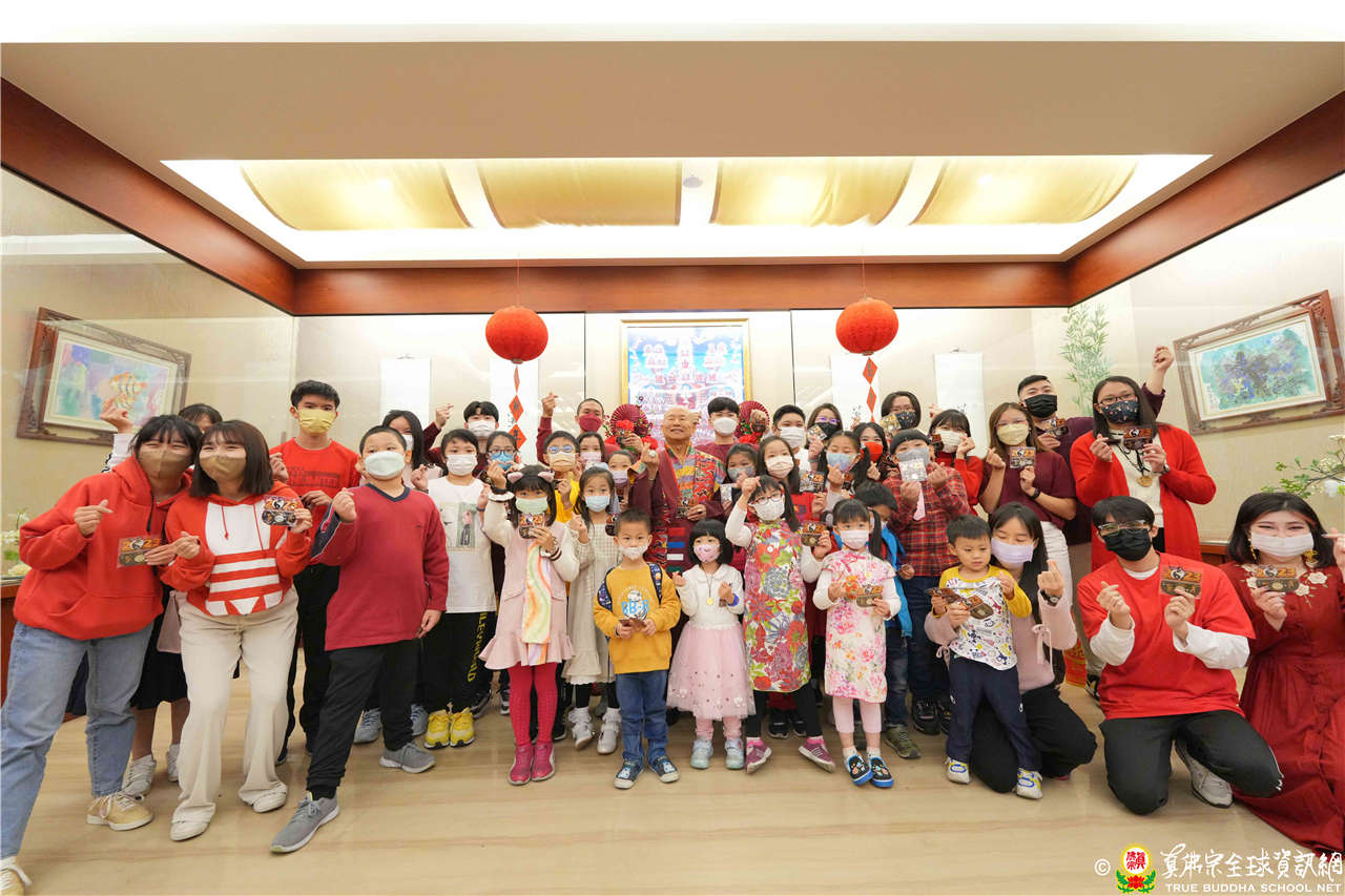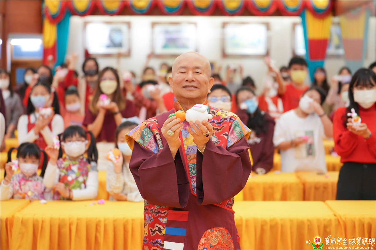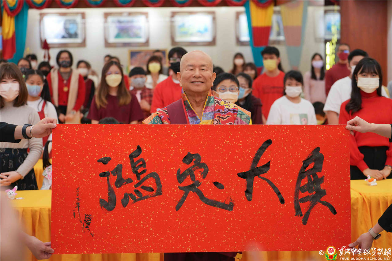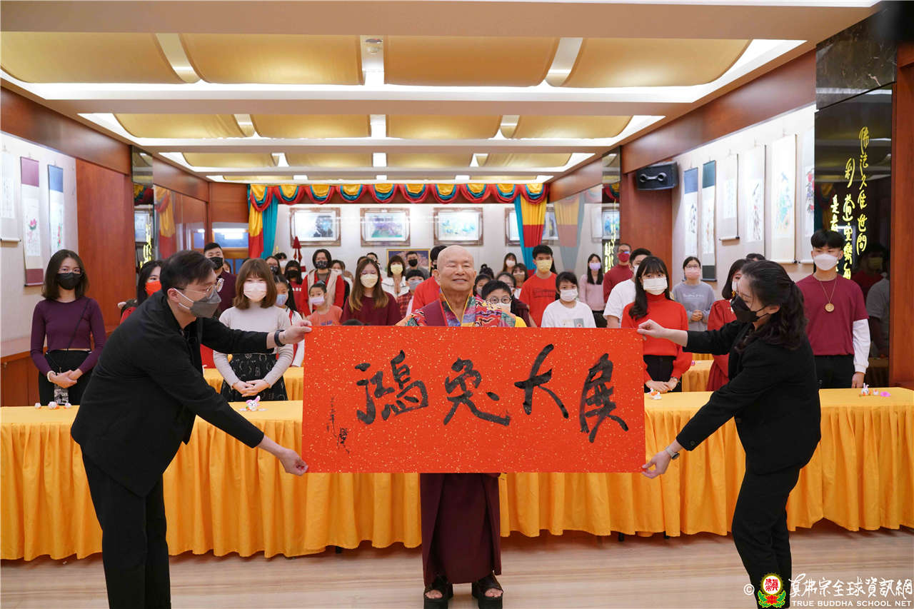 大年初一早晨,信眾們歡聚在台灣雷藏寺,一起參與真佛宗根本傳承上師無上法王聖尊蓮生活佛主持的新春祈福法會,現場熱鬧非凡!法王在現場發送「吉祥如意開運紅包」,同時也作畫、揮毫,與大家「捏兔寶」同樂!