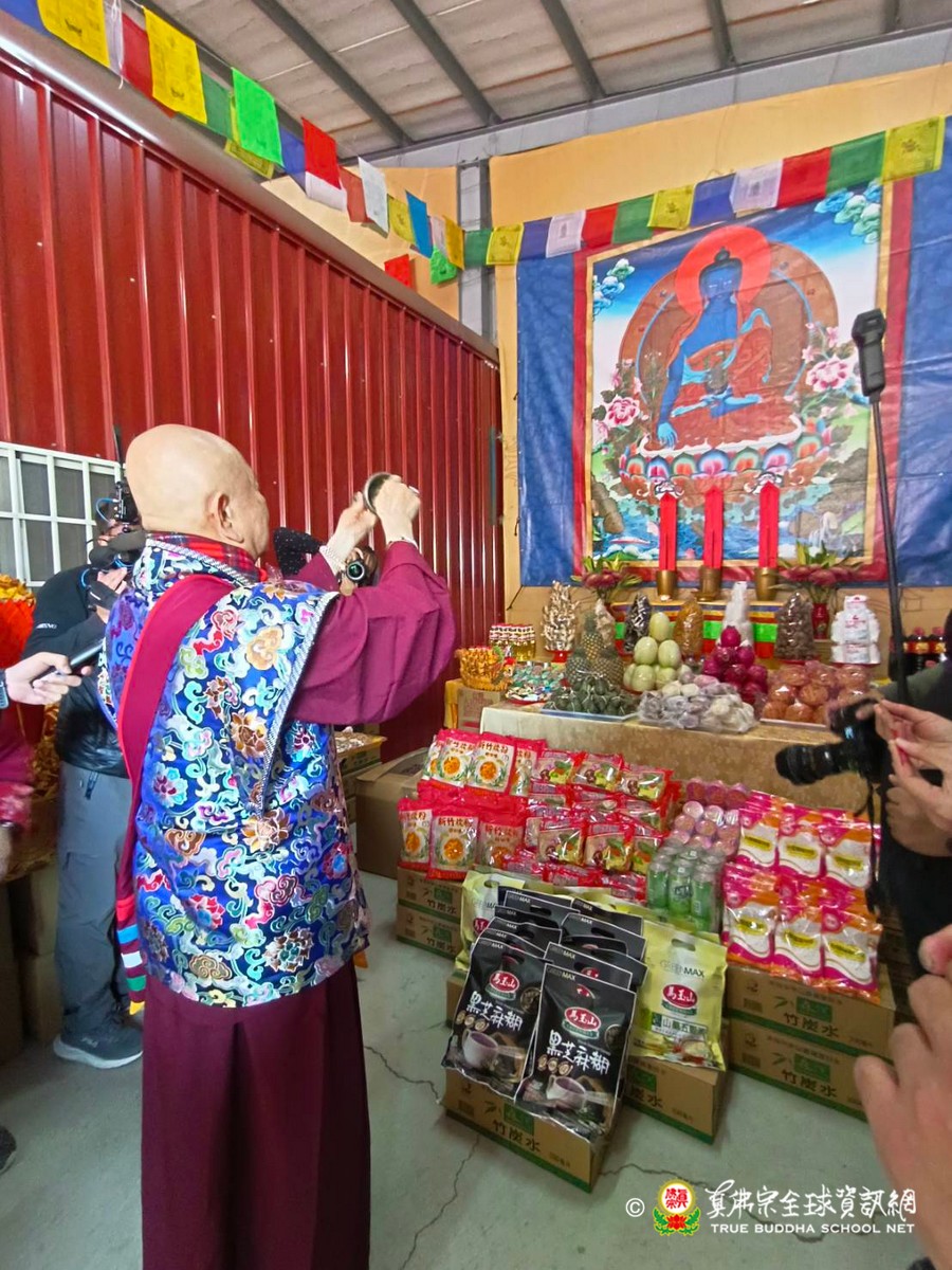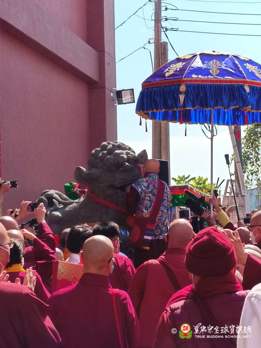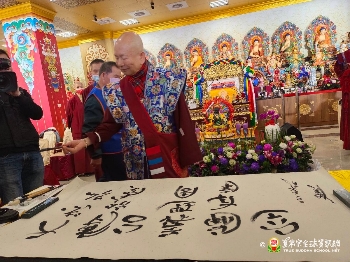 2023年1月29日上午 真佛宗根本傳承上師無上法王聖尊蓮生活佛已抵達大義雷藏寺出席開光剪綵儀式、為獅子石像點睛開光後賜墨寶 大法弘傳於南台 義理周遍存達空 在賜墨寶及試音後,法王繼續巡視大義雷藏寺,加持能摧壞度母點燈區、能摧壞大法會之延生位及往生位。 隨後法王為大義雷藏寺 佛像開光、上香、及主壇【能摧壞度母息災祈福增益敬愛除障超度大法會】
