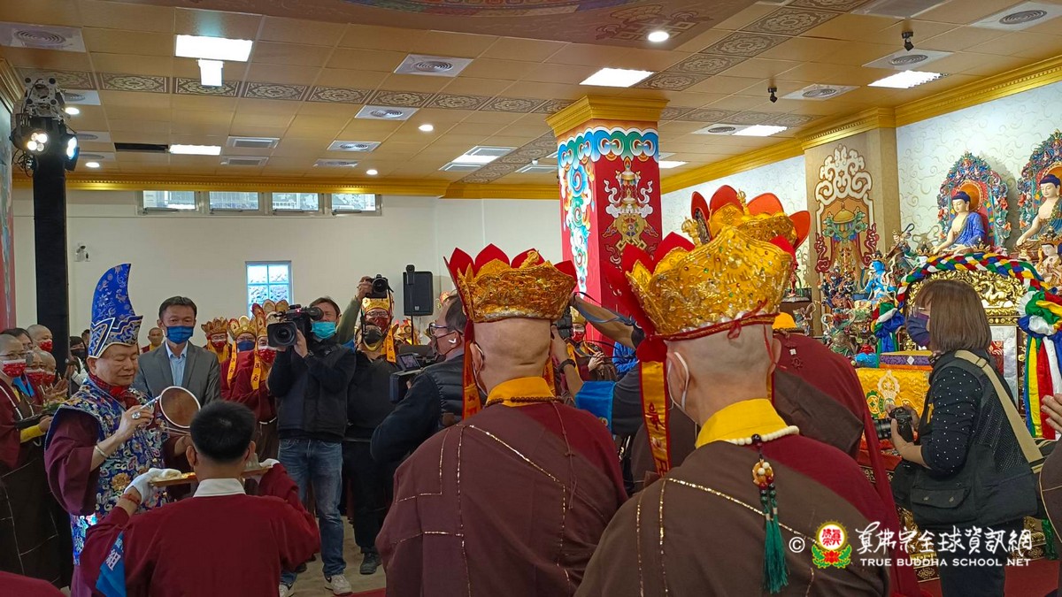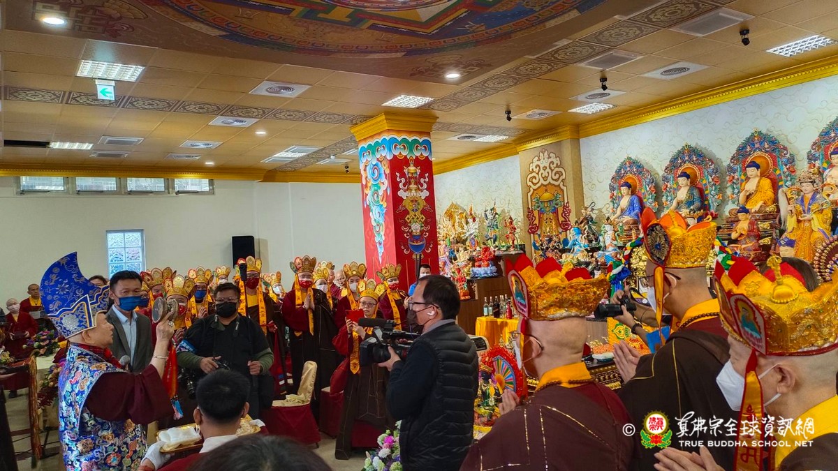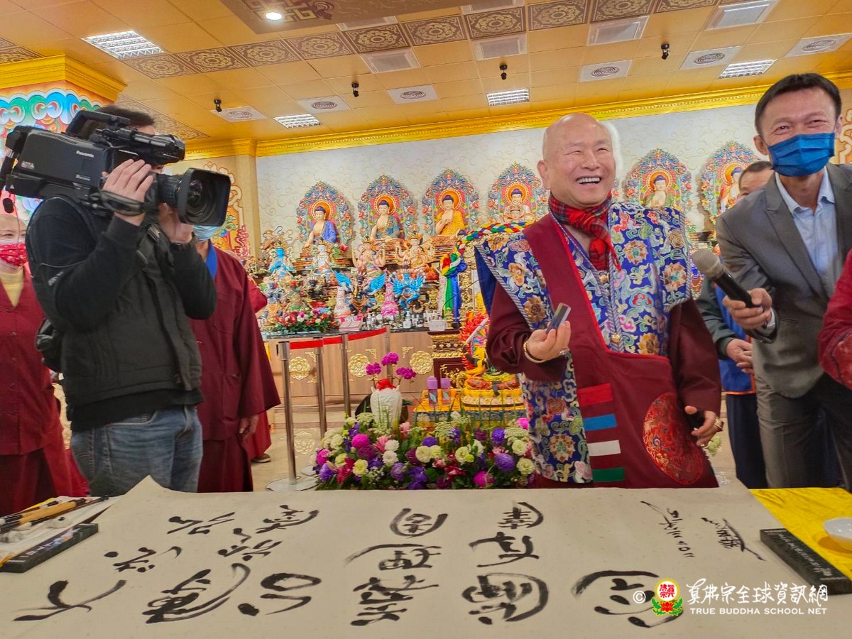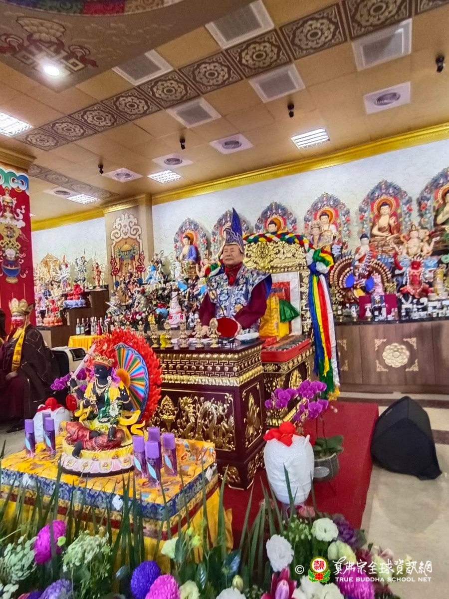 2023年1月29日上午 真佛宗根本傳承上師無上法王聖尊蓮生活佛已抵達大義雷藏寺出席開光剪綵儀式、為獅子石像點睛開光後賜墨寶 大法弘傳於南台 義理周遍存達空 在賜墨寶及試音後,法王繼續巡視大義雷藏寺,加持能摧壞度母點燈區、能摧壞大法會之延生位及往生位。 隨後法王為大義雷藏寺 佛像開光、上香、及主壇【能摧壞度母息災祈福增益敬愛除障超度大法會】
