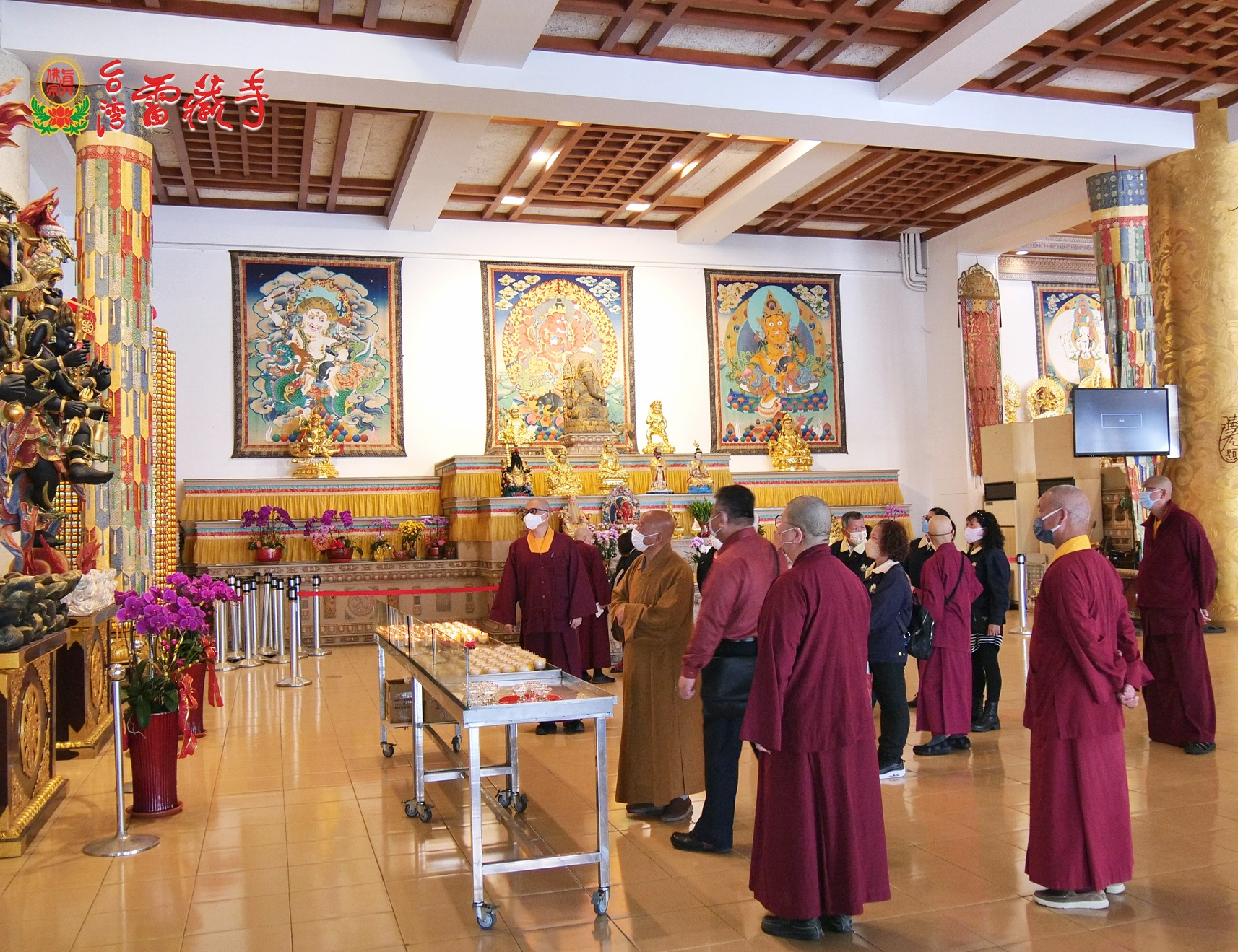 甫抵寺中,釋慧龍法師便率同行諸善信向台灣雷藏寺壇城諸佛菩薩上香;隨後,由台灣雷藏寺四大執事與知客組蓮津法師,為大眾做精彩簡要的寺內導覽;也為佛光山代表團簡介真佛宗根本傳承上師蓮生活佛,以及本宗的傳承與特色。