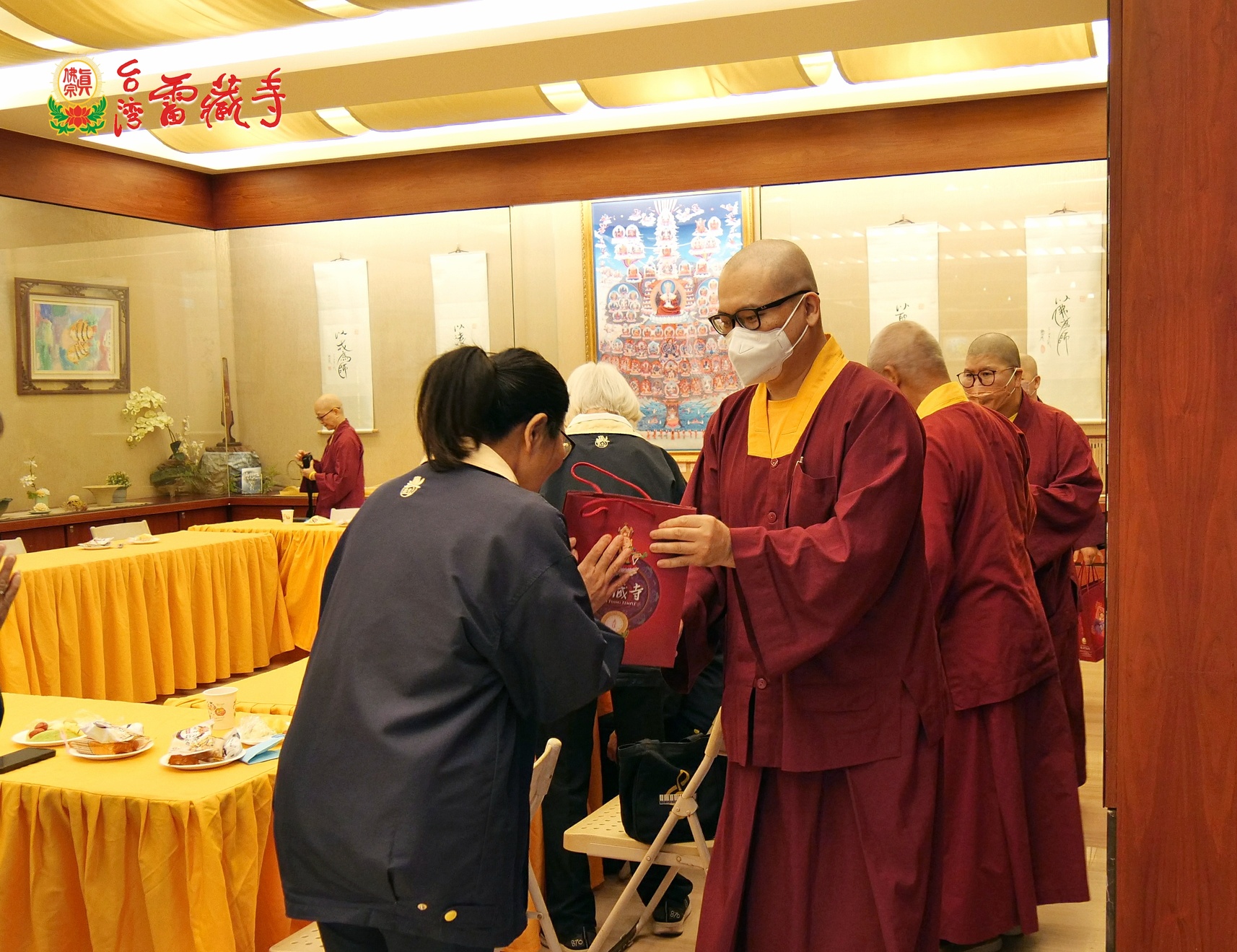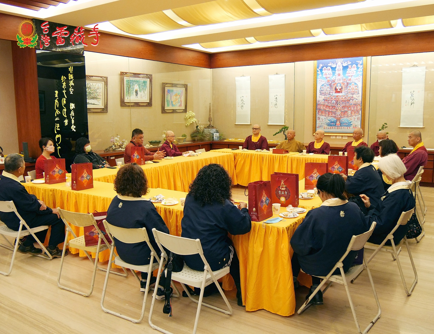 台灣雷藏寺四大執事,住持釋蓮哲上師、副住持釋蓮栽上師、監院釋蓮歐上師、密教總會理事長釋蓮東上師,以及密總常務理事寶悅同修會釋蓮余上師,與台灣雷藏寺中眾法師、同門共約十五人許,一同熱情地歡迎佛光山代表團的到來。