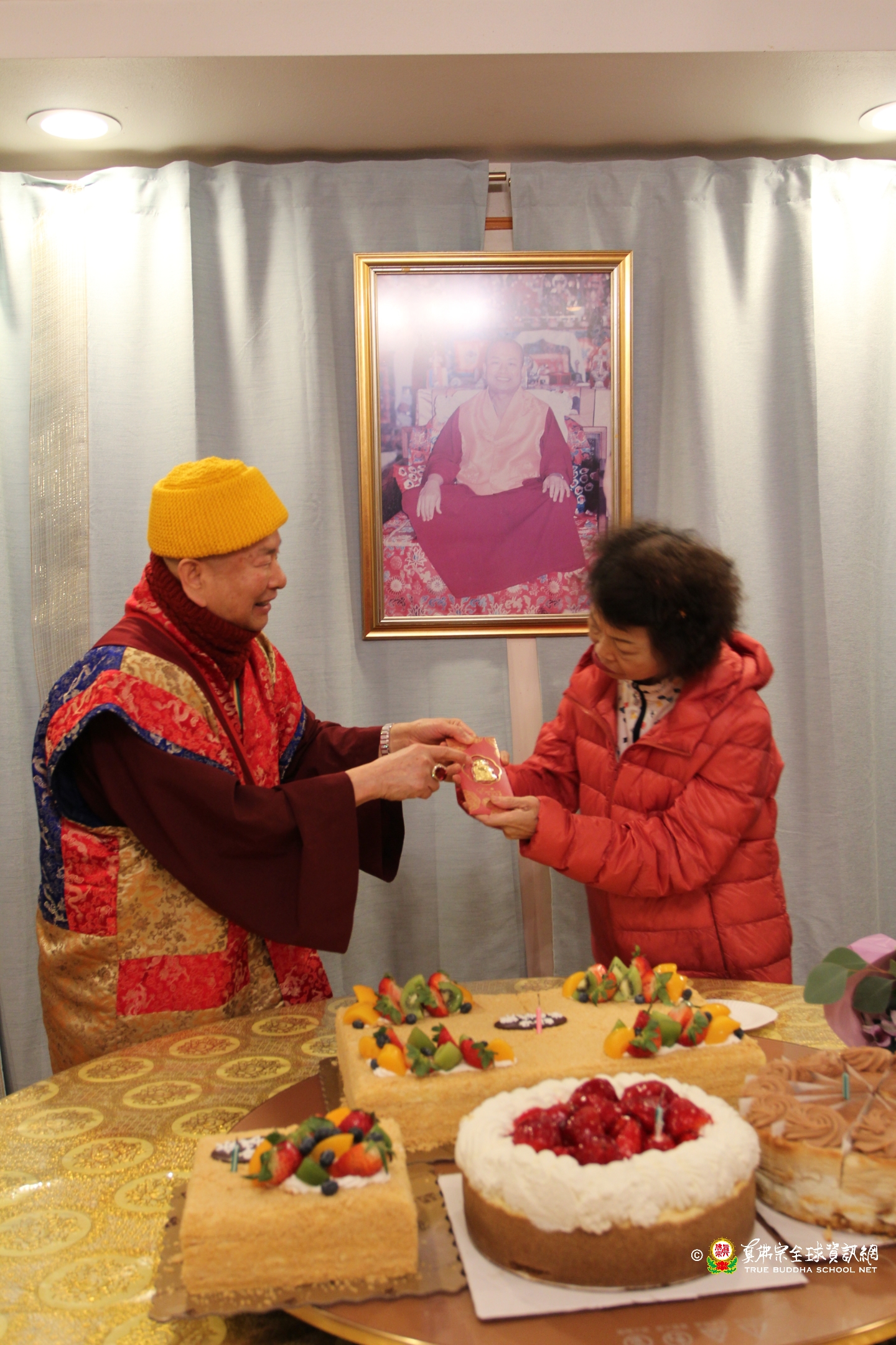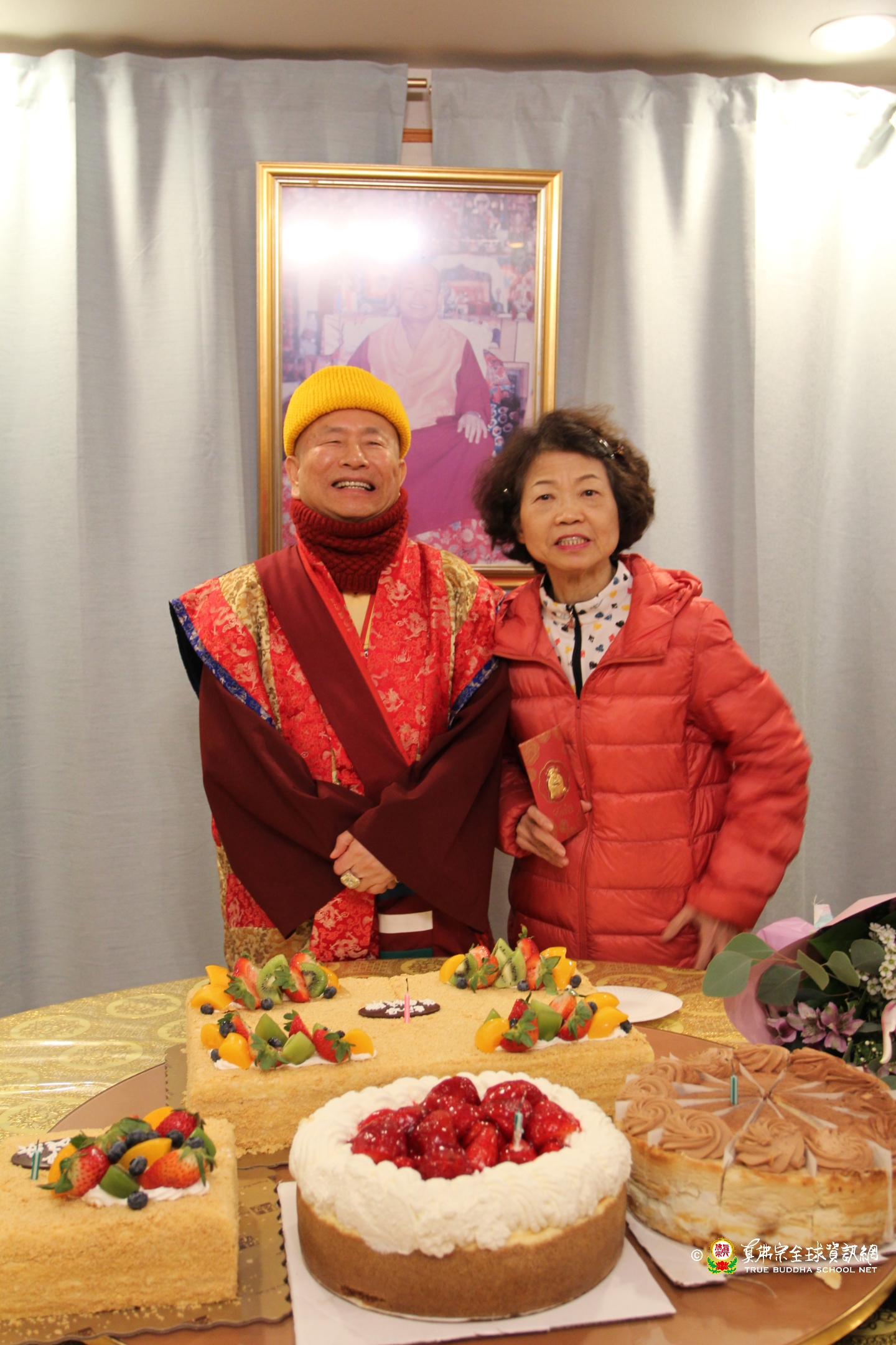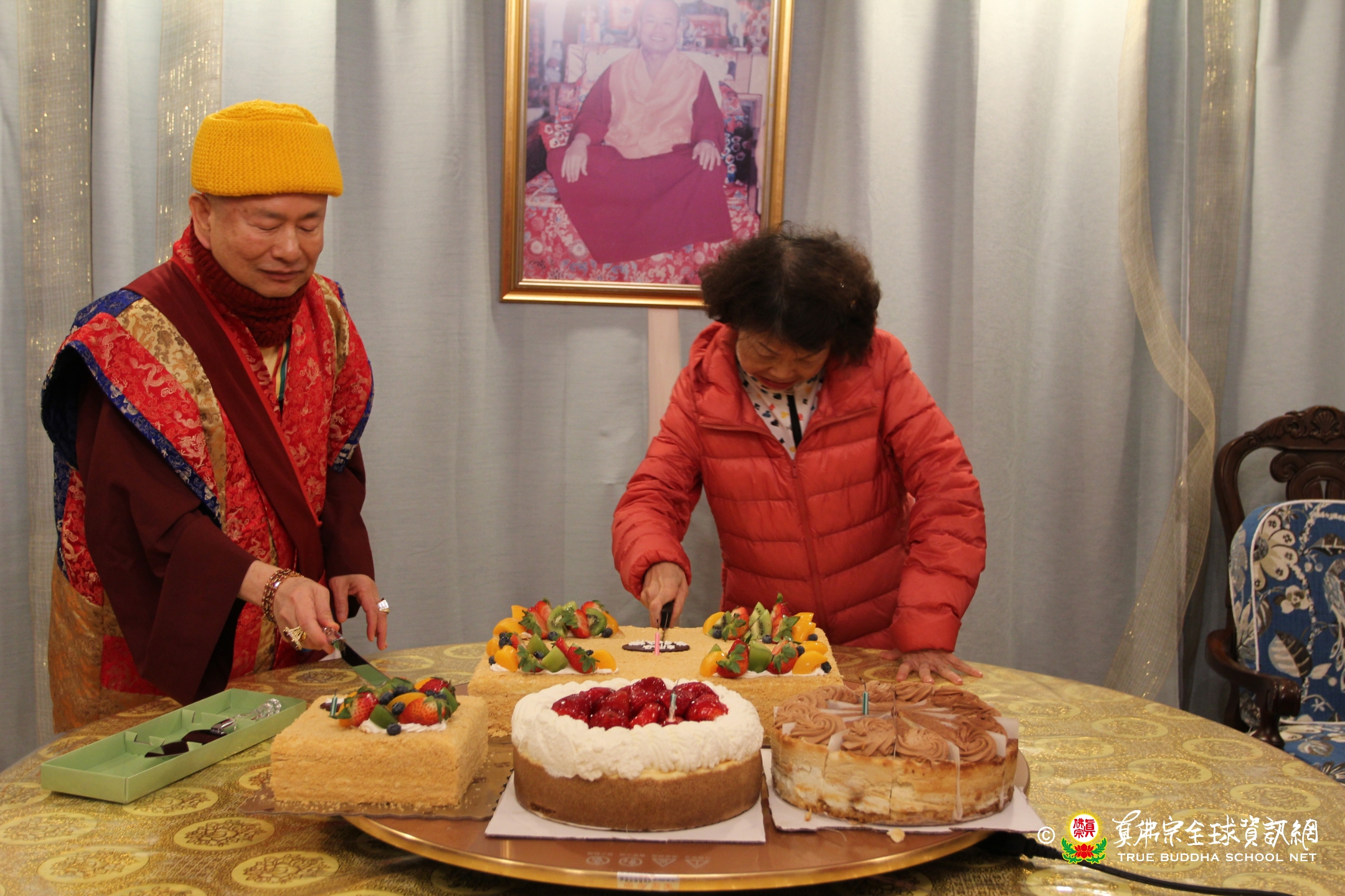 2023年3月6日農曆二月十五,是真佛宗師母蓮香上師的誕辰。於西雅圖雷藏寺,在聖尊蓮生法王的陪同下,西雅圖真佛宗弟子準備了美食佳餚鮮花蛋糕為師母慶生。