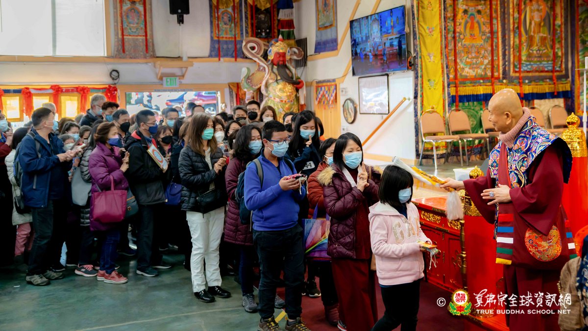 2023年3月26日,西雅圖彩虹雷藏寺恭請蓮生法王主壇殊勝的五色不動明王護摩法會。護摩結束後,法王預告4月2日下午3點是清明節地藏王菩薩護摩法會。法王講述地藏王菩薩右手持錫杖,左手捧摩尼寶珠,座騎為諦聽。地藏王菩薩也是法王的本尊,向大家示範其手印及咒音後,法王表示地藏王菩薩是八大菩薩中唯一顯聲聞相的菩薩,也就是出家相。