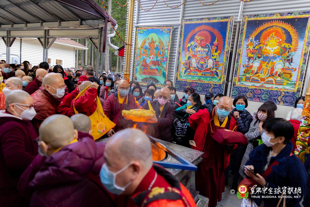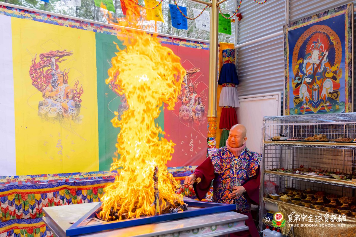 法王的開示結束,現場頓時響起如雷的掌聲。接著,法王賜授與會大眾「五色不動明王金剛尊者結界法」灌頂。法會吉祥圓滿,歡迎大家下週日繼續護持清明節地藏王菩薩護摩法會。