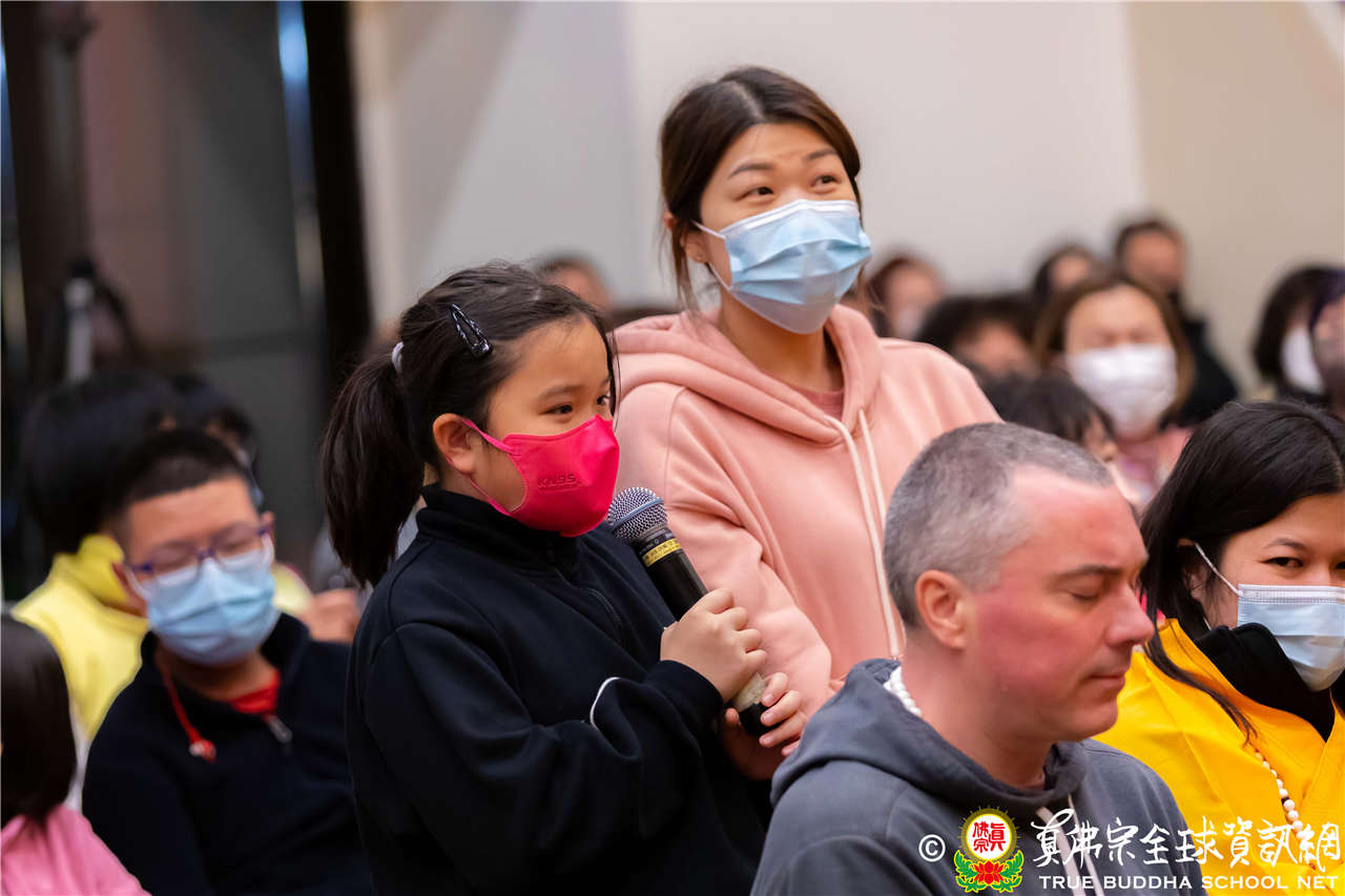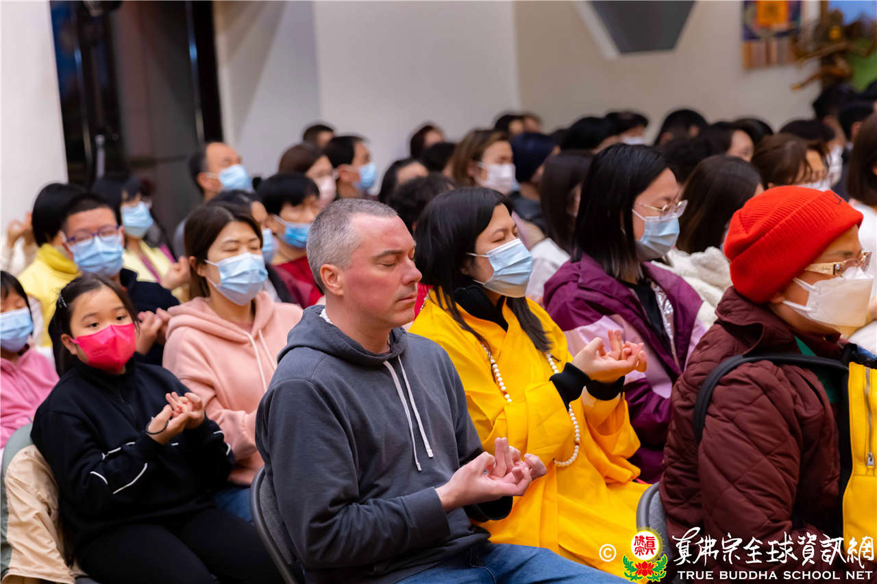 今晚陰雨綿綿,但仍不減四眾弟子想和聖尊蓮生活佛盧勝彥一齊同修地藏王菩薩本尊法的精進心,更有淨印雷藏寺蓮雄長老帶團前來朝聖,西雅圖雷藏寺大殿裡座無虛席。同修前,來自世界各地的弟子們做簡單的自我介紹,其中數位小同門童稚的語音與表情,令人感到非常可親、逗趣。