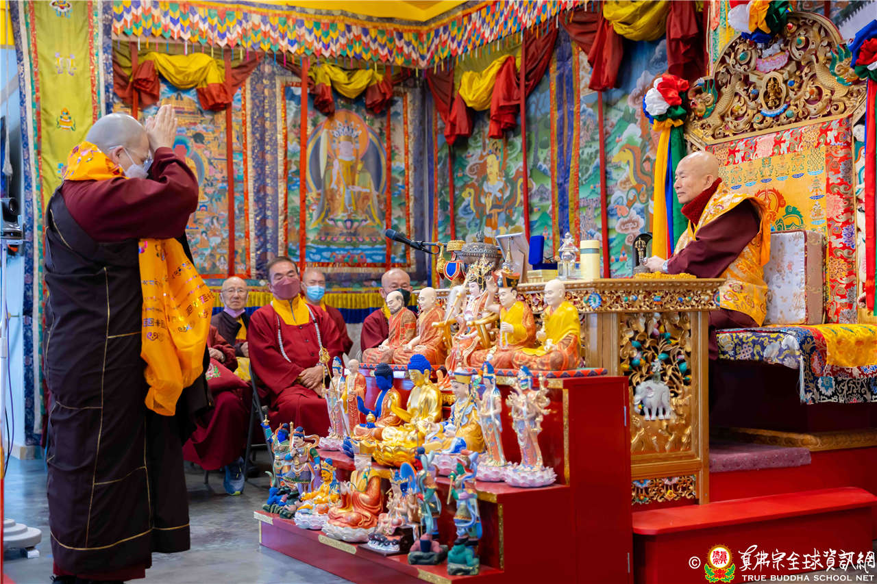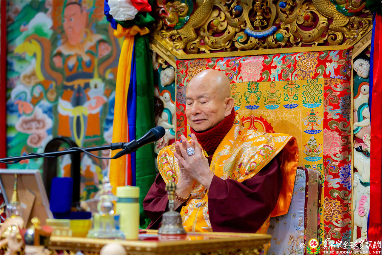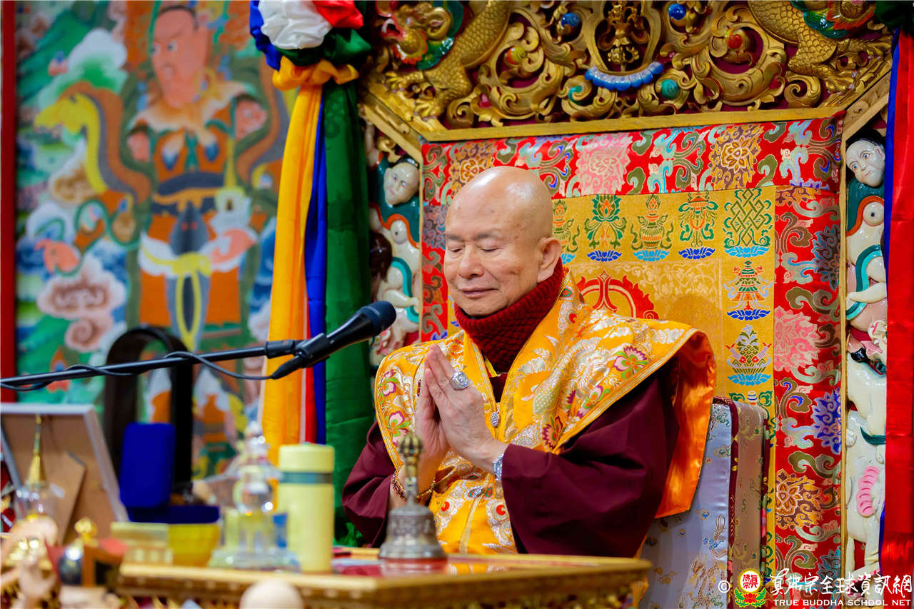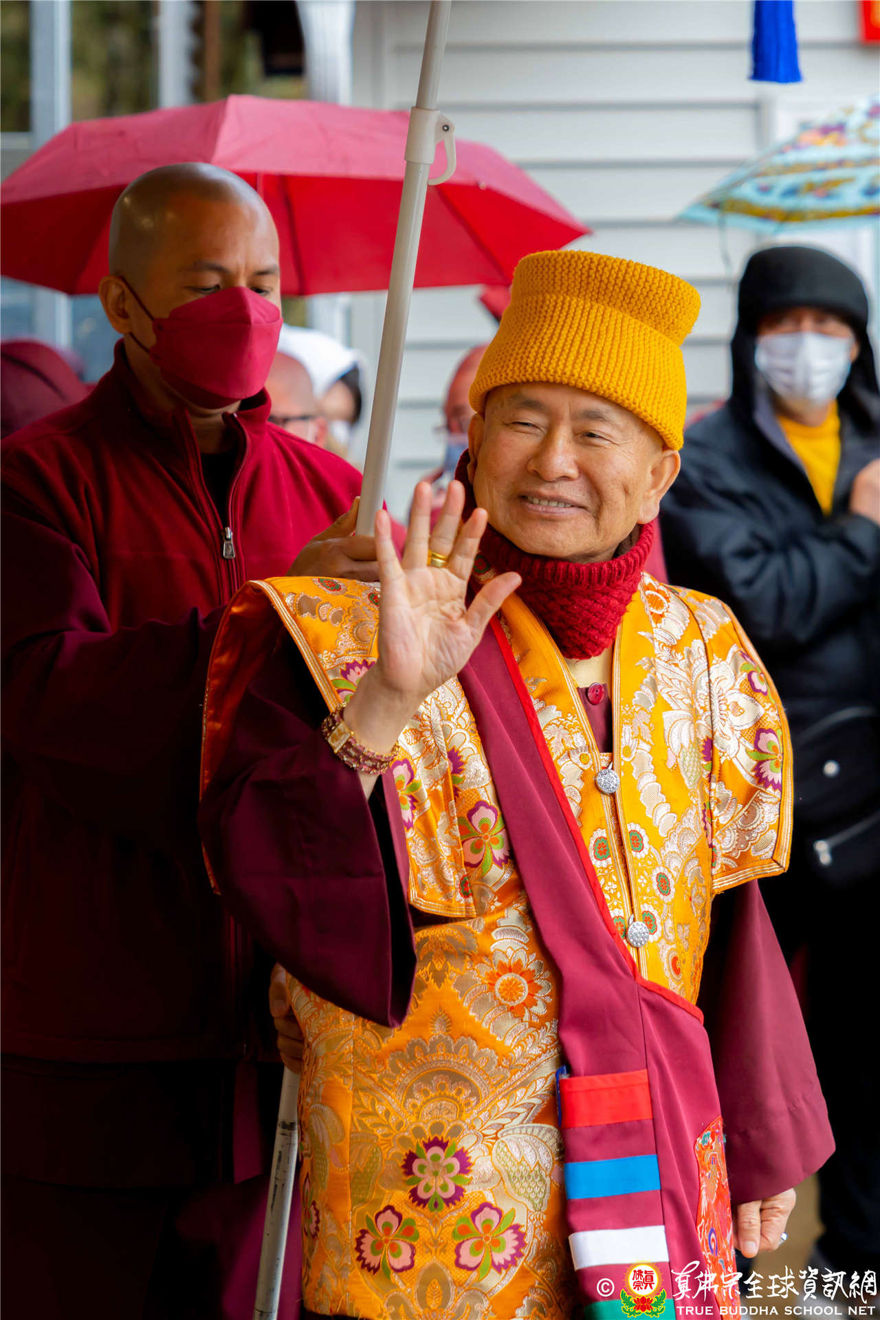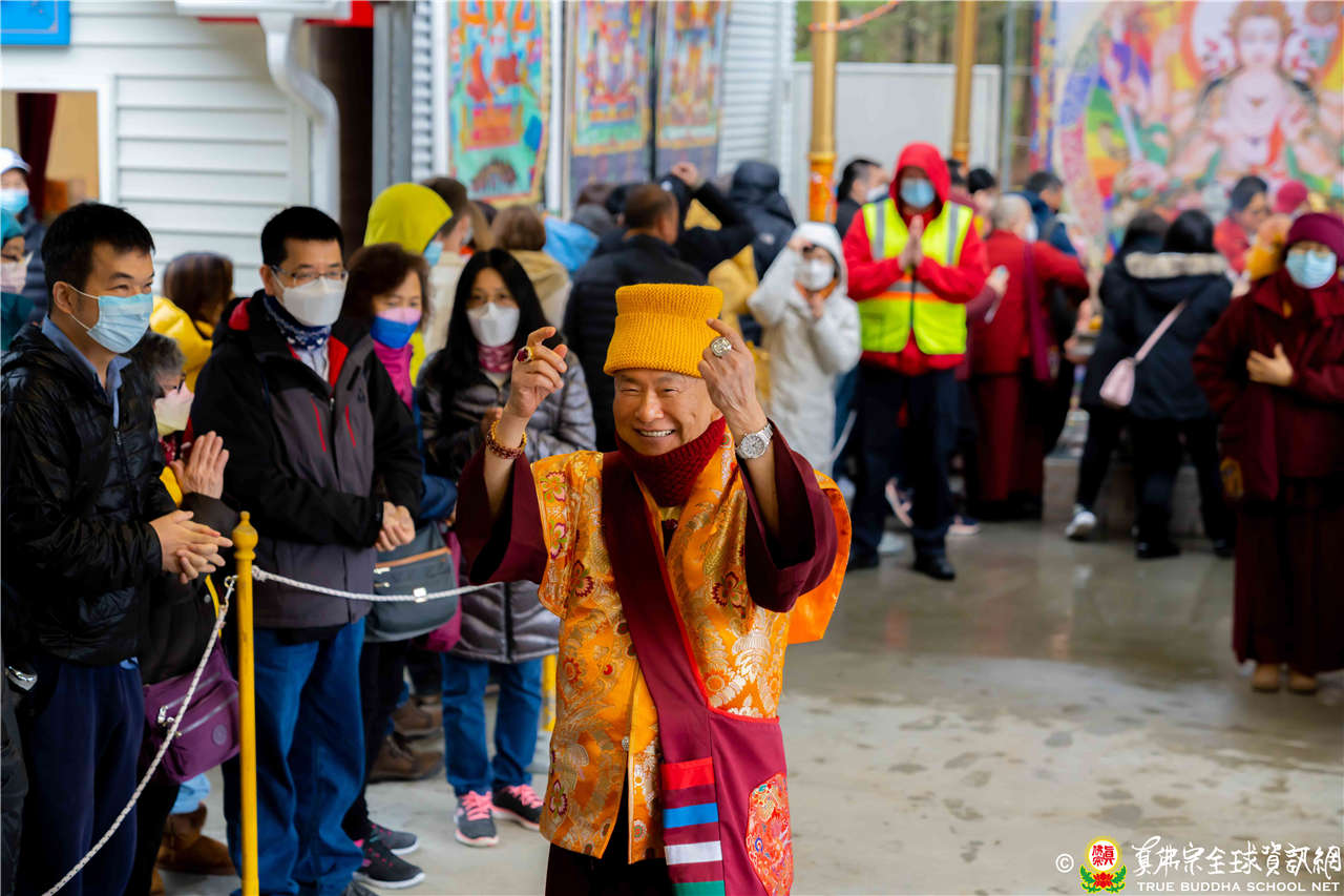 最後,法王告訴大家:「你如果有如來的智慧在心中,你就是世界上的第一富豪。」語畢,現場掌聲如雷。法王帶領大眾頂禮壇城後,便與zoom上弟子們打招呼。接著,法王給予現場與會大眾殊勝的「大隨求菩薩法」灌頂,法會到此圓滿結束。