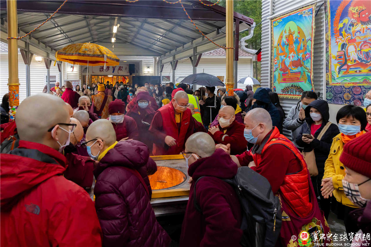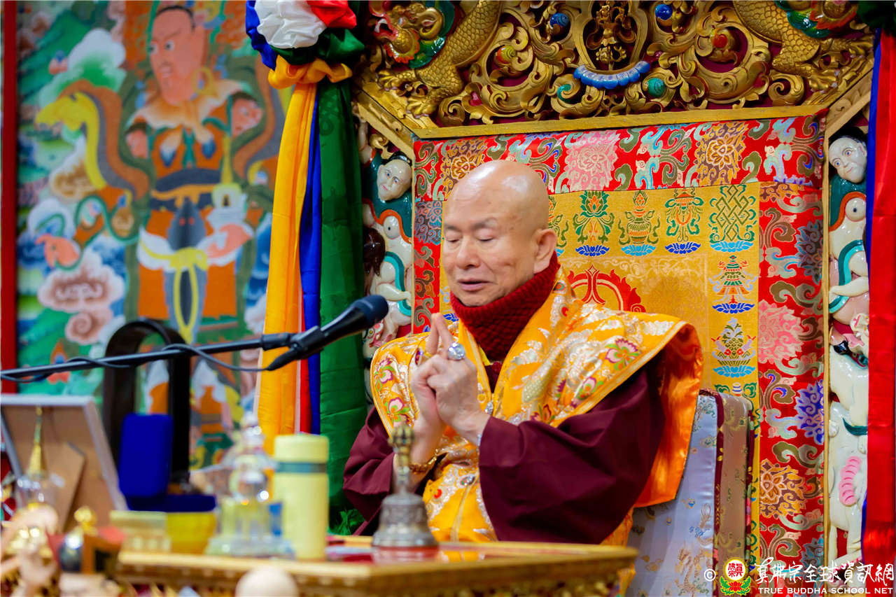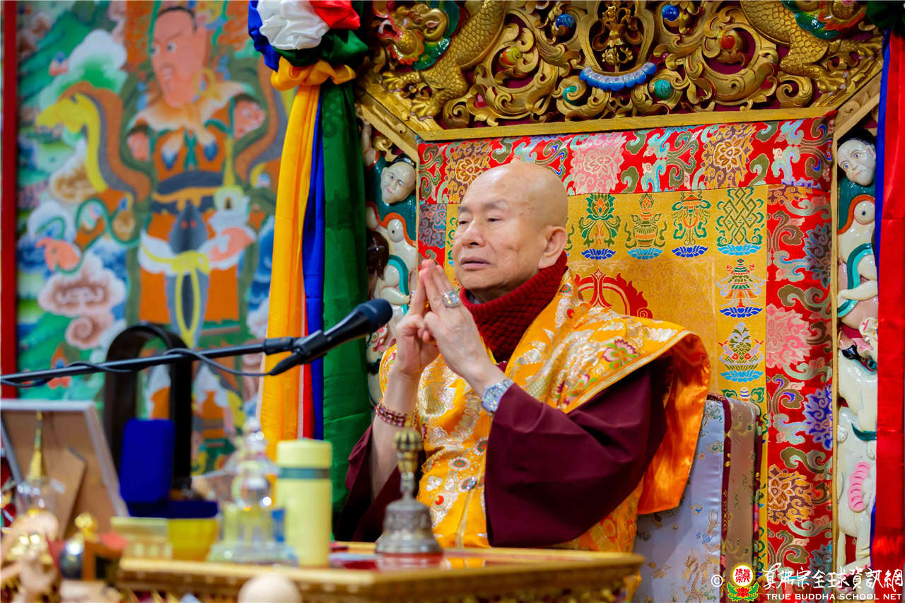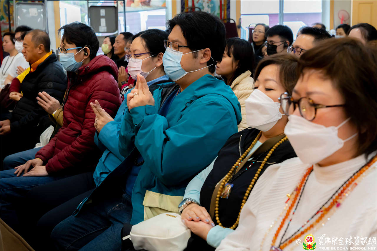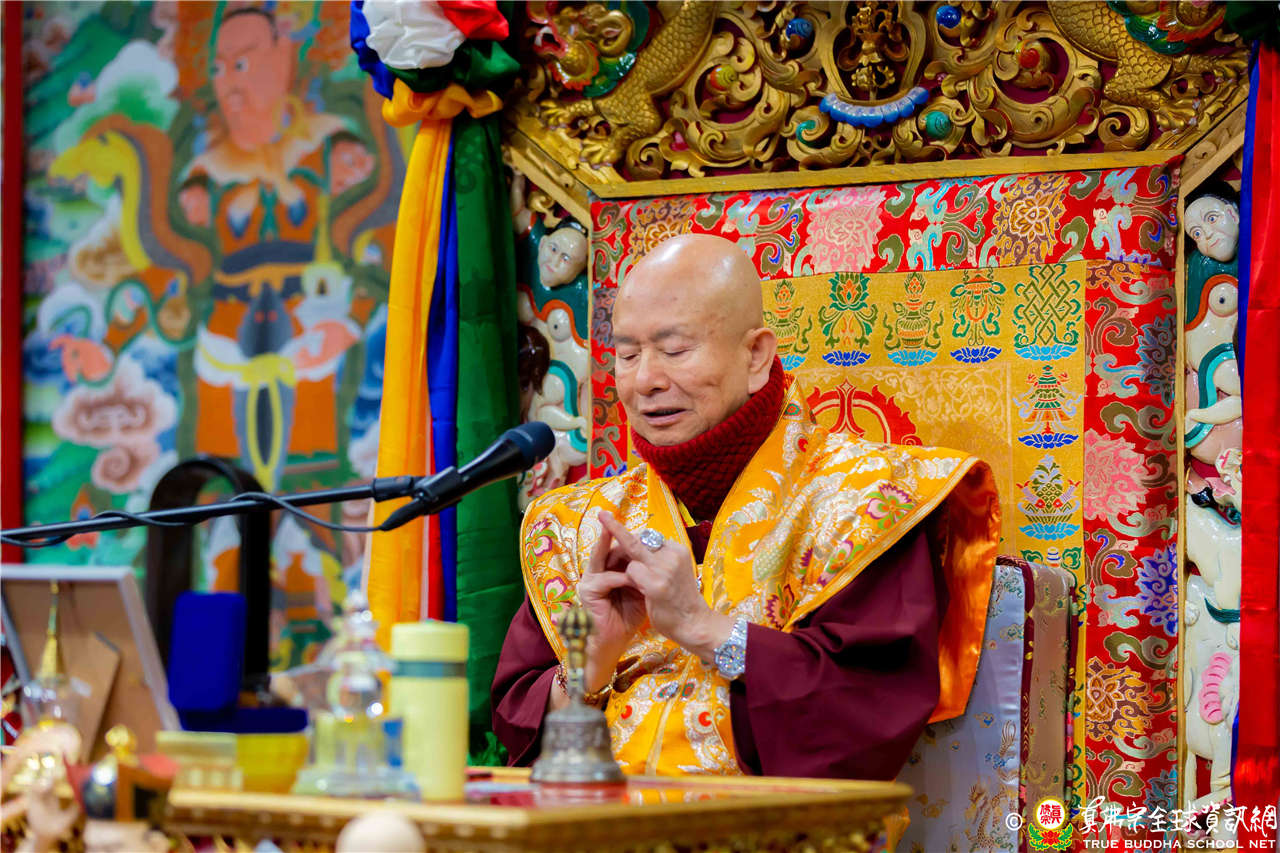 最後,法王告訴大家:「你如果有如來的智慧在心中,你就是世界上的第一富豪。」語畢,現場掌聲如雷。法王帶領大眾頂禮壇城後,便與zoom上弟子們打招呼。接著,法王給予現場與會大眾殊勝的「大隨求菩薩法」灌頂,法會到此圓滿結束。
