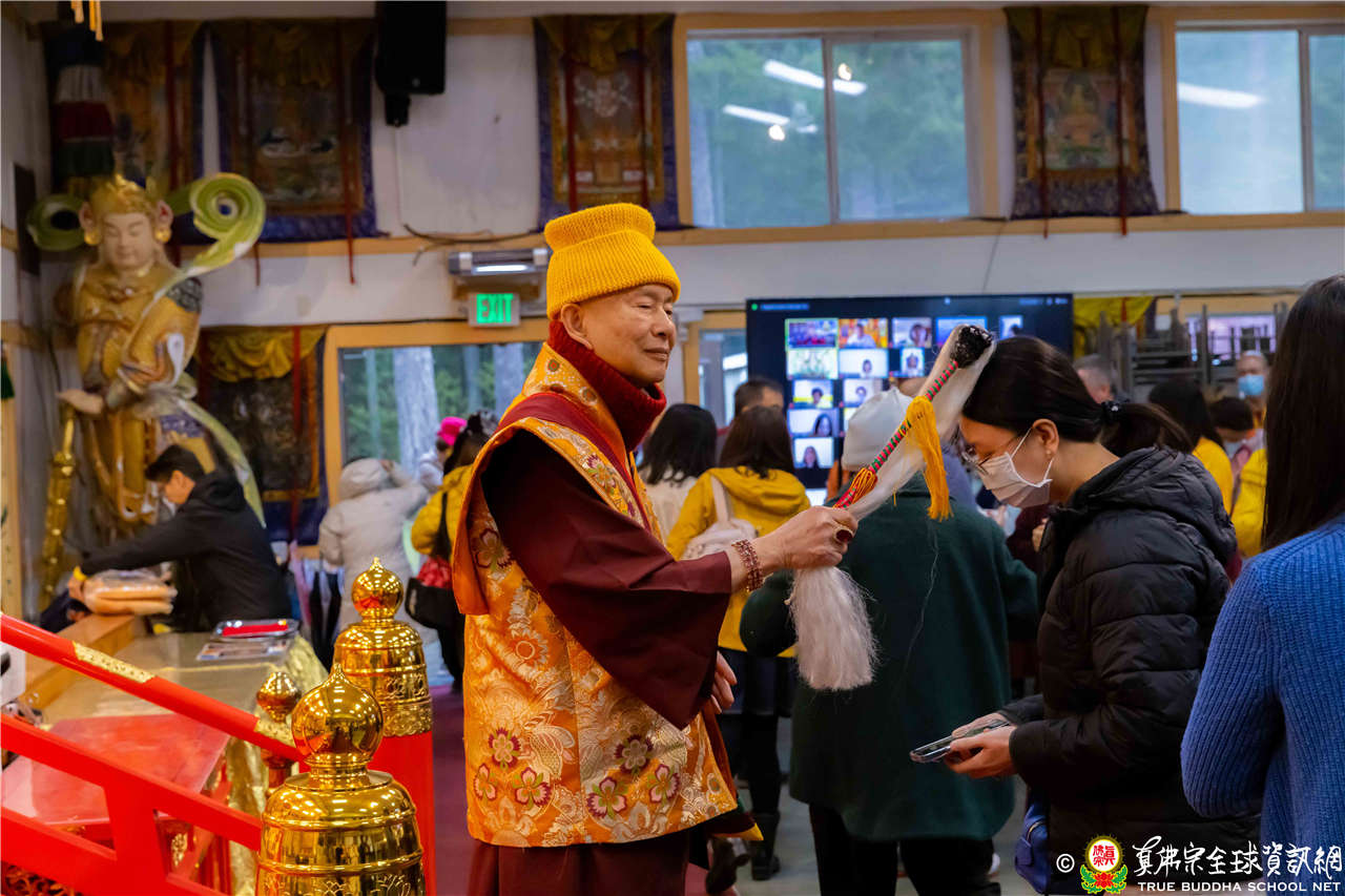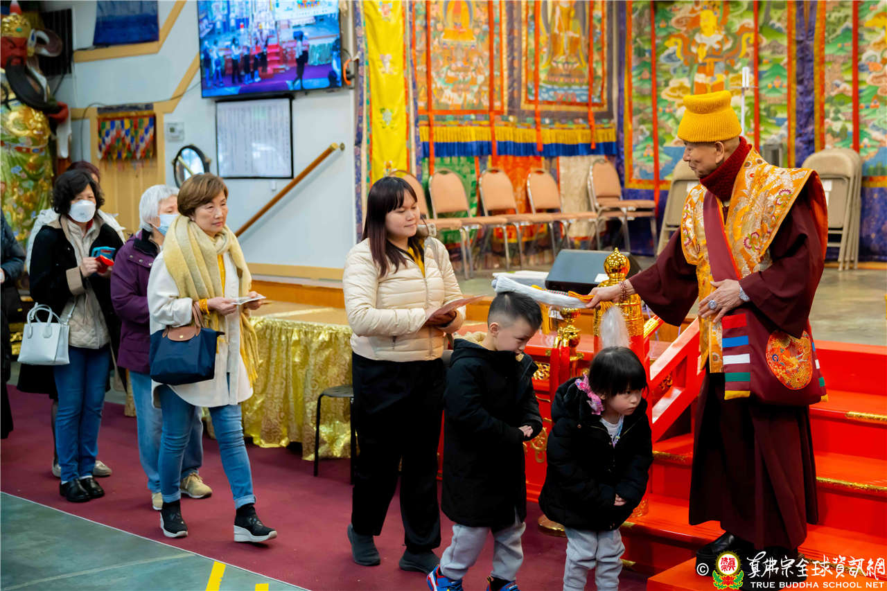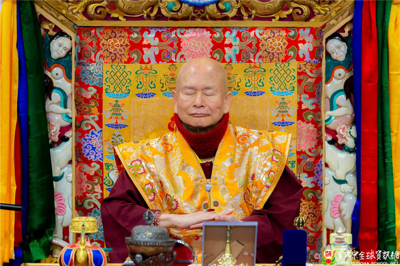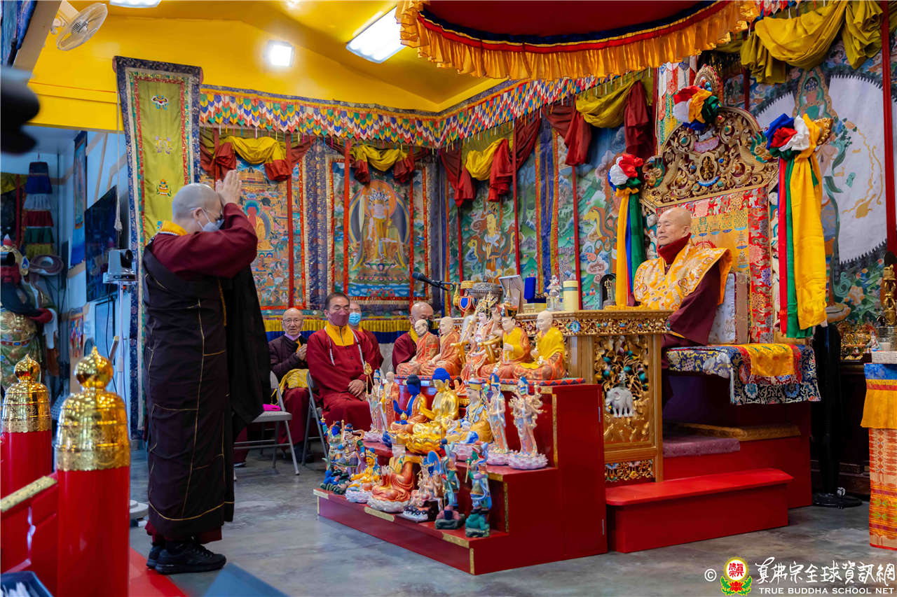 最後,法王告訴大家:「你如果有如來的智慧在心中,你就是世界上的第一富豪。」語畢,現場掌聲如雷。法王帶領大眾頂禮壇城後,便與zoom上弟子們打招呼。接著,法王給予現場與會大眾殊勝的「大隨求菩薩法」灌頂,法會到此圓滿結束。