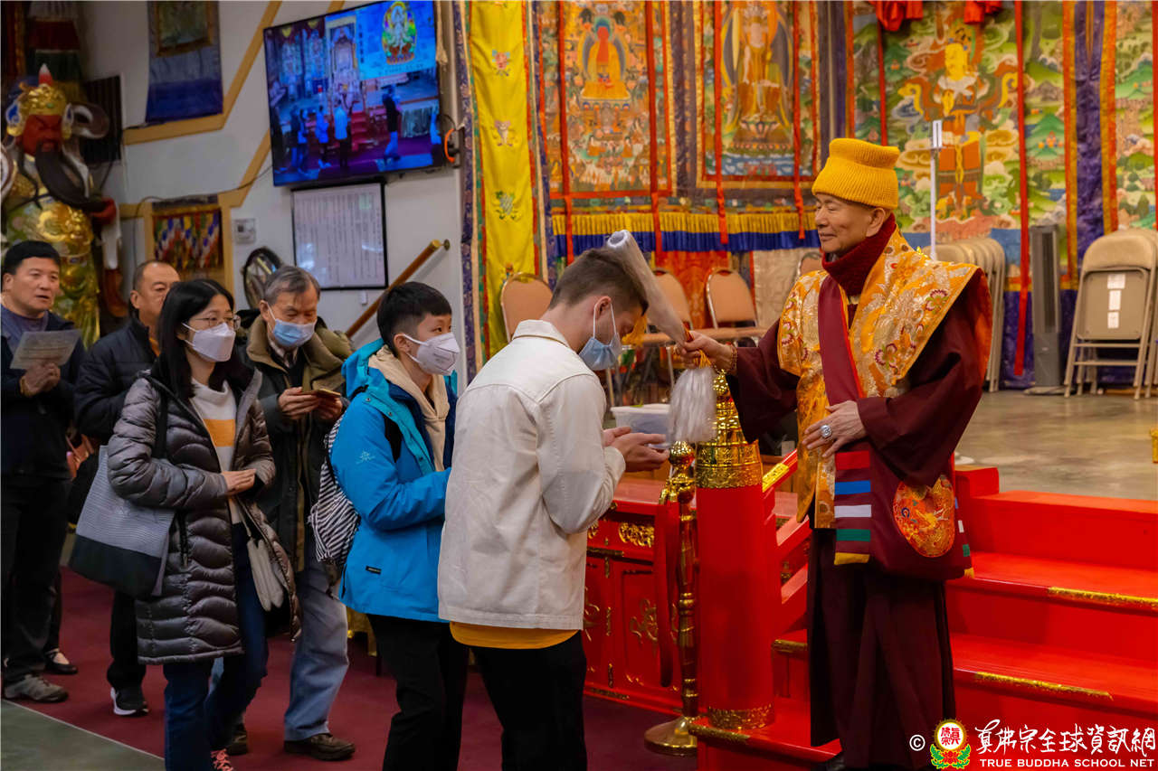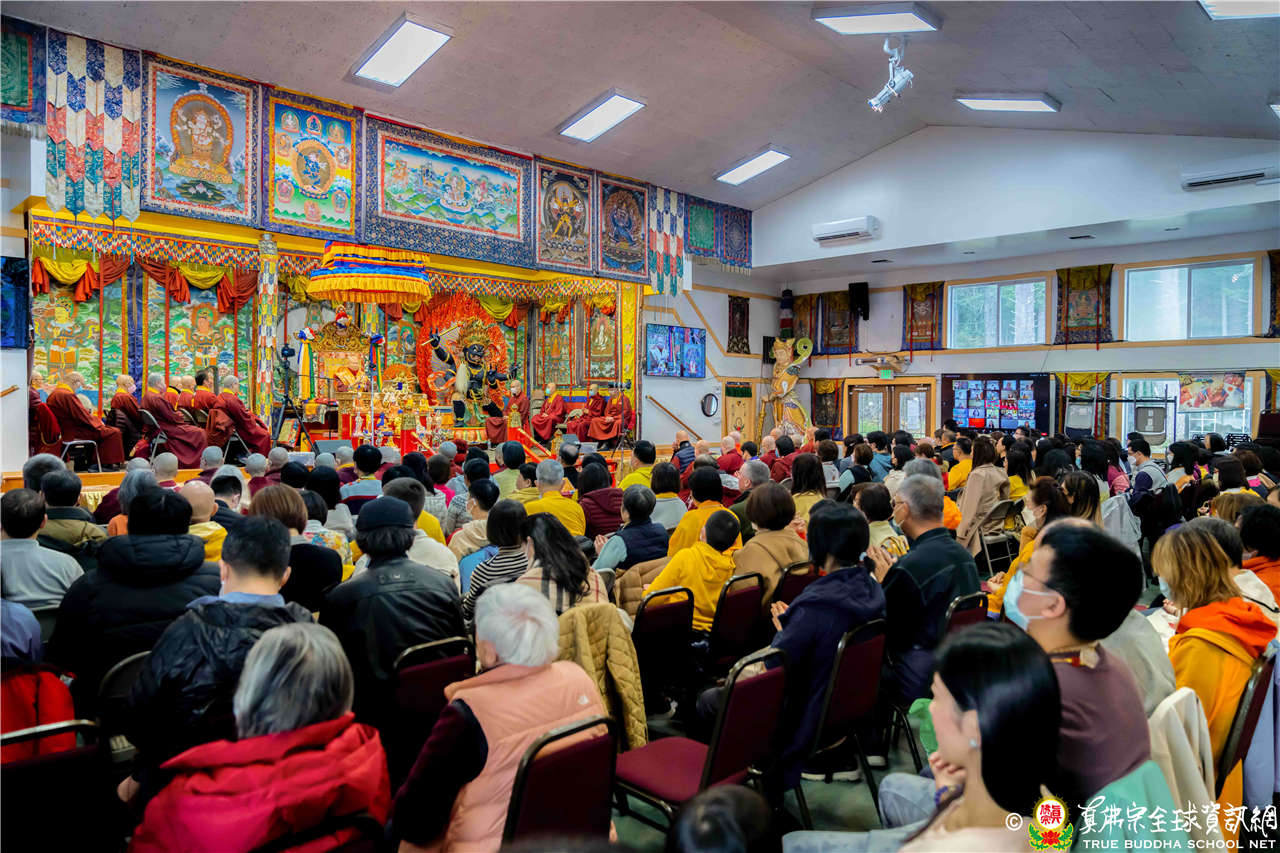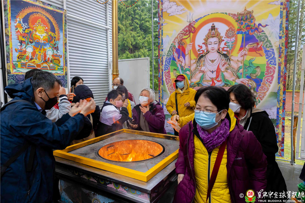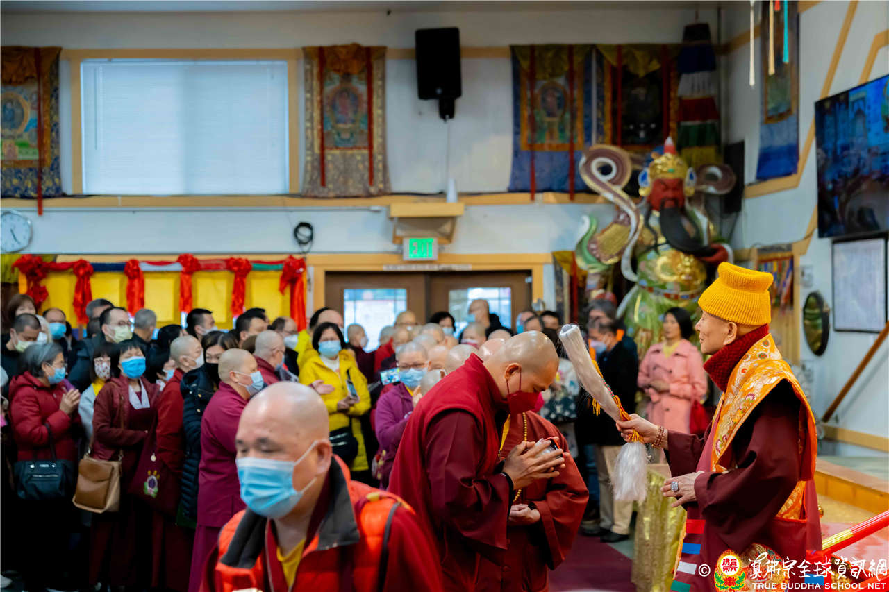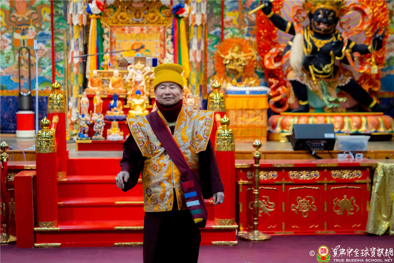 最後,法王告訴大家:「你如果有如來的智慧在心中,你就是世界上的第一富豪。」語畢,現場掌聲如雷。法王帶領大眾頂禮壇城後,便與zoom上弟子們打招呼。接著,法王給予現場與會大眾殊勝的「大隨求菩薩法」灌頂,法會到此圓滿結束。