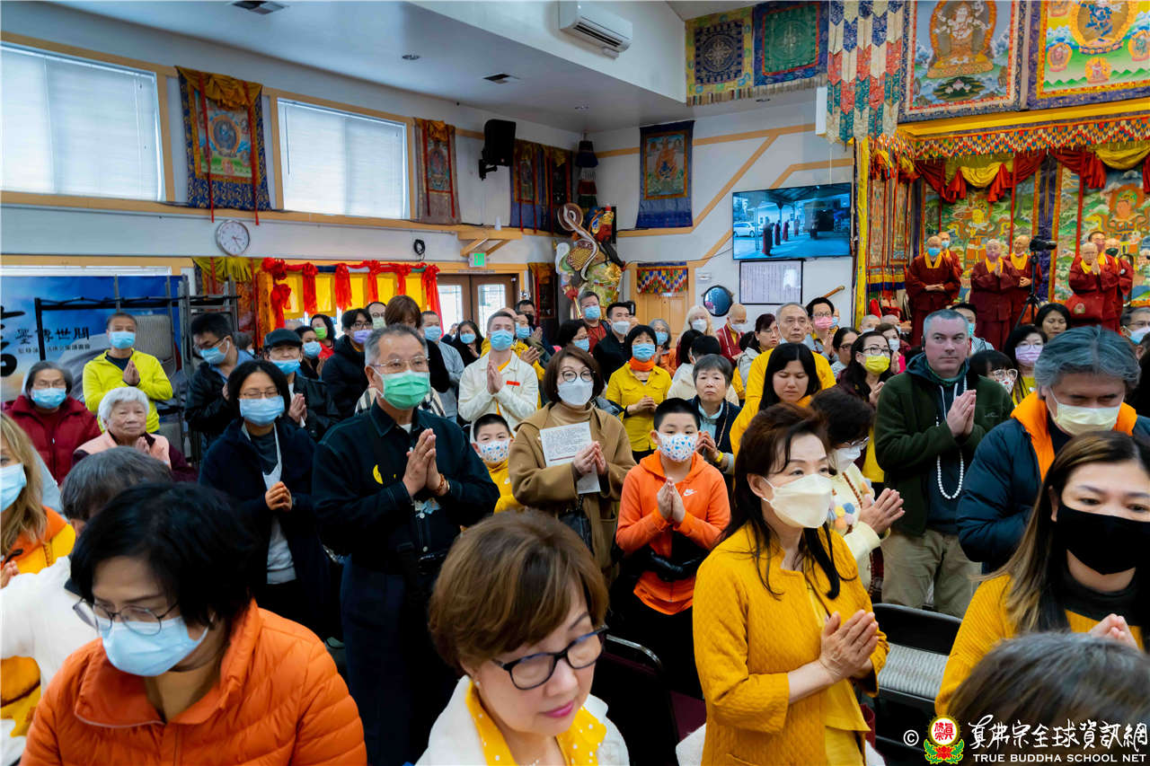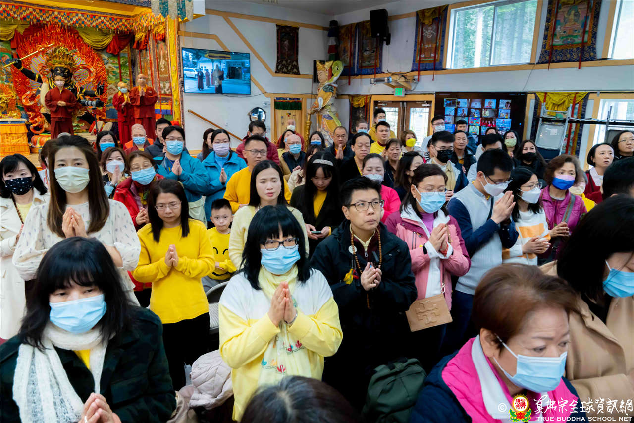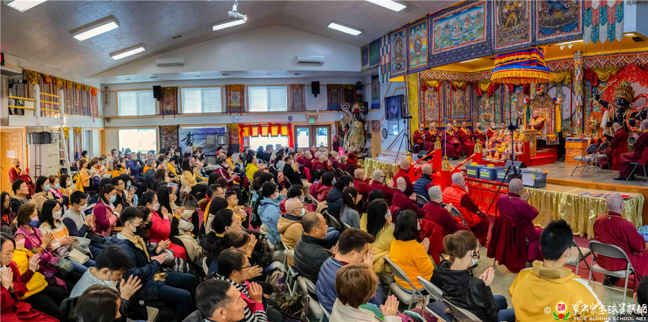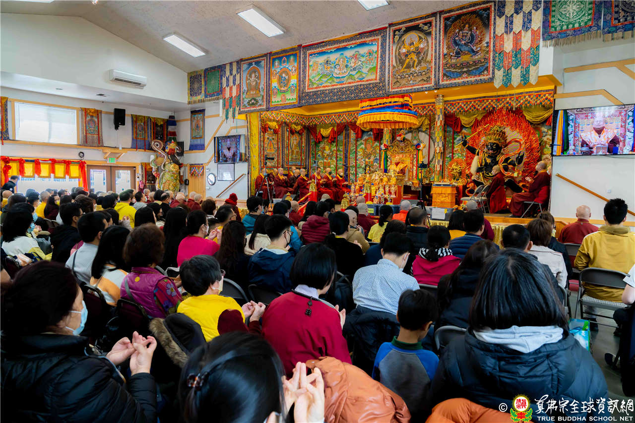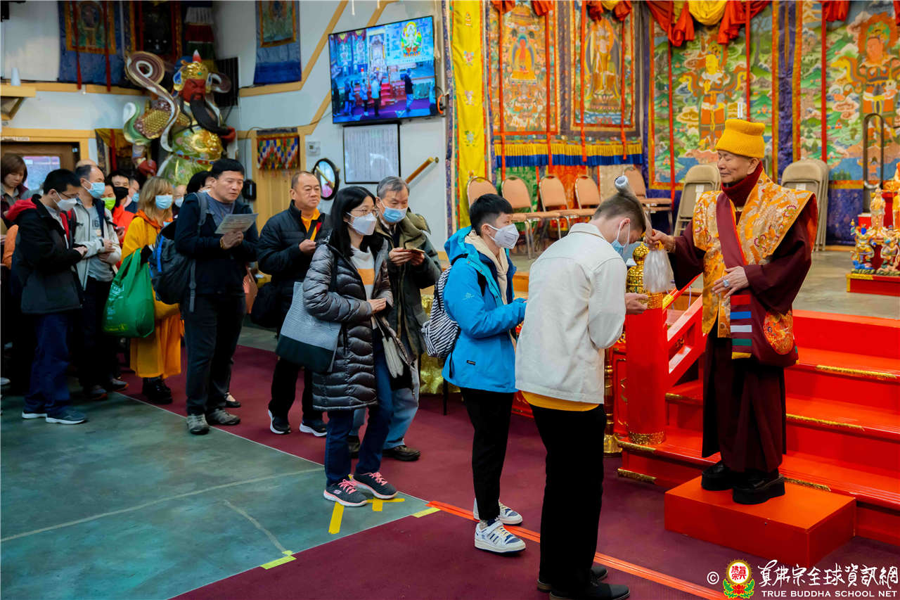 最後,法王告訴大家:「你如果有如來的智慧在心中,你就是世界上的第一富豪。」語畢,現場掌聲如雷。法王帶領大眾頂禮壇城後,便與zoom上弟子們打招呼。接著,法王給予現場與會大眾殊勝的「大隨求菩薩法」灌頂,法會到此圓滿結束。