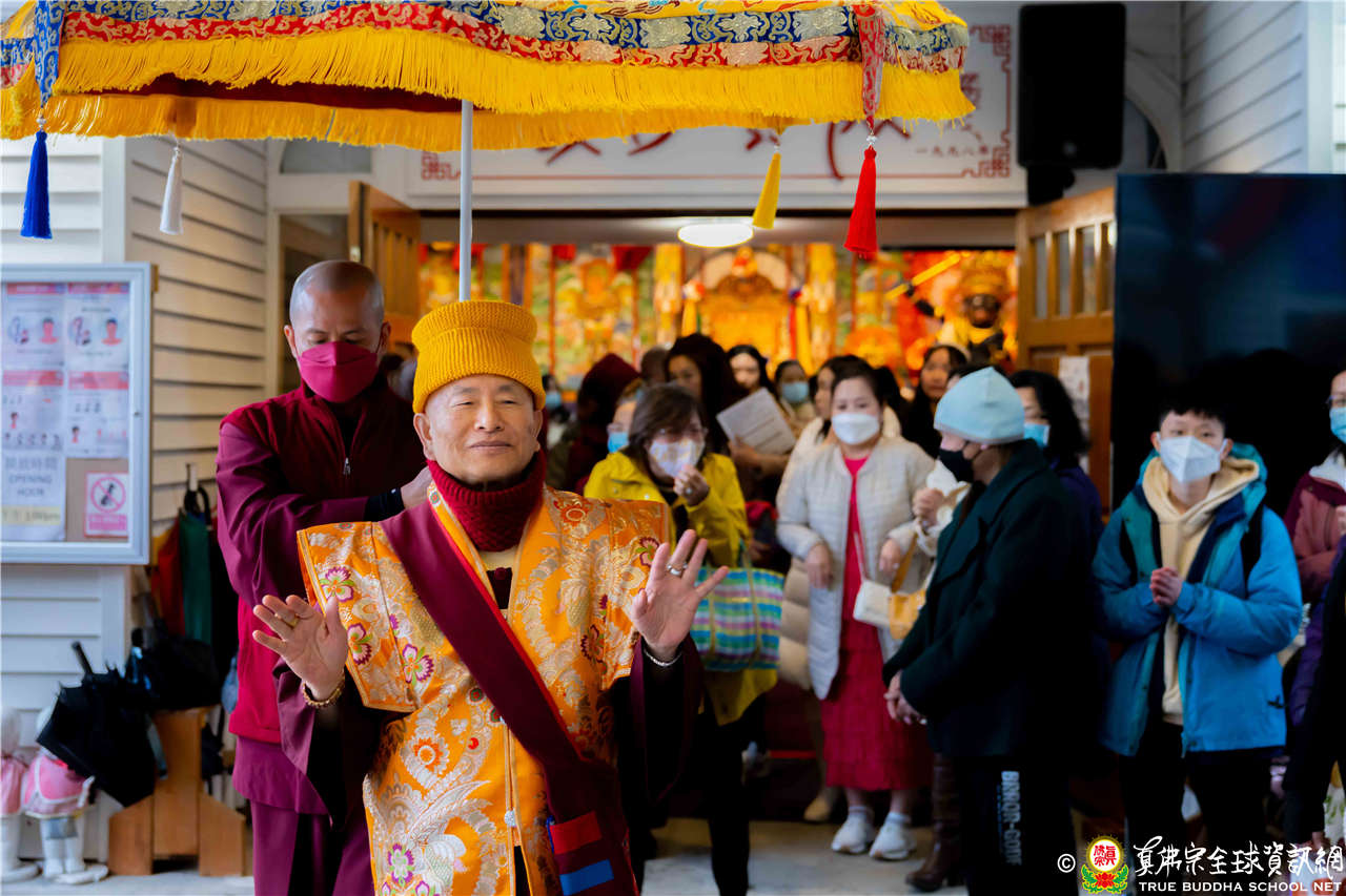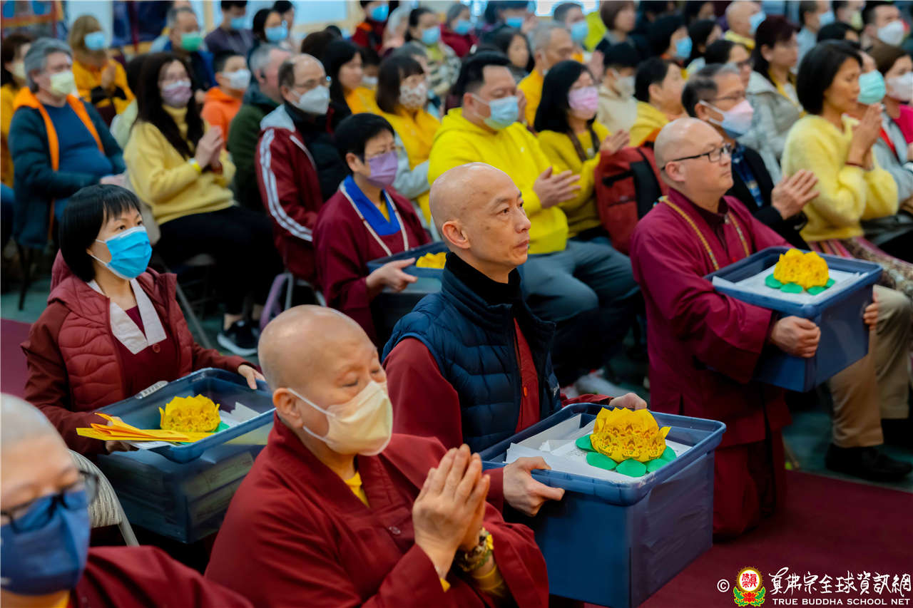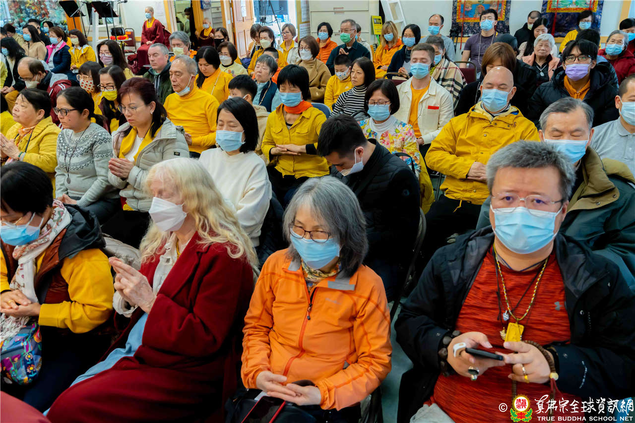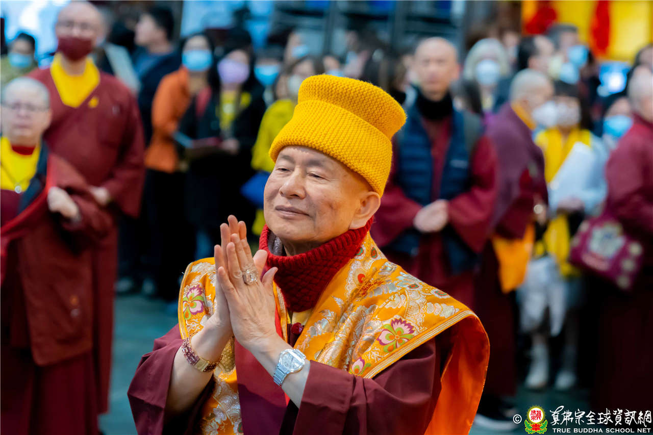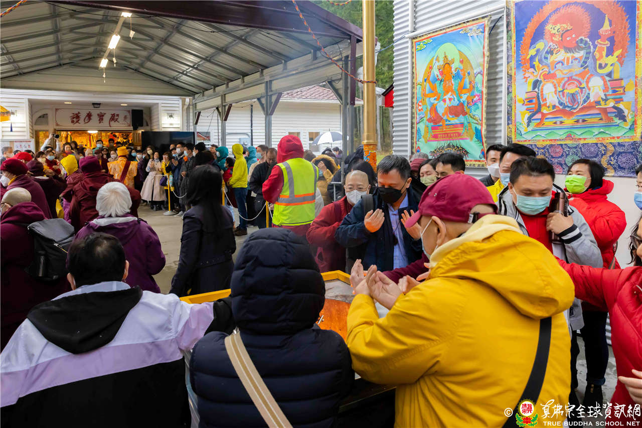 最後,法王告訴大家:「你如果有如來的智慧在心中,你就是世界上的第一富豪。」語畢,現場掌聲如雷。法王帶領大眾頂禮壇城後,便與zoom上弟子們打招呼。接著,法王給予現場與會大眾殊勝的「大隨求菩薩法」灌頂,法會到此圓滿結束。