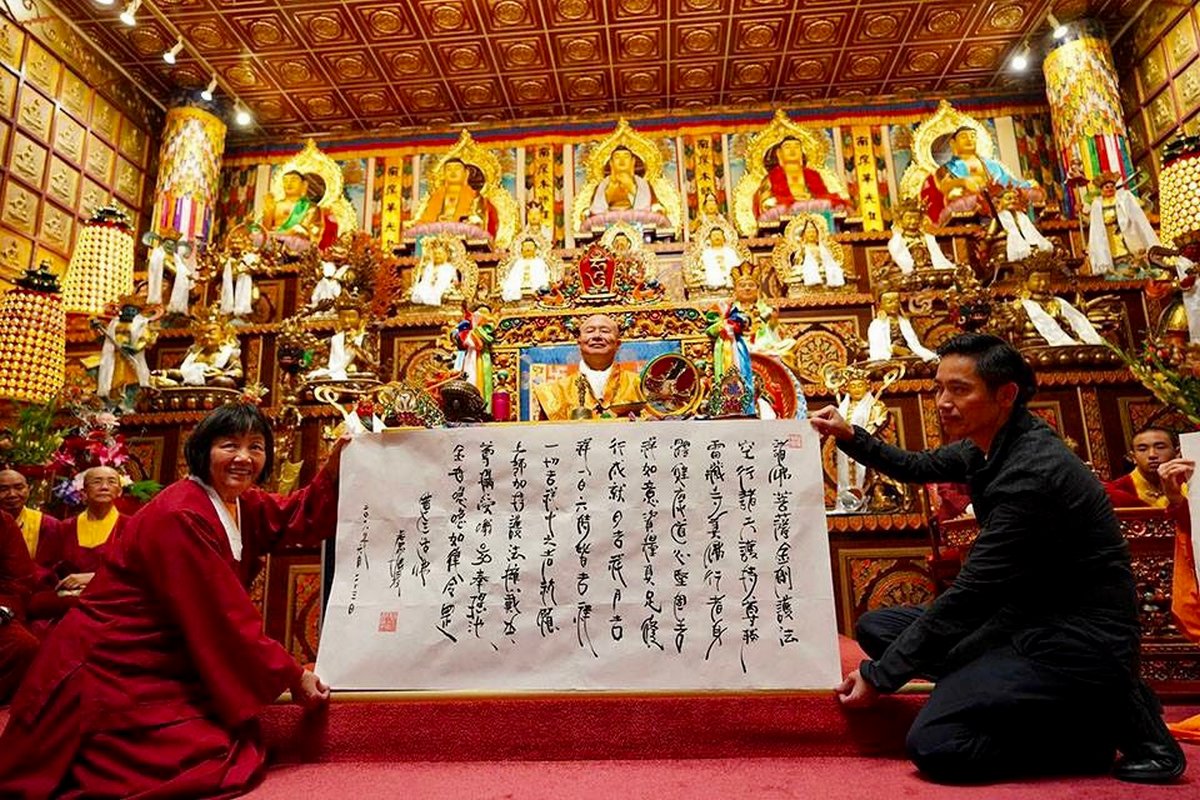 2018年6月30日師佛蒞臨主持「羅天大醮法會」後,隔天7月1日四度佛駕尊勝雷藏寺,加持與會大眾及開示,並賜下珍貴的墨寶:「諸佛菩薩、金剛護法、空行諸天,護持尊勝雷藏寺真佛行者身體健康、道心堅固、吉祥如意、資糧具足、修行成就、日吉祥、月吉祥,一日六時皆吉祥,一切吉祥中之者,祈願上師加持,護法擁戴、本尊攝受,嗡、吽、奉瑤池金母喼喼如律令罡。蓮生活佛 盧勝彥合十」字里行間充满師佛對尊勝雷藏寺弟子們的無限關愛、守護與祝福,是真佛弟子畢生的福份、榮幸
