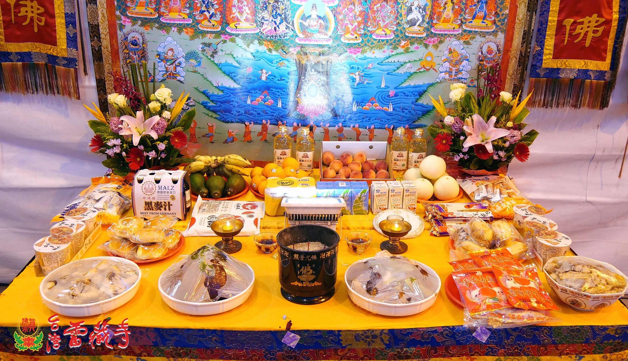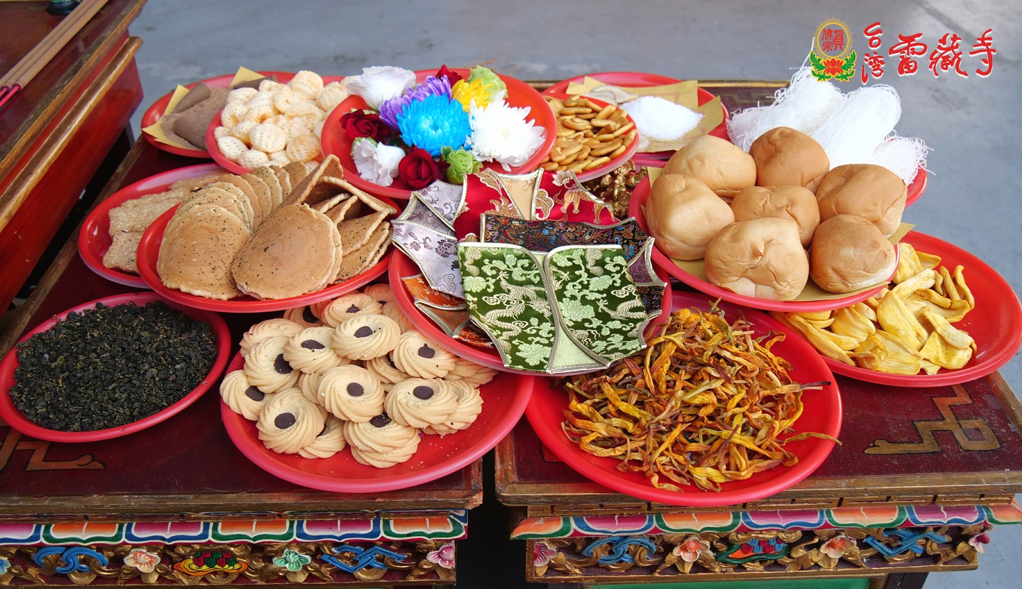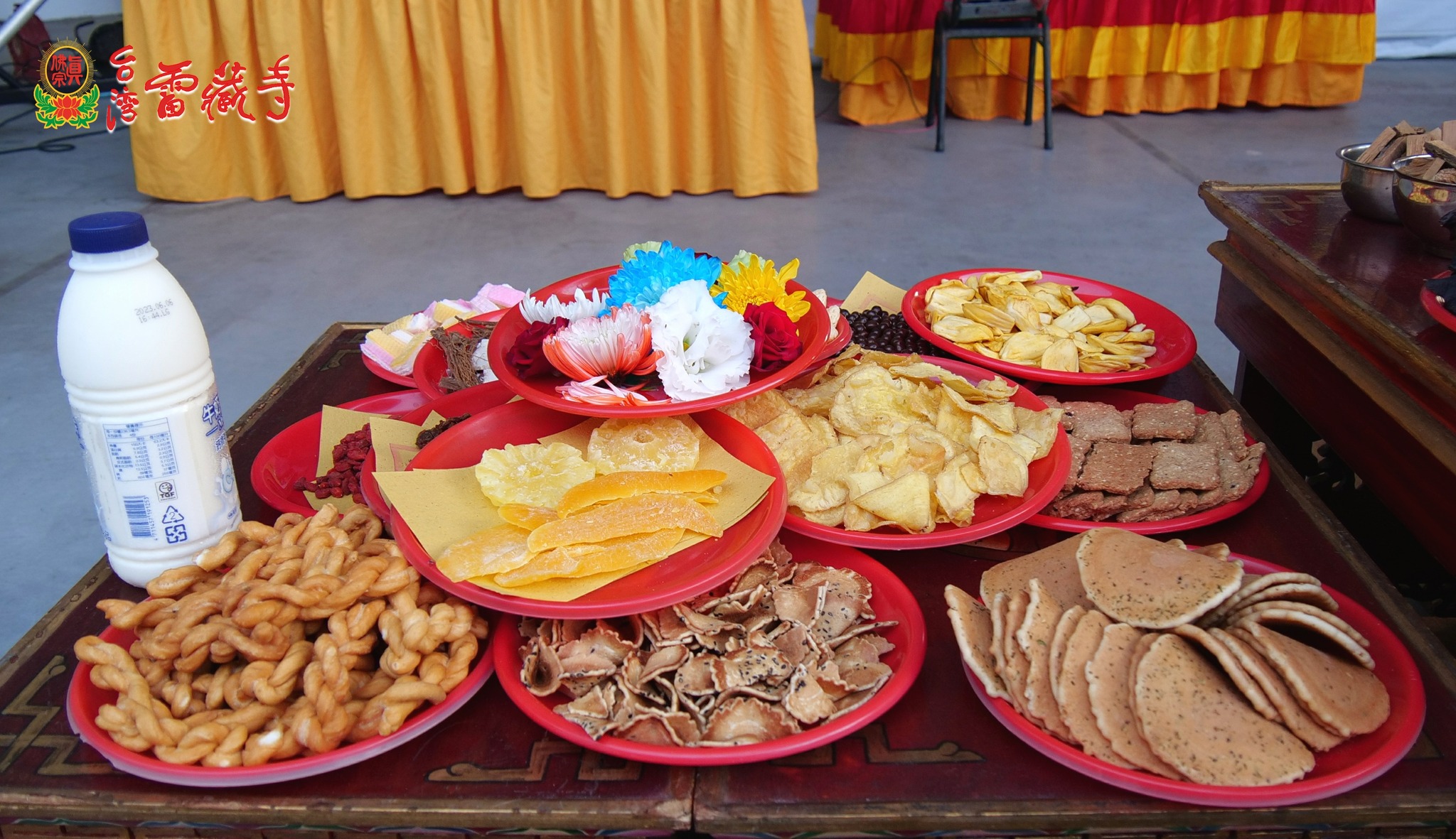 本周的護摩,供品一如往常用心準備,非常豐盛應有盡有。壇城上的諸妙供,蓮雪法師更是每周變化不同佳餚,寺方以虔敬之心供養佛菩薩及護摩主尊,令人讚嘆。