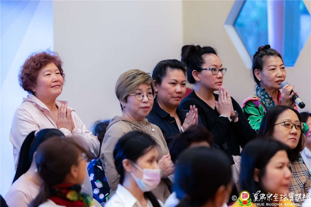 殊勝圓滿的同修結束後,聖尊開示提到觀世音菩薩救度眾生無數,千百億化身,有許多關於觀世音菩薩的感應事蹟,是很靈感的菩薩。早期台灣家庭的佛堂都有以觀世音菩薩為主尊的繪像,觀世音菩薩在中間,旁邊是善財童子、良女,以及含著念珠的太平鳥。聖尊母親是太平鳥的轉世,孫女盧音是良女的轉世。