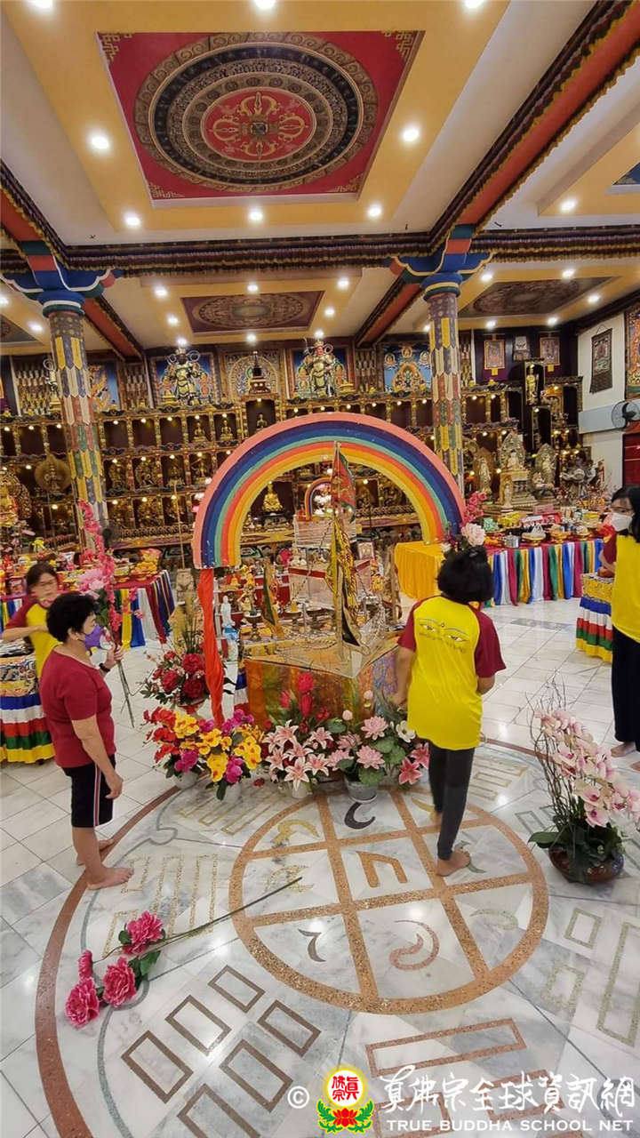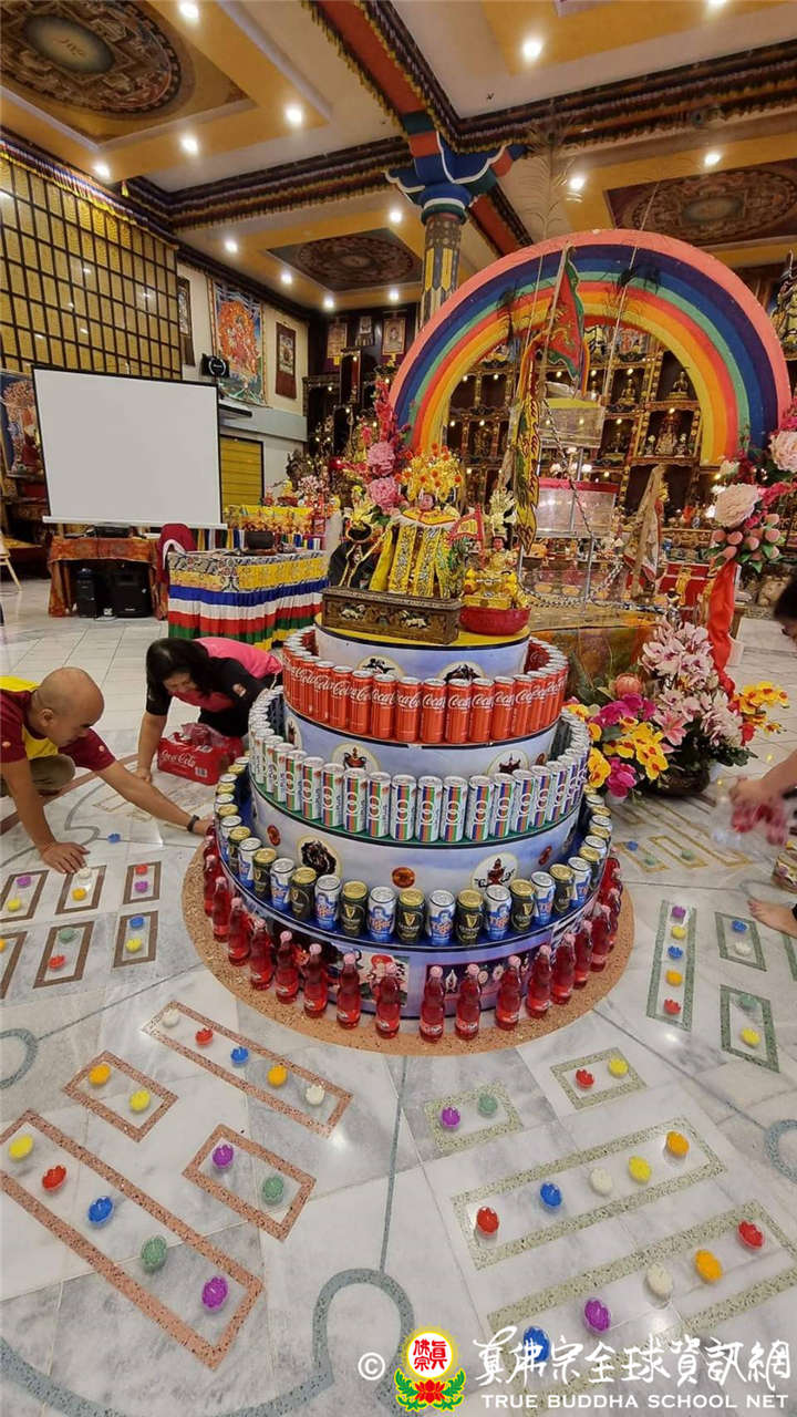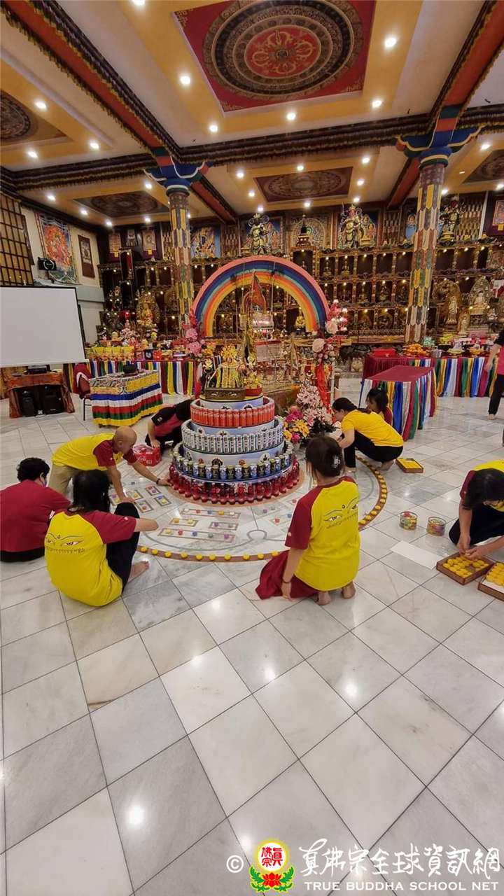 2023佛誕請佛住世薈供/水供法會 花絮報導 世界各地道場響應宗委會號召2023年6月24日全球雲端連線請佛住世薈供/水供法會,進入密集準備階段。 在馬來西亞真佛宗怡保雷藏寺,同門互相合作帮助为準備6月24日全球真佛宗水供大法會佈置金母水供莊嚴壇城。