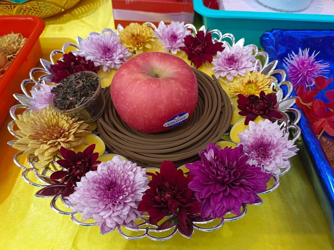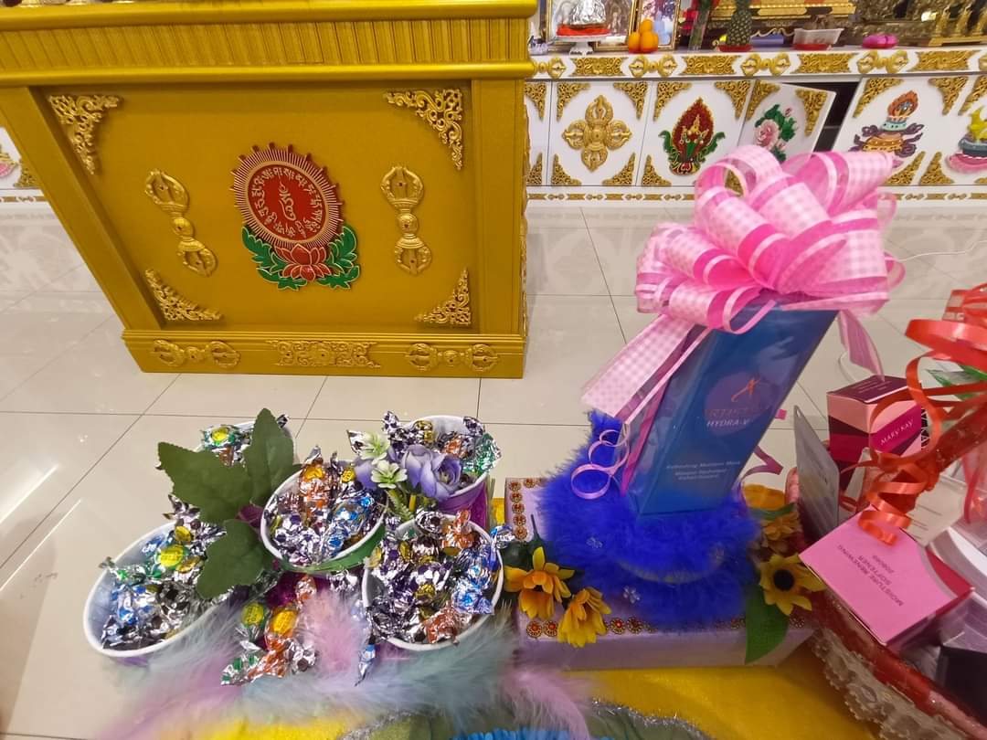 傳律雷藏寺義工們非常用心的準備供品,一一分別供養師尊、大力金剛、空行護法、過世父母、地神、鬼神眾、冤情障類等等。每樣供品無不是精心包裝。