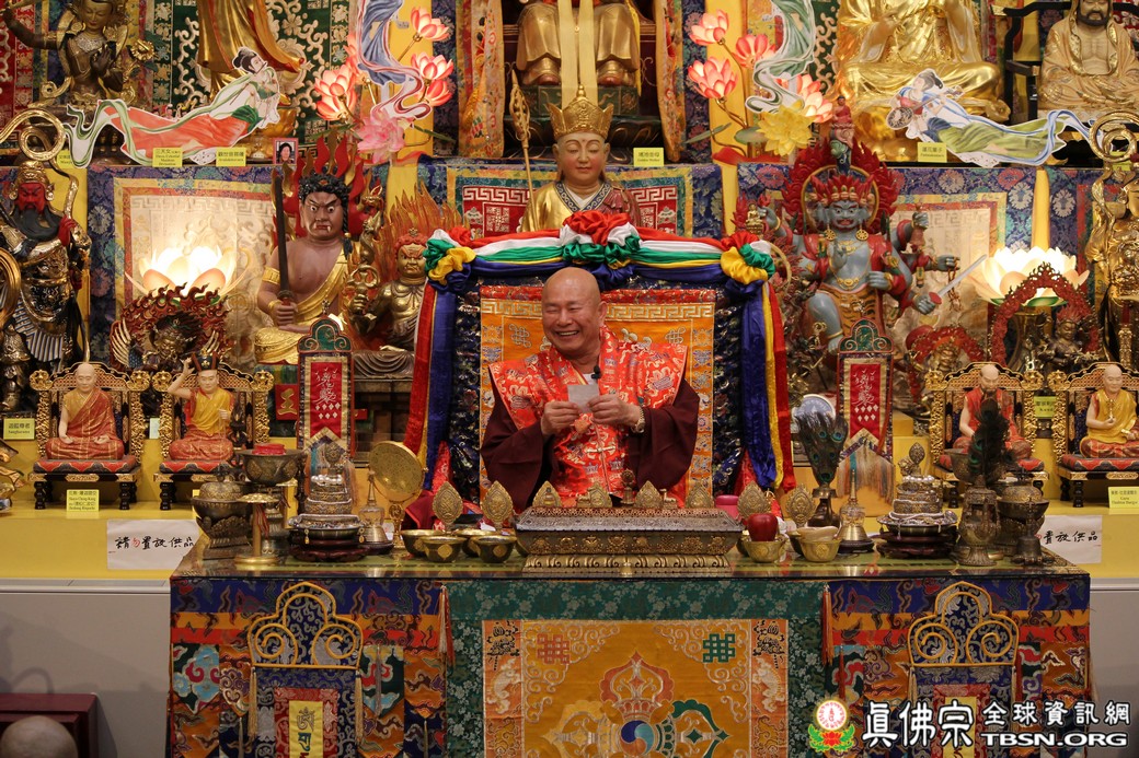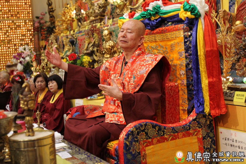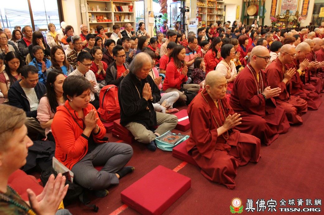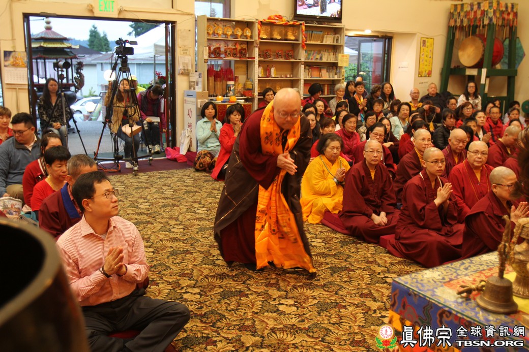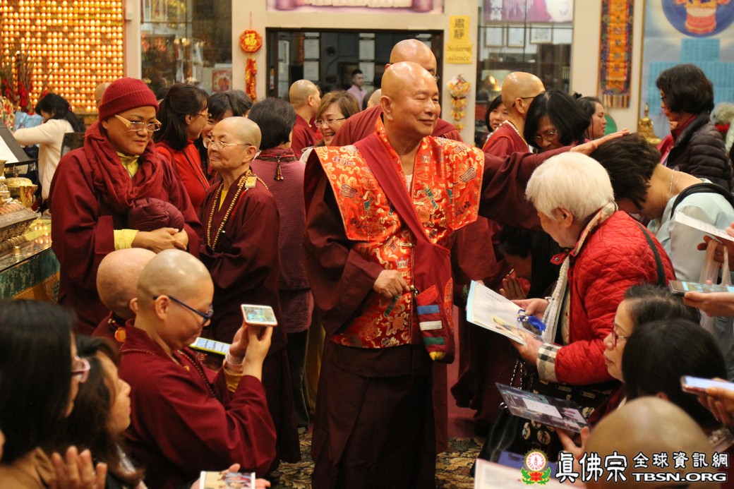 精闢的道果開示結束後,雷藏寺唱誦組帶領大眾唱誦阿彌陀佛聖號。聖尊為新皈依弟子做皈依灌頂,並加持大悲咒水、佛像開光。臨行前,聖尊慈悲為與會大眾摩頂加持。迎師隊伍莊嚴整齊的恭送聖尊回到密苑,全體向根本上師虔誠頂禮,感恩根本上師的珍貴法語開示。