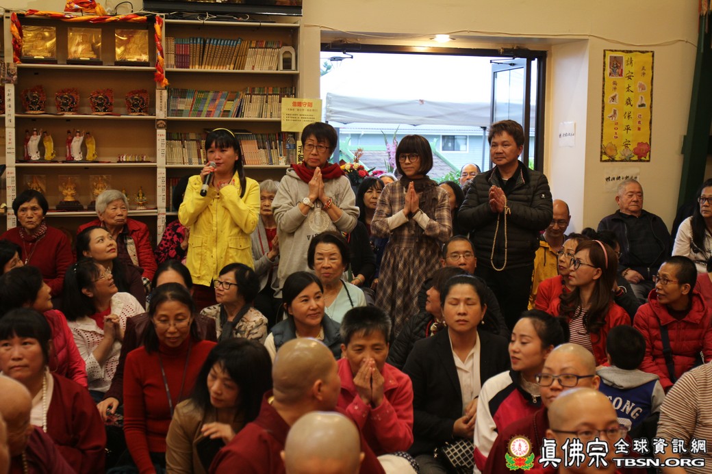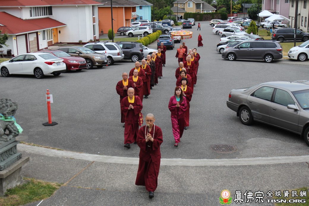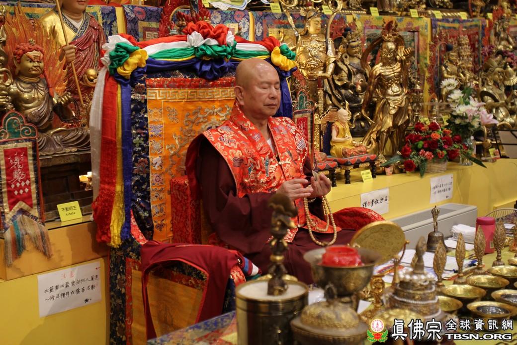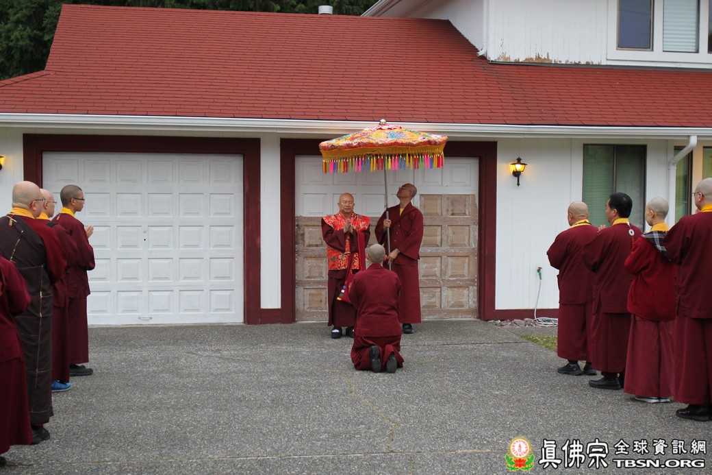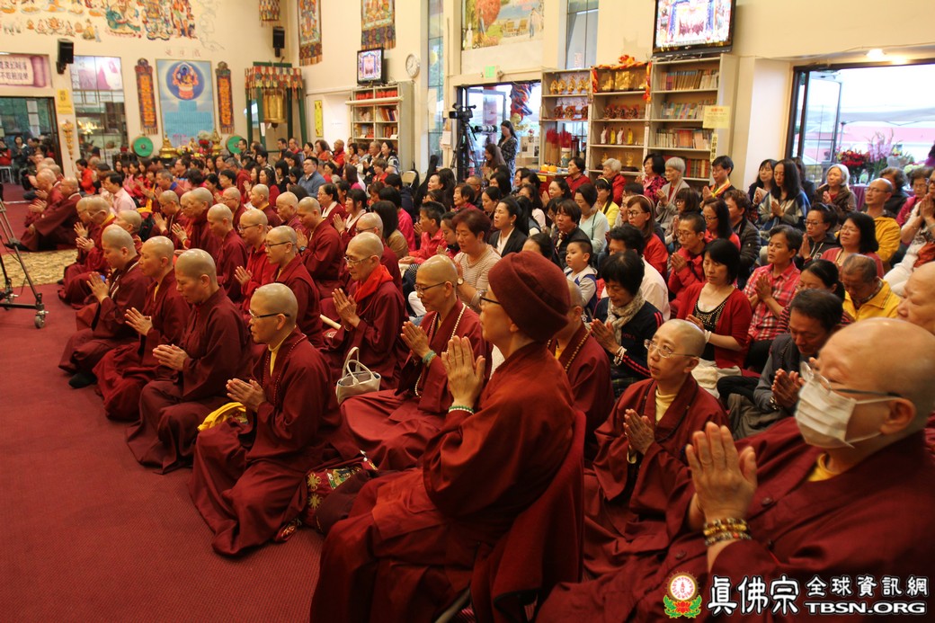 精闢的道果開示結束後,雷藏寺唱誦組帶領大眾唱誦阿彌陀佛聖號。聖尊為新皈依弟子做皈依灌頂,並加持大悲咒水、佛像開光。臨行前,聖尊慈悲為與會大眾摩頂加持。迎師隊伍莊嚴整齊的恭送聖尊回到密苑,全體向根本上師虔誠頂禮,感恩根本上師的珍貴法語開示。