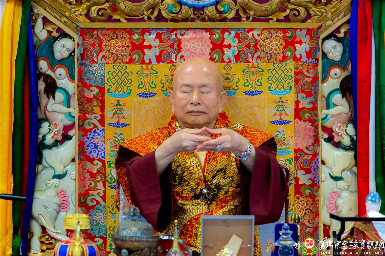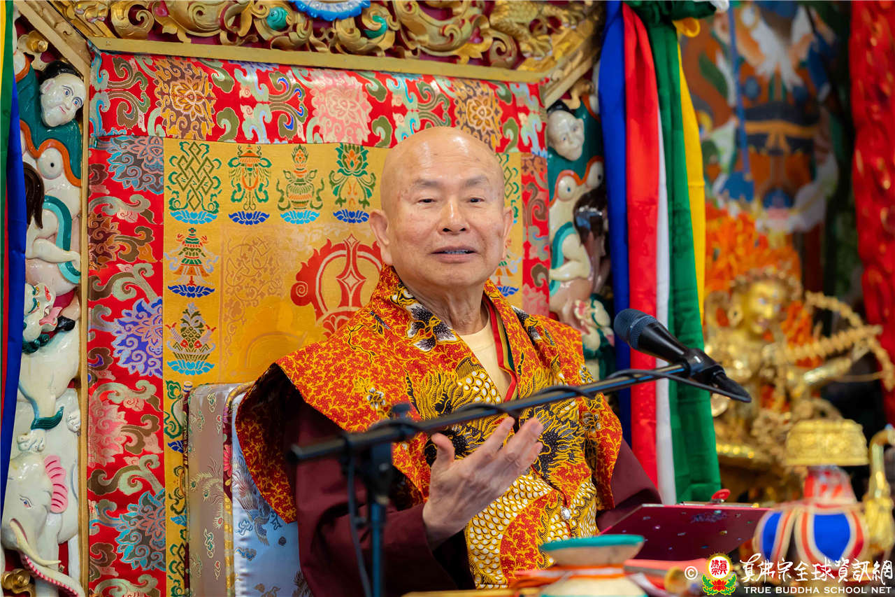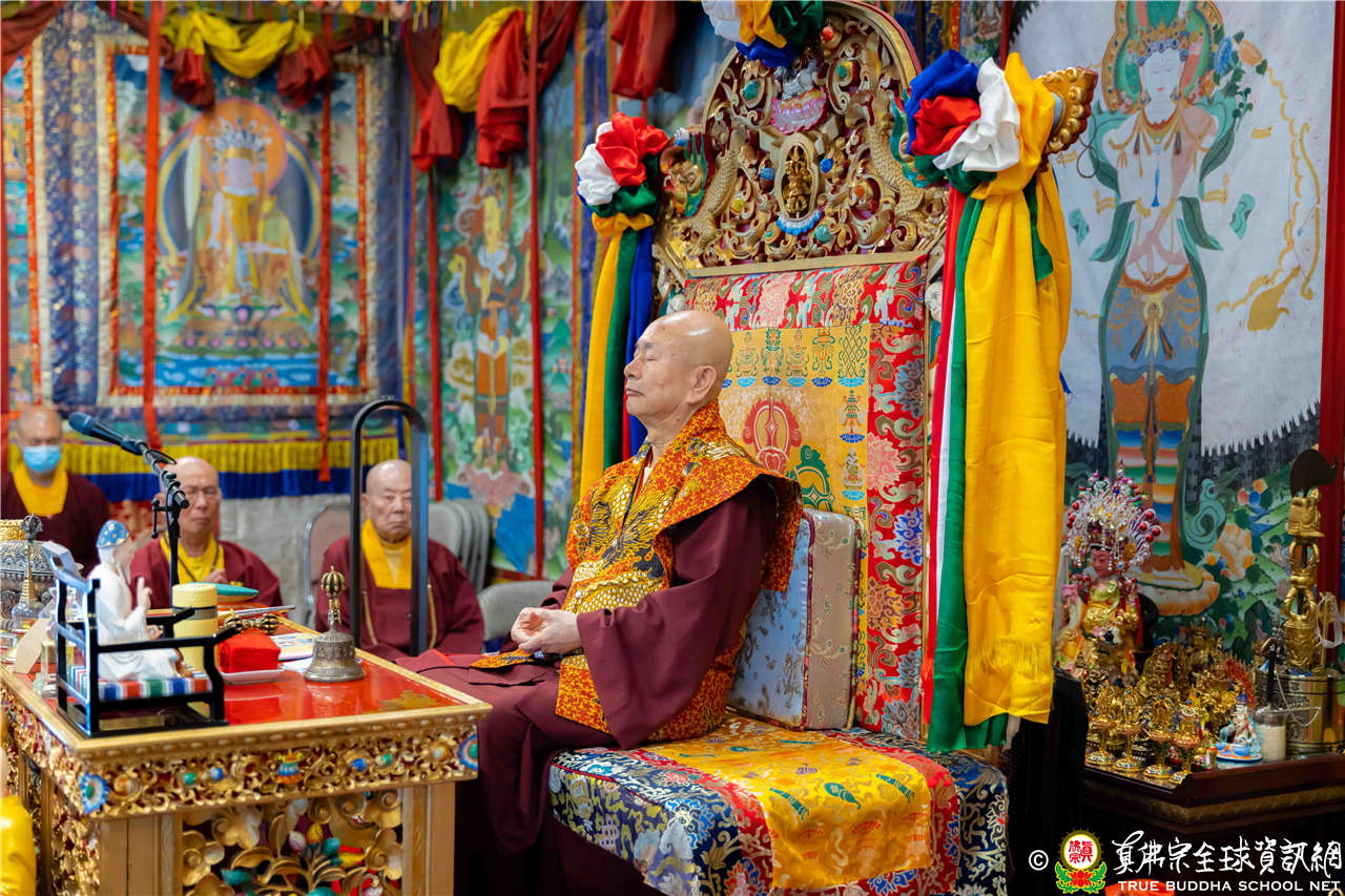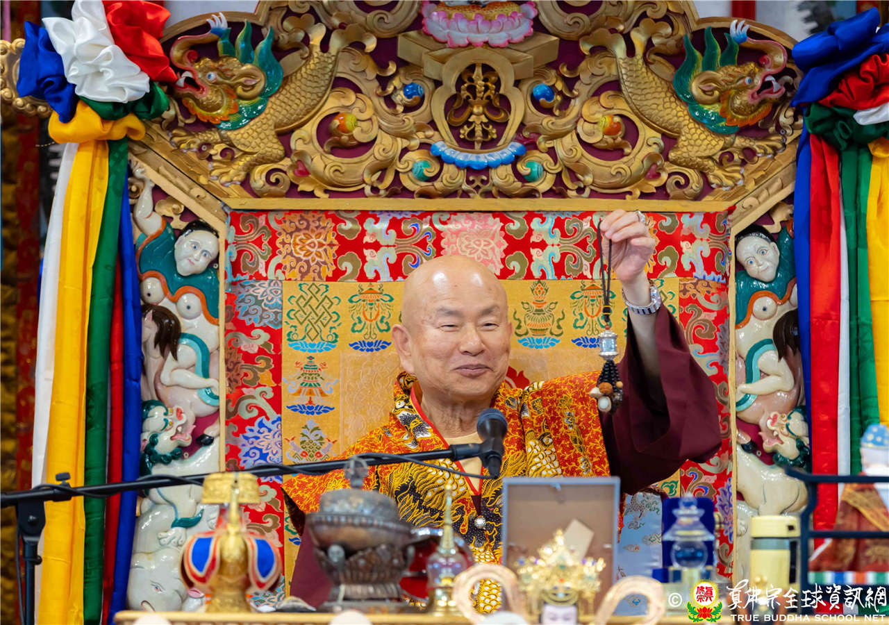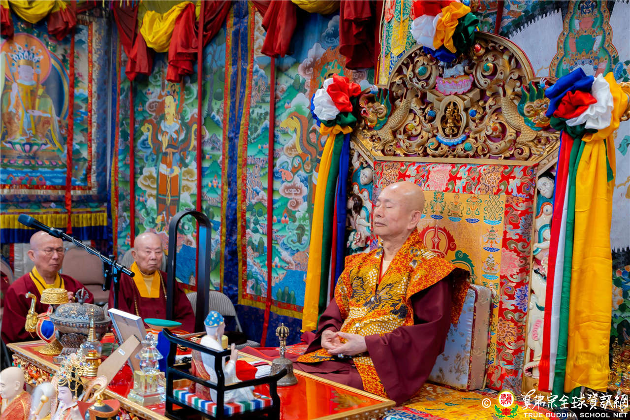 2023年6月25日,西雅圖彩虹雷藏寺恭請聖尊蓮生法王主壇長壽佛護摩法會。法王預告下個星期日護摩法會主尊為滿願童子,接著向大家講解滿願童子的咒語和手印。