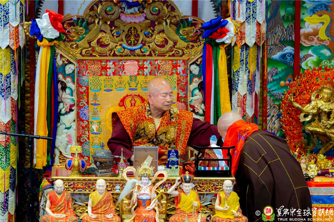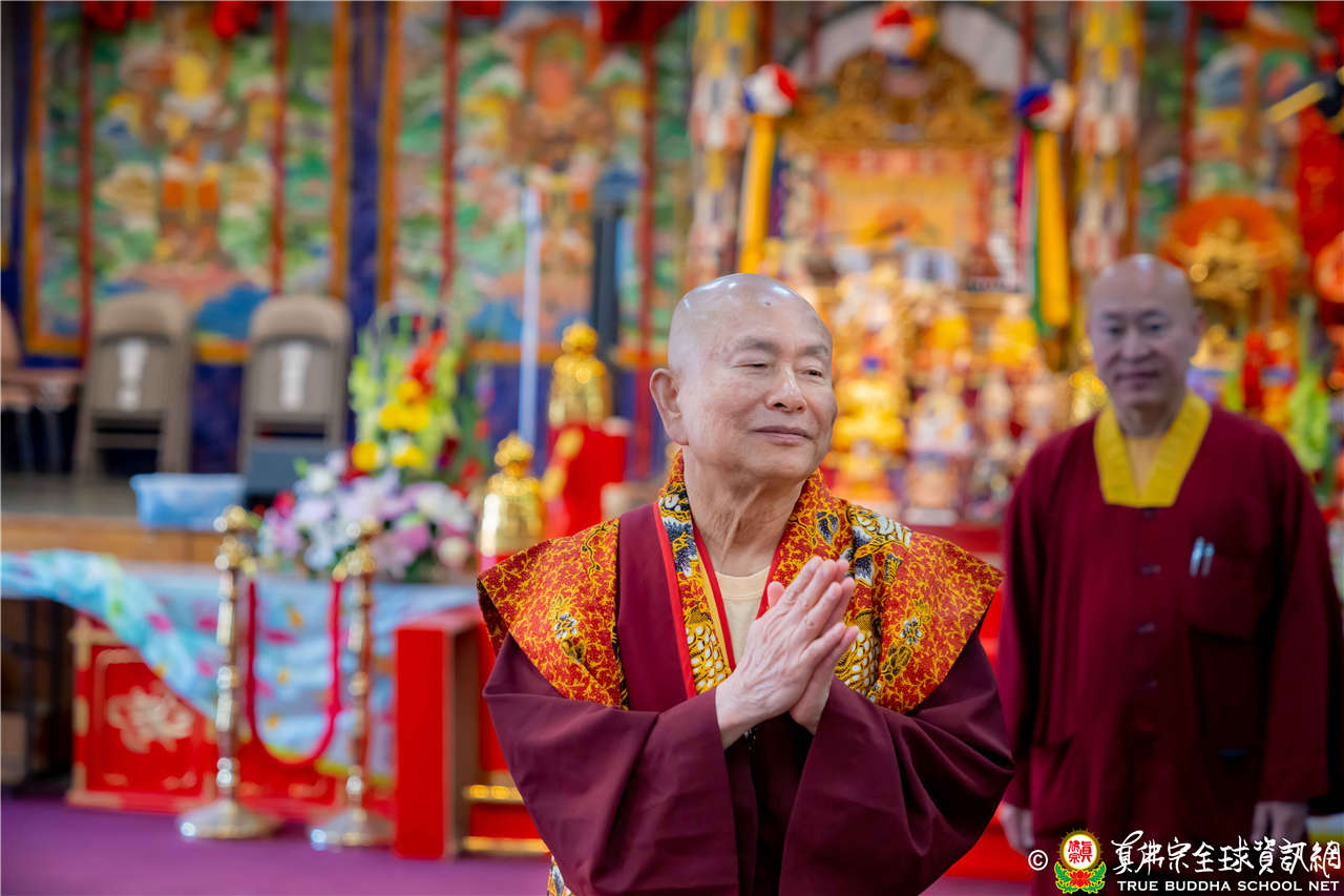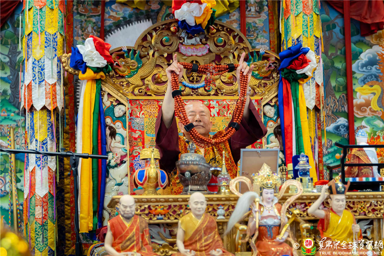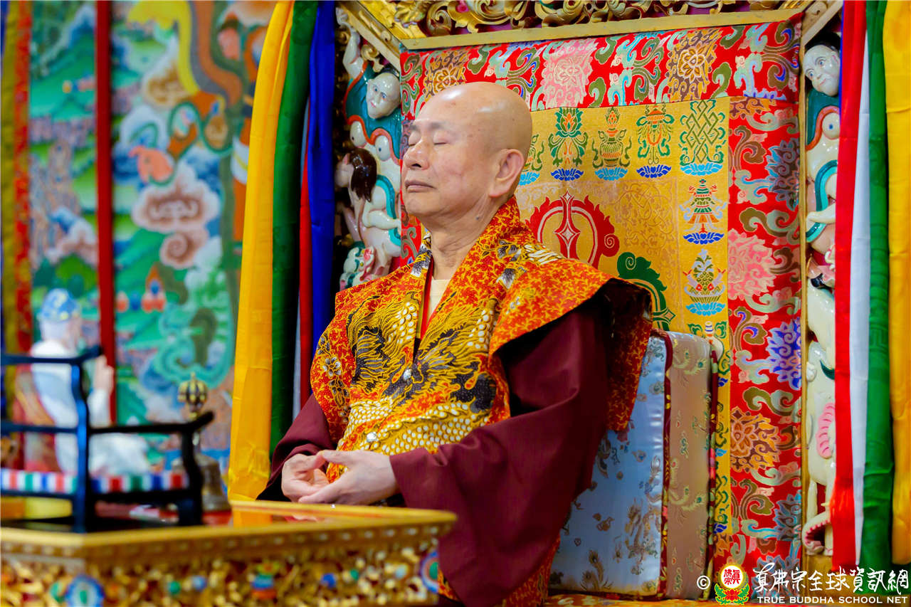 2023年6月25日,西雅圖彩虹雷藏寺恭請聖尊蓮生法王主壇長壽佛護摩法會。法王預告下個星期日護摩法會主尊為滿願童子,接著向大家講解滿願童子的咒語和手印。
