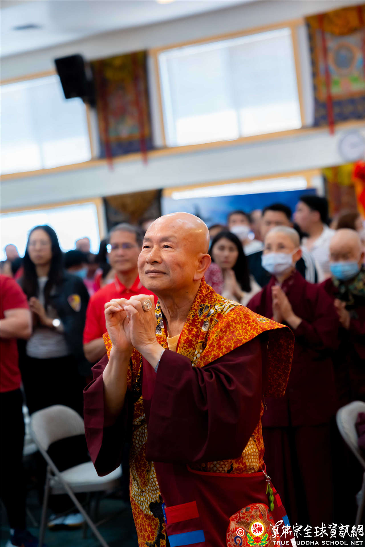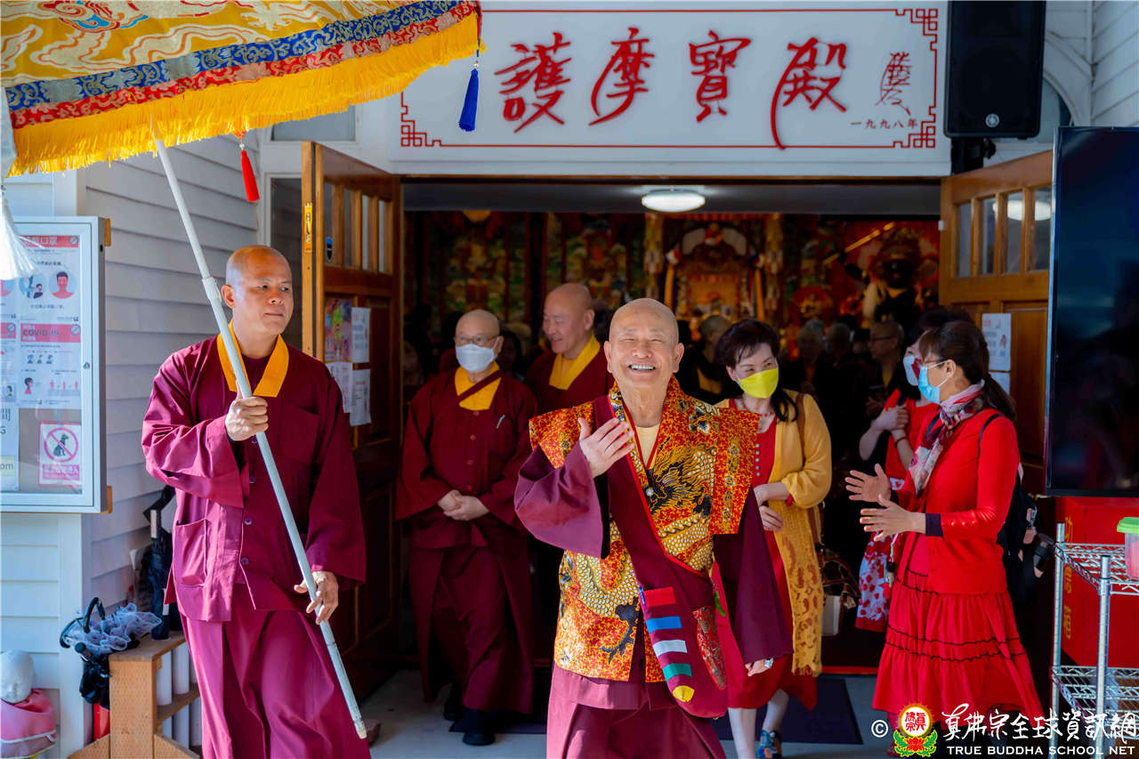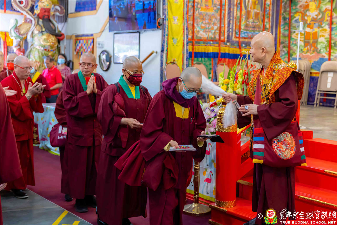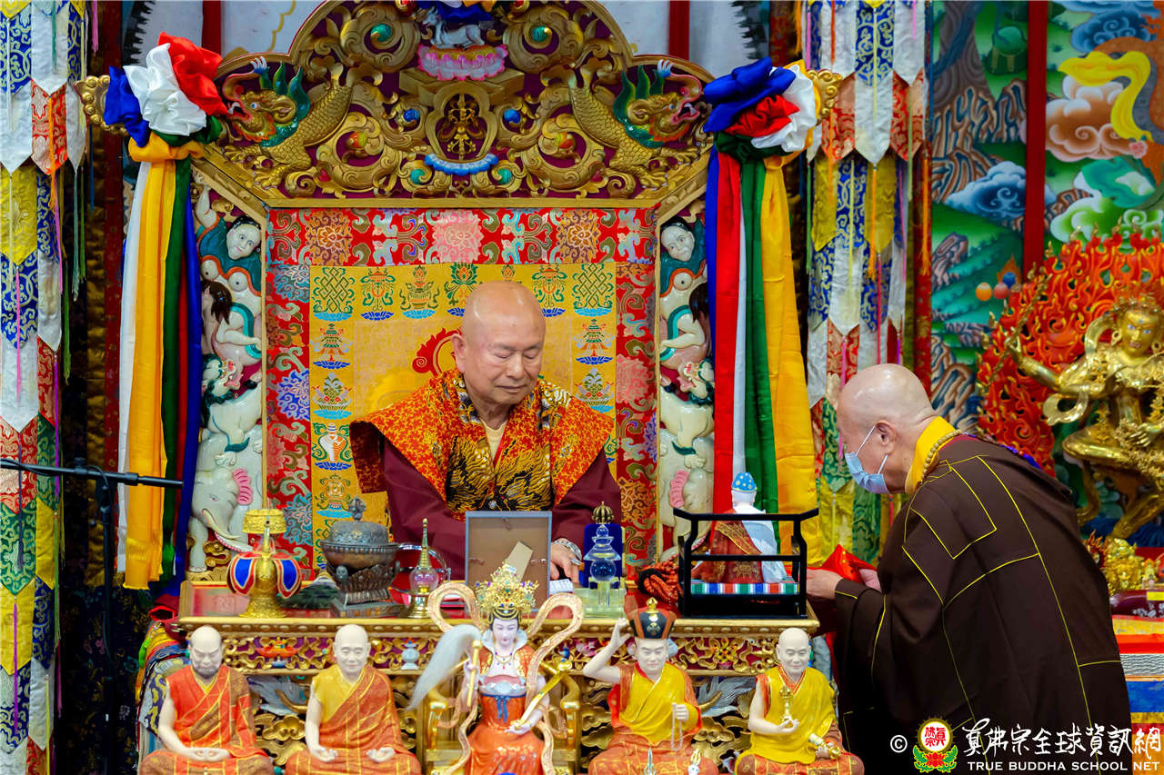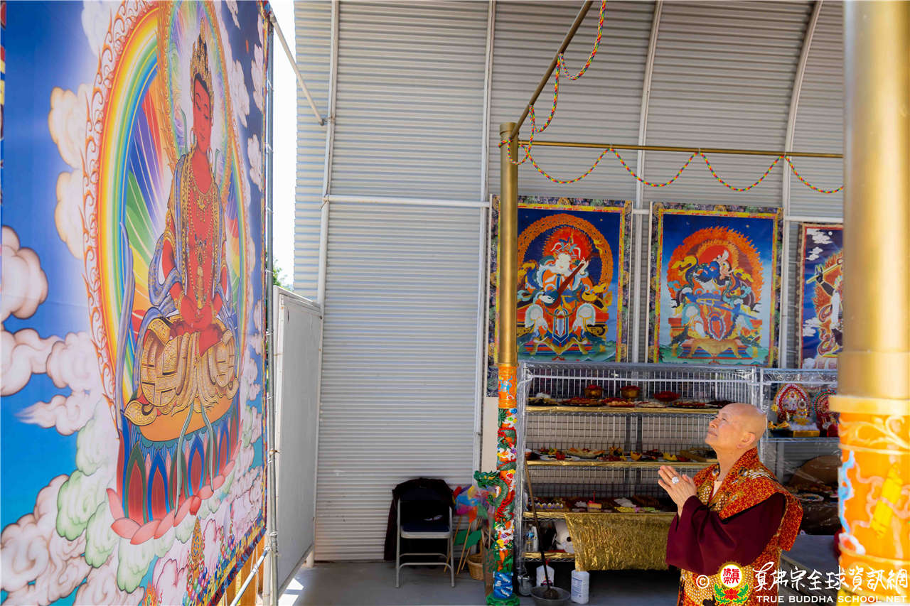 2023年6月25日,西雅圖彩虹雷藏寺恭請聖尊蓮生法王主壇長壽佛護摩法會。法王預告下個星期日護摩法會主尊為滿願童子,接著向大家講解滿願童子的咒語和手印。