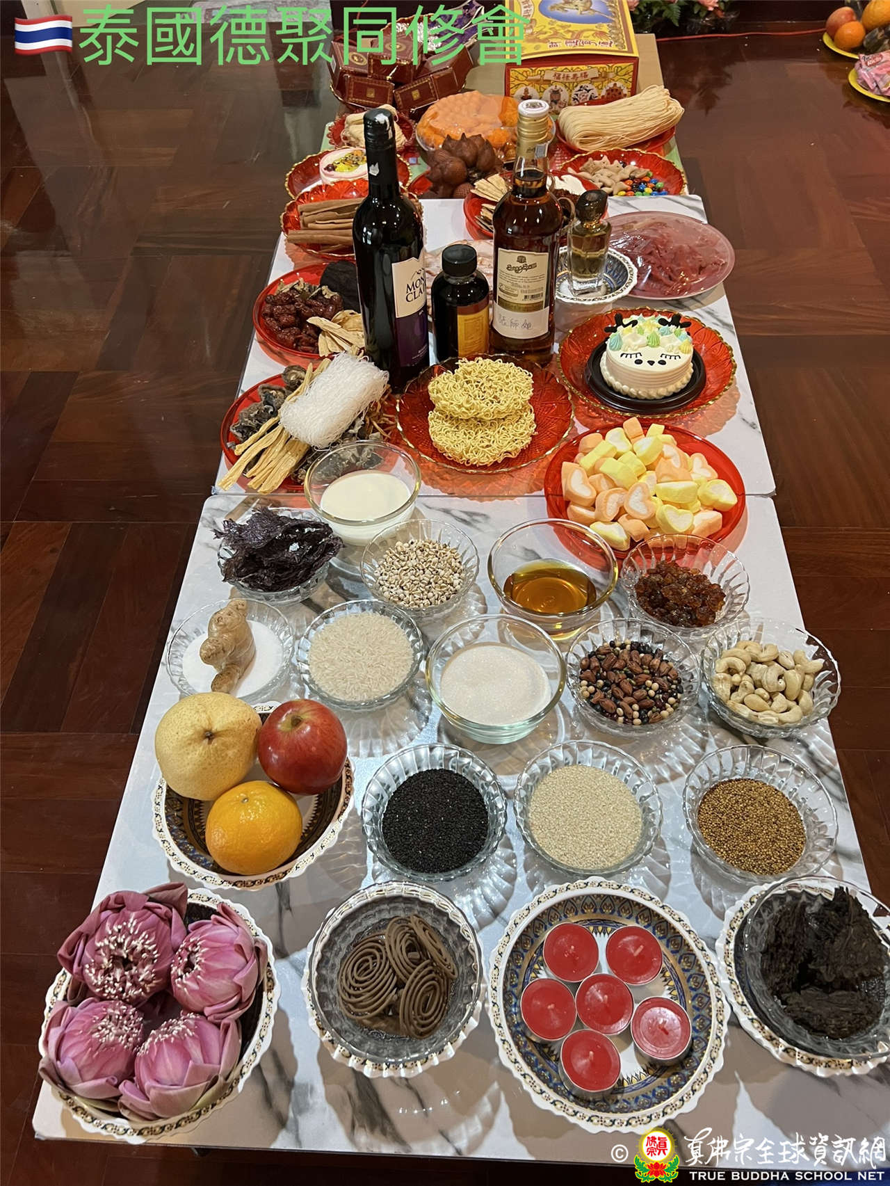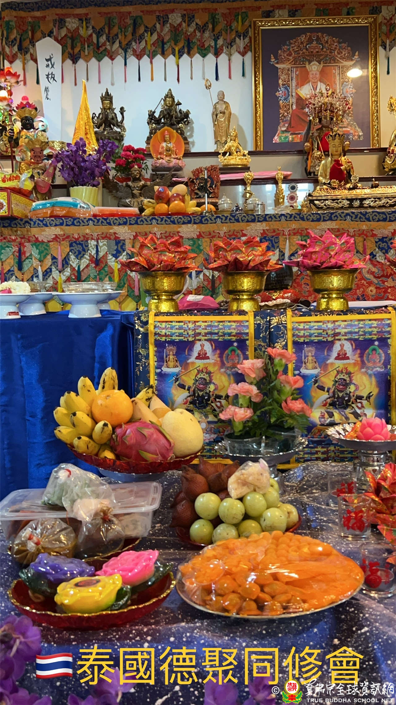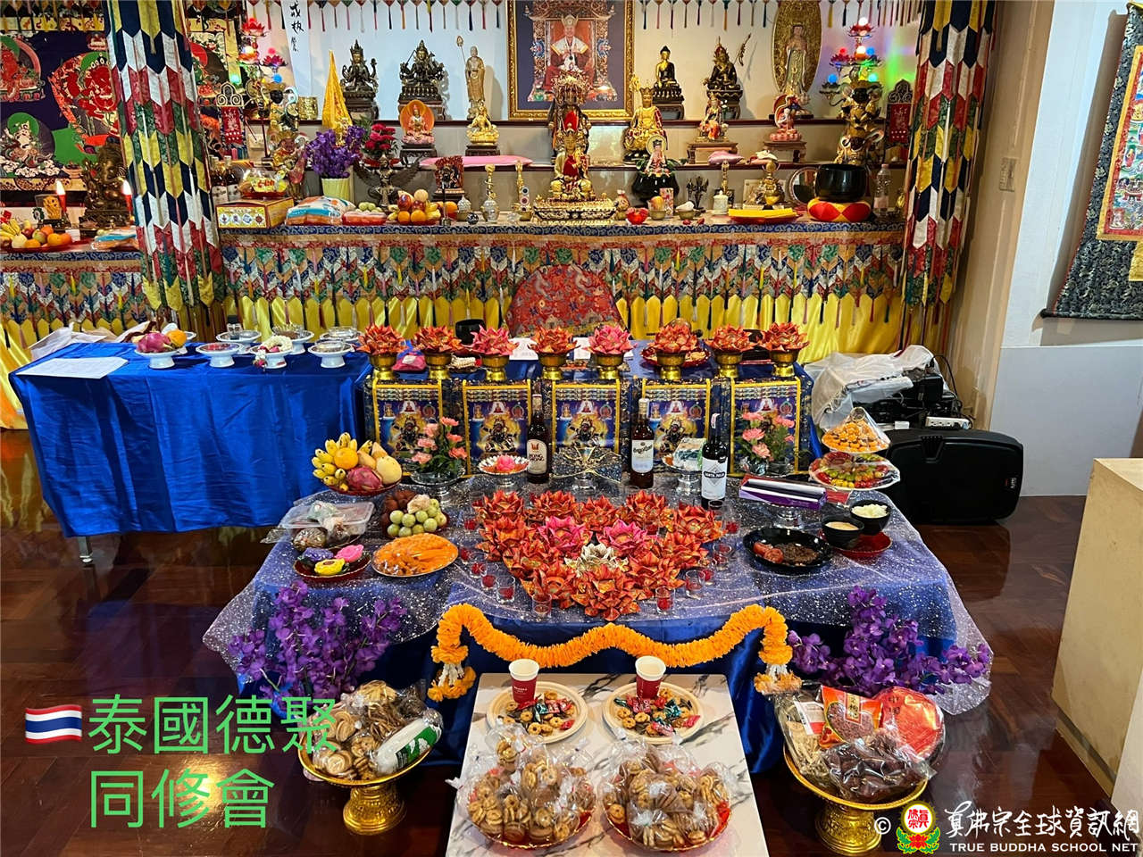 2023年6月24日泰國德聚同修會薈供/水供法會圓滿殊勝 2023年6月24日,在真佛宗宗務委員會的號召下,108座真佛宗道場參與了線上為聖尊蓮生活佛賀壽活動。 泰國德聚同修會共襄盛舉,也參加了此盛會,精心佈壇、如法修持、做廣大供養為師佛賀壽,迴向師佛健康安泰、長轉法輪,請佛住世。 全球真佛宗道場,心與心頻率一致的同修,共同的心念令人天震撼! 祝聖尊蓮生活佛農曆五月十八佛誕吉祥!