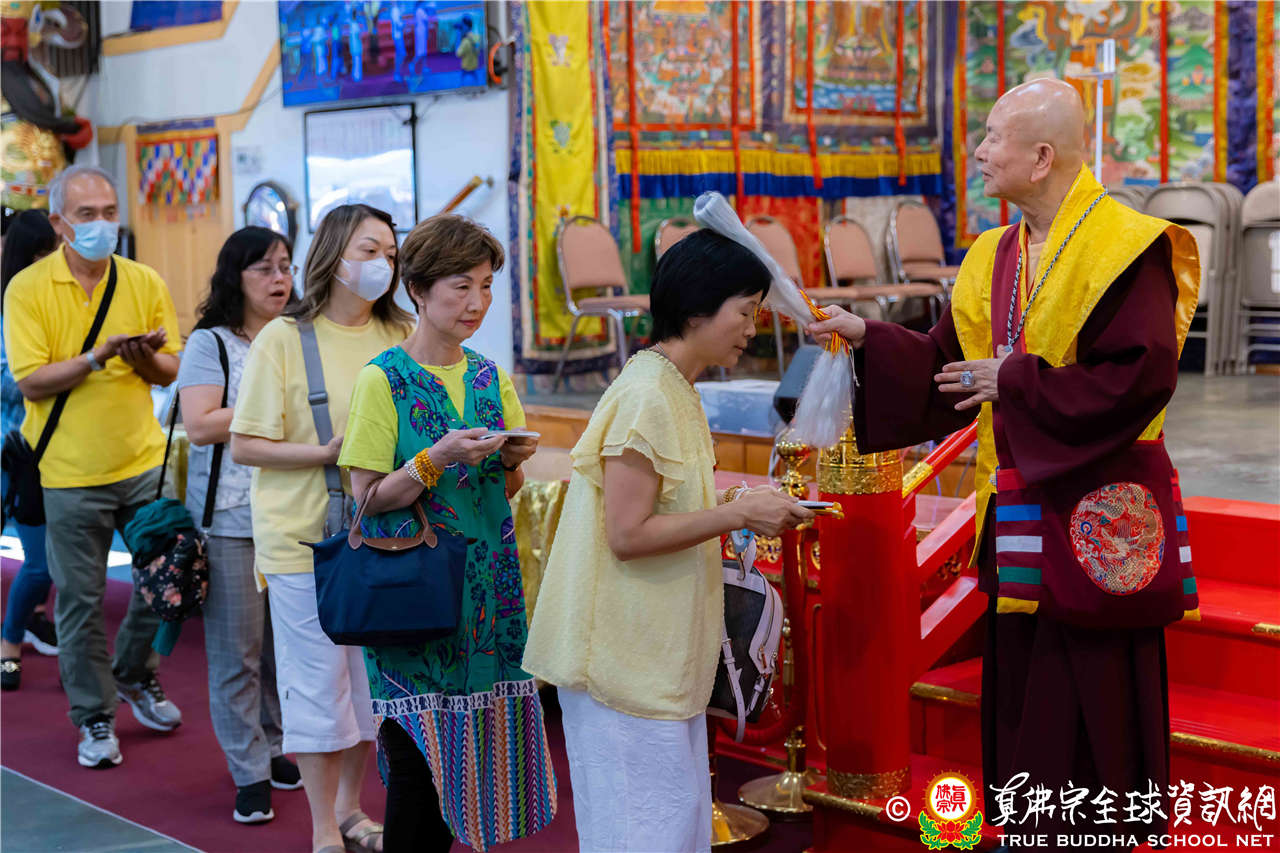 法王演繹從入世財神法到出世間清淨法,時而以幽默風趣地度眾,時而醍醐灌頂地警醒,觸動弟子心靈,讓弟子們重新思考自己生命狀態。法會結束前,線上弟子們恭祝法王佛體安康,請佛住世。法王加持祝福弟子們並賜予現場弟子「大隨求菩薩」不共大法灌頂,弟子們誠摯地感恩法王開示,法會圓滿結束。