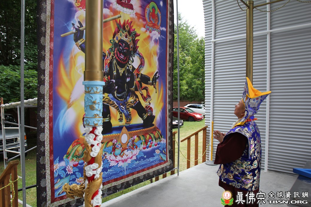 2019年6月23日下午,美國西雅圖彩虹雷藏寺恭請根本上師蓮生活佛盧勝彥主壇大力金剛護摩大法會。是日,當法王走到大力金剛的唐卡前時,居然發現唐卡裡還藏著兩位空行母,右邊是忿怒母、左邊是金剛瑜伽母,「今天大力金剛的護摩法會,還有兩位空行母跟隨下降,非常殊勝。」