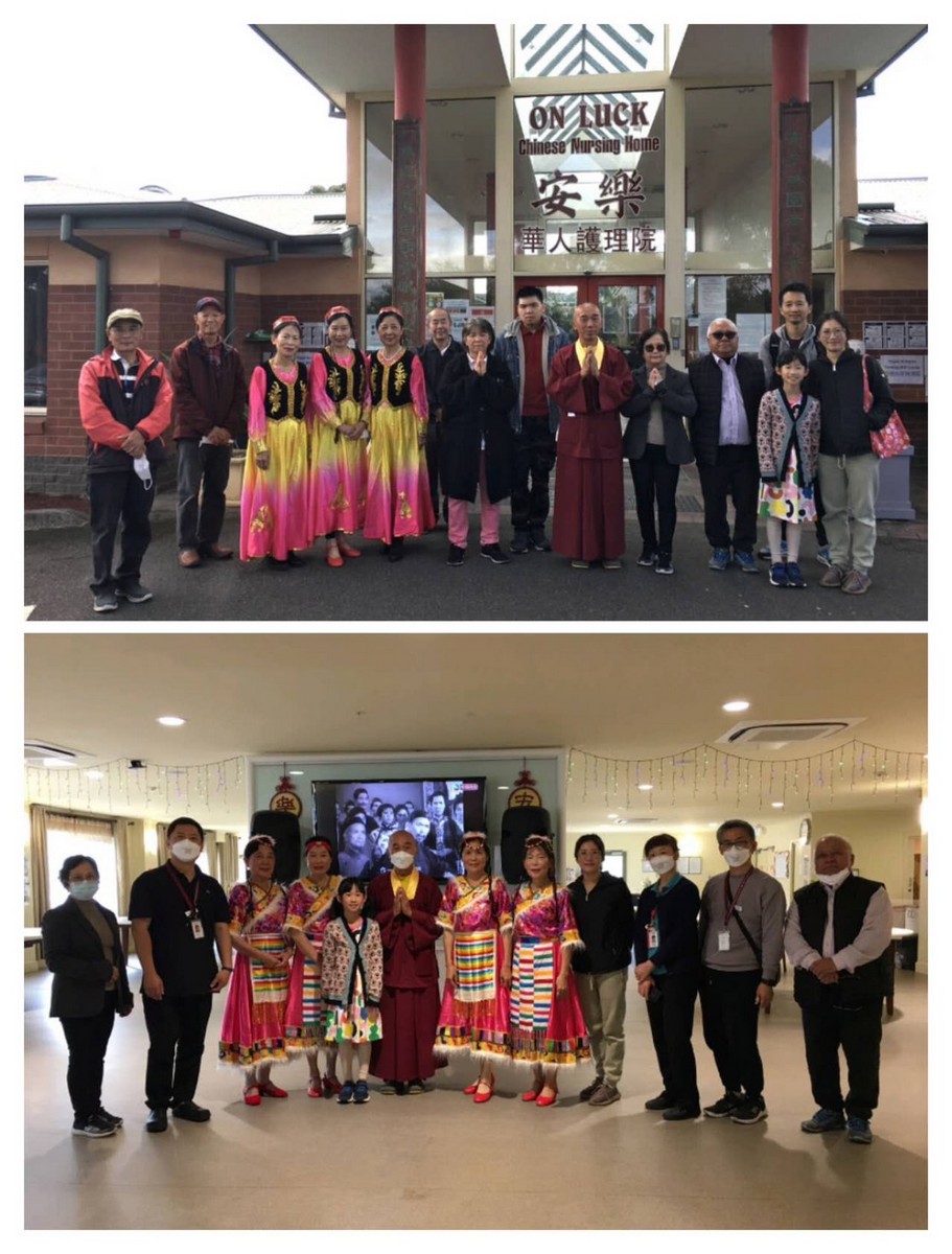 在澳洲大節日期間,拜訪老人院,活動有民族舞蹈表演、小提琴演奏等文藝節目,為老人院的長輩們帶來歡樂。同時鼓勵年輕同門或小孩能親手送禮物給長輩們,培養自小就學習發揮「敬老愛老」之心,這樣的場面特別令人感動。
