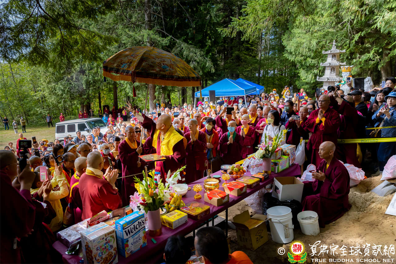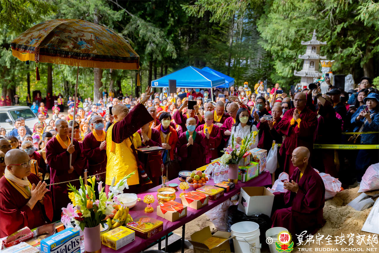西雅圖2023年9月17日午時,聖尊蓮生法王盧師尊於彩虹雷藏寺主持生基儀式。