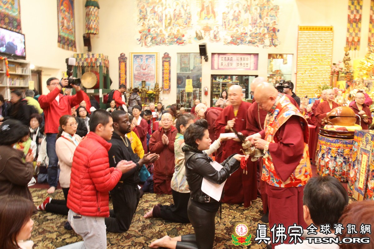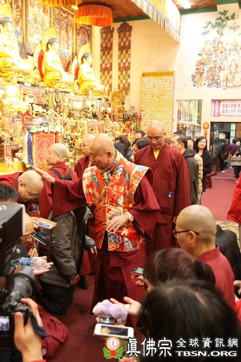 開示結束後,聖尊為求皈依的信眾們賜授灌頂,並加持大悲咒水、開光佛像,臨行前並慈悲為大眾摩頂加持。聖尊每一次精彩的法語開示,都能讓每一個人充滿法喜,或是茅塞頓開,或是心領神會,大家要努力把握真佛住世難得的珍貴法緣。