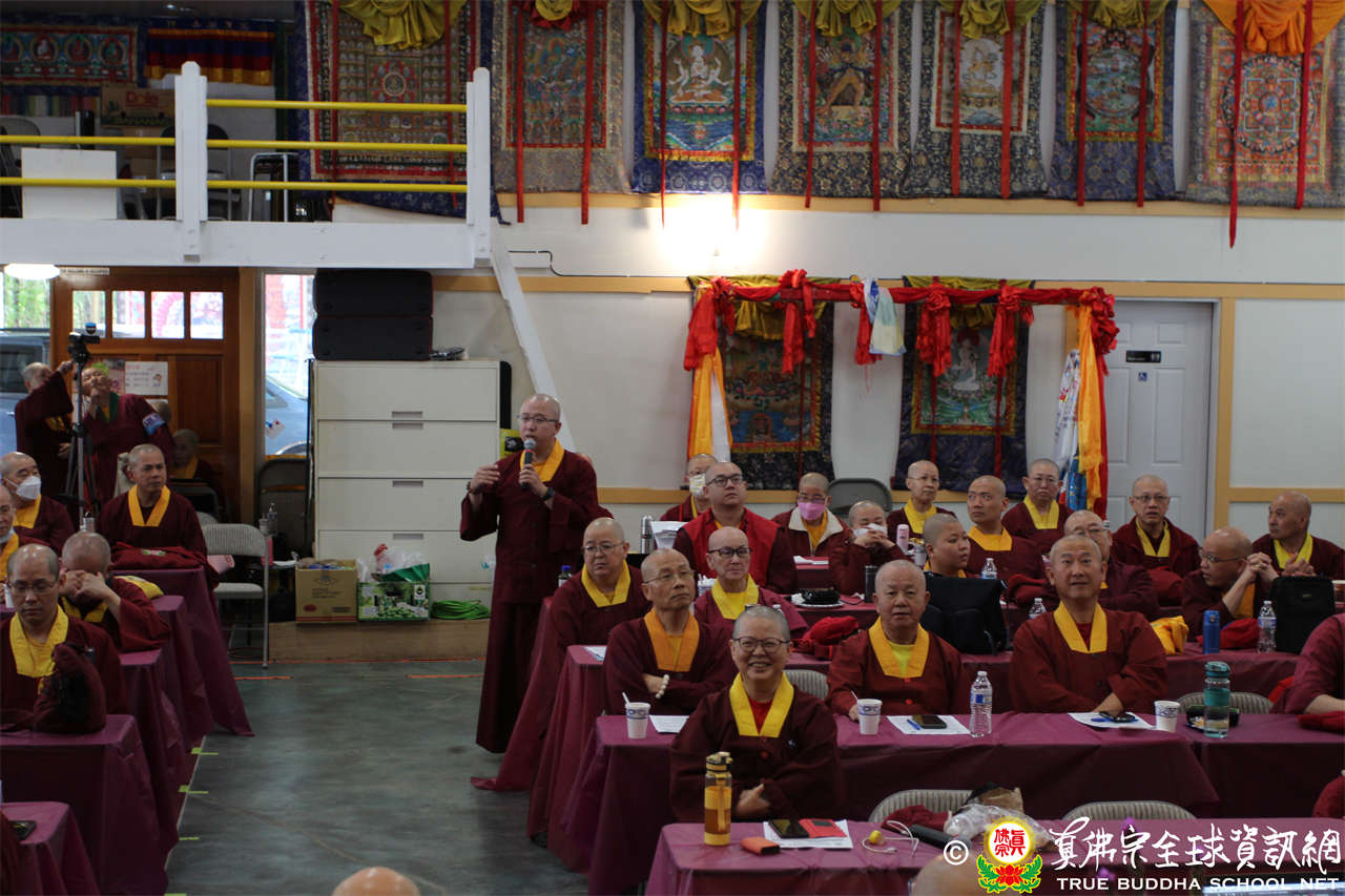 會長最後代表全體上師,感謝西雅圖雷藏寺及彩虹雷藏寺的工作團隊協助本次會議,也感謝來自英國、澳洲等國家的大廚義工們,每天一大早便來到彩虹雷藏寺,為上師們準備色香味俱全的美味佳餚,大廚們亦表示希望師佛加持,明年有資糧繼續來西城為大家服務。至此二天的上師大會圓滿結束,緊接著第三天便是期待已久的上師進修課程。