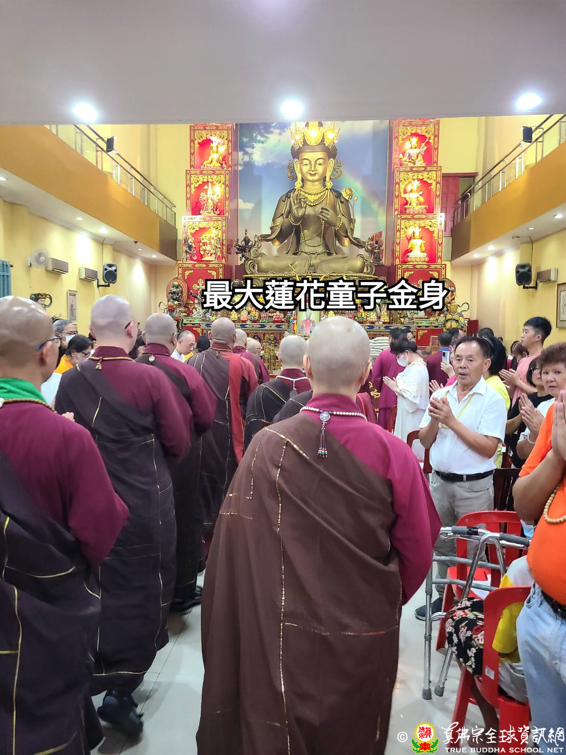 2013年10月31日,印尼全國生活密營,首日正式在「棉蘭雷藏寺」展開一場多達近500人的大白蓮花童子護摩!現場坐無虛席,有13位長老、宗委會處長、上師團,還有16位法師教授師與18位講師助教。是日法會主壇為蓮滿長老!不少上師僧眾們,首次步入「棉蘭雷藏寺」大殿,讚嘆莊嚴最大尊的蓮花童子金身,真是佛光普照!
