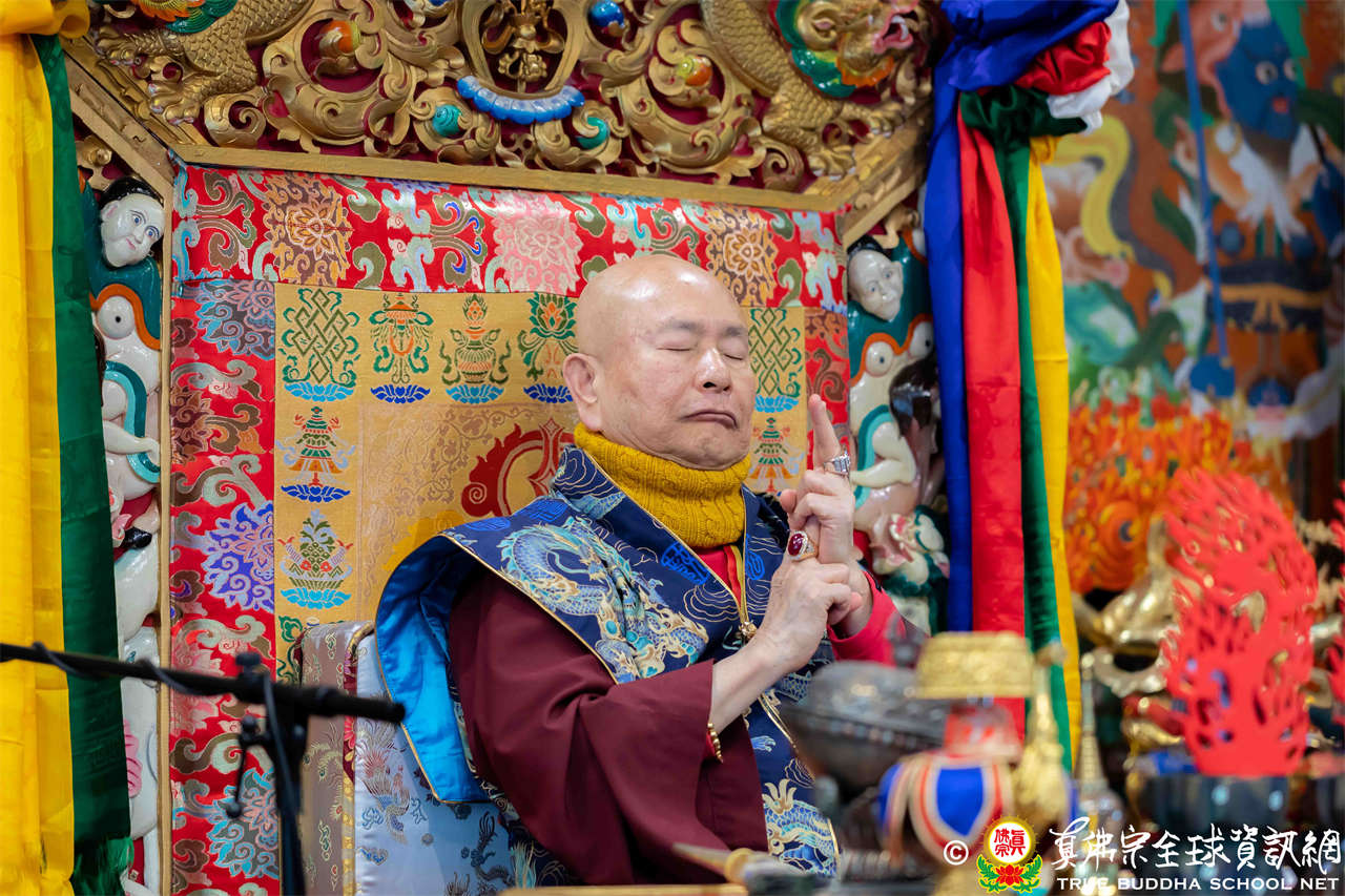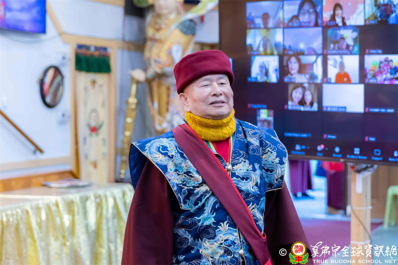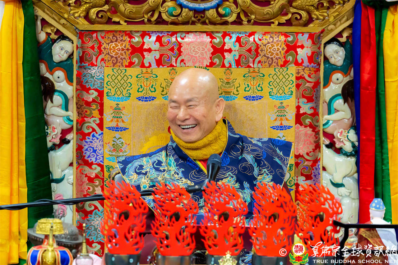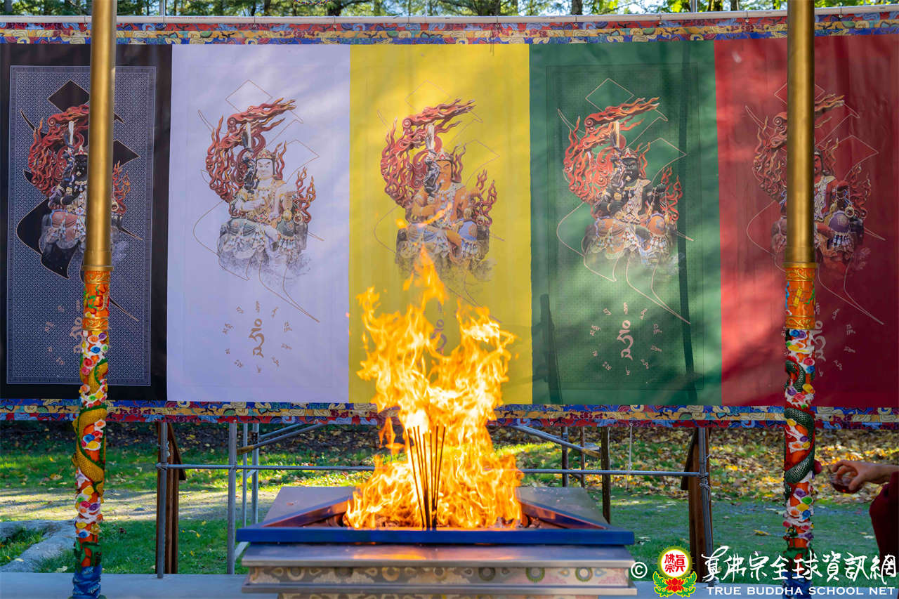 法王開示至此,護摩法會圓滿結束。接著,法王與線上的弟子打招呼,並爲現場出席者賜授五色不動明王法灌頂。