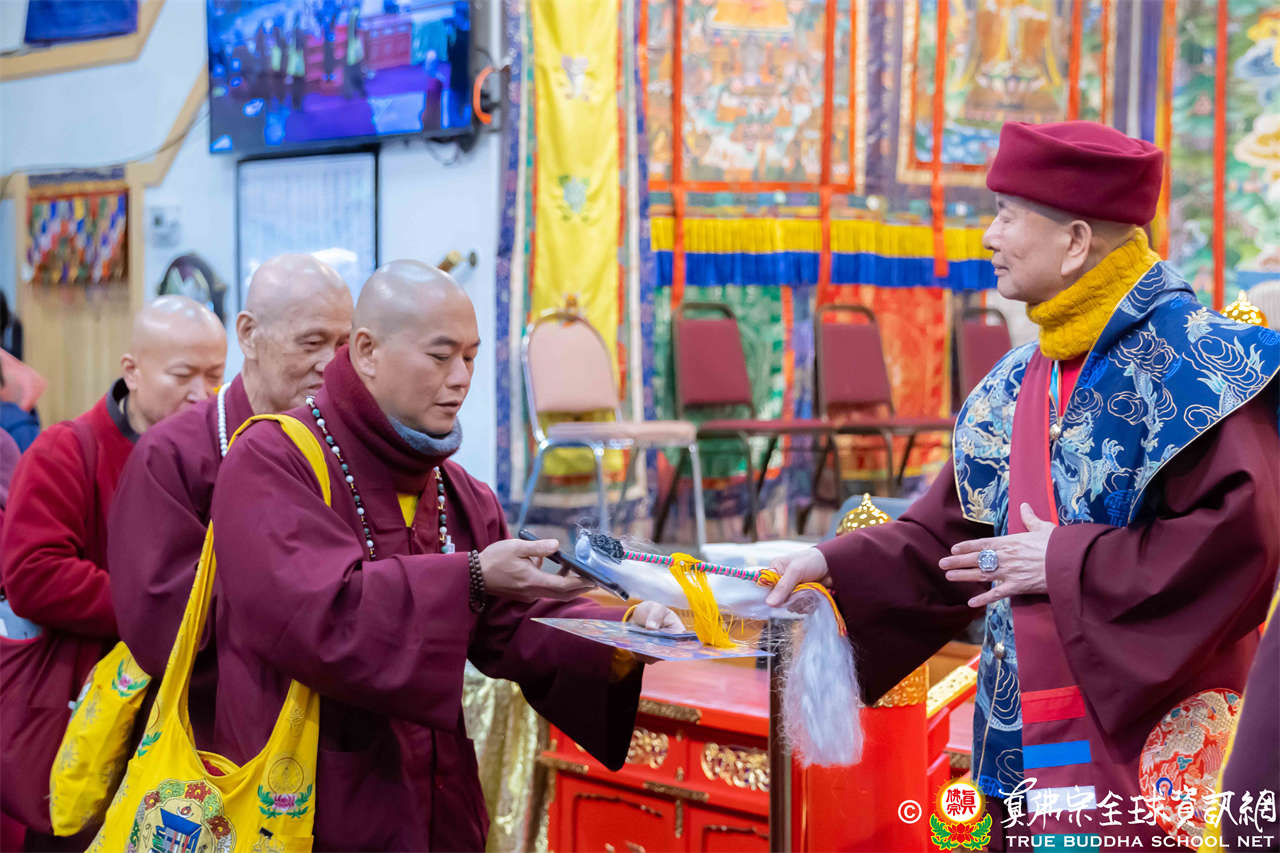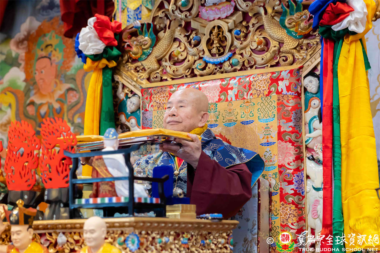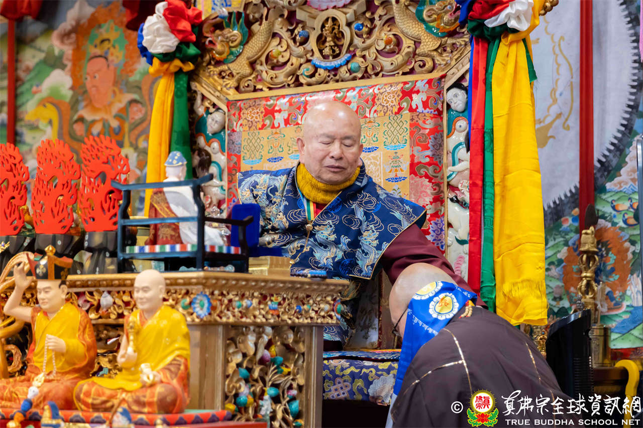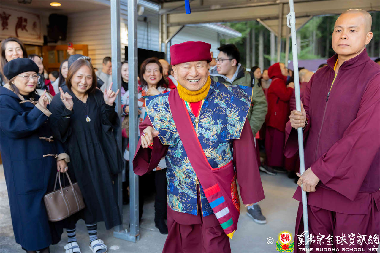 法王開示至此,護摩法會圓滿結束。接著,法王與線上的弟子打招呼,並爲現場出席者賜授五色不動明王法灌頂。