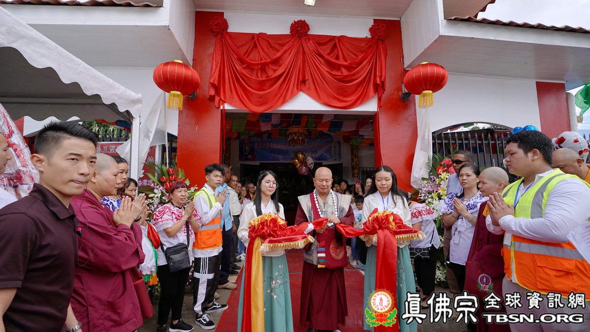 開光儀式當日,艷陽高照,寶華同修會的同門將道場佈置得十分隆重,壇城的中央鋪上長長的紅地毯直到馬路邊,義工同門準備了許多七彩的氣球,和許多的點心、飲料供與會的信眾享用。